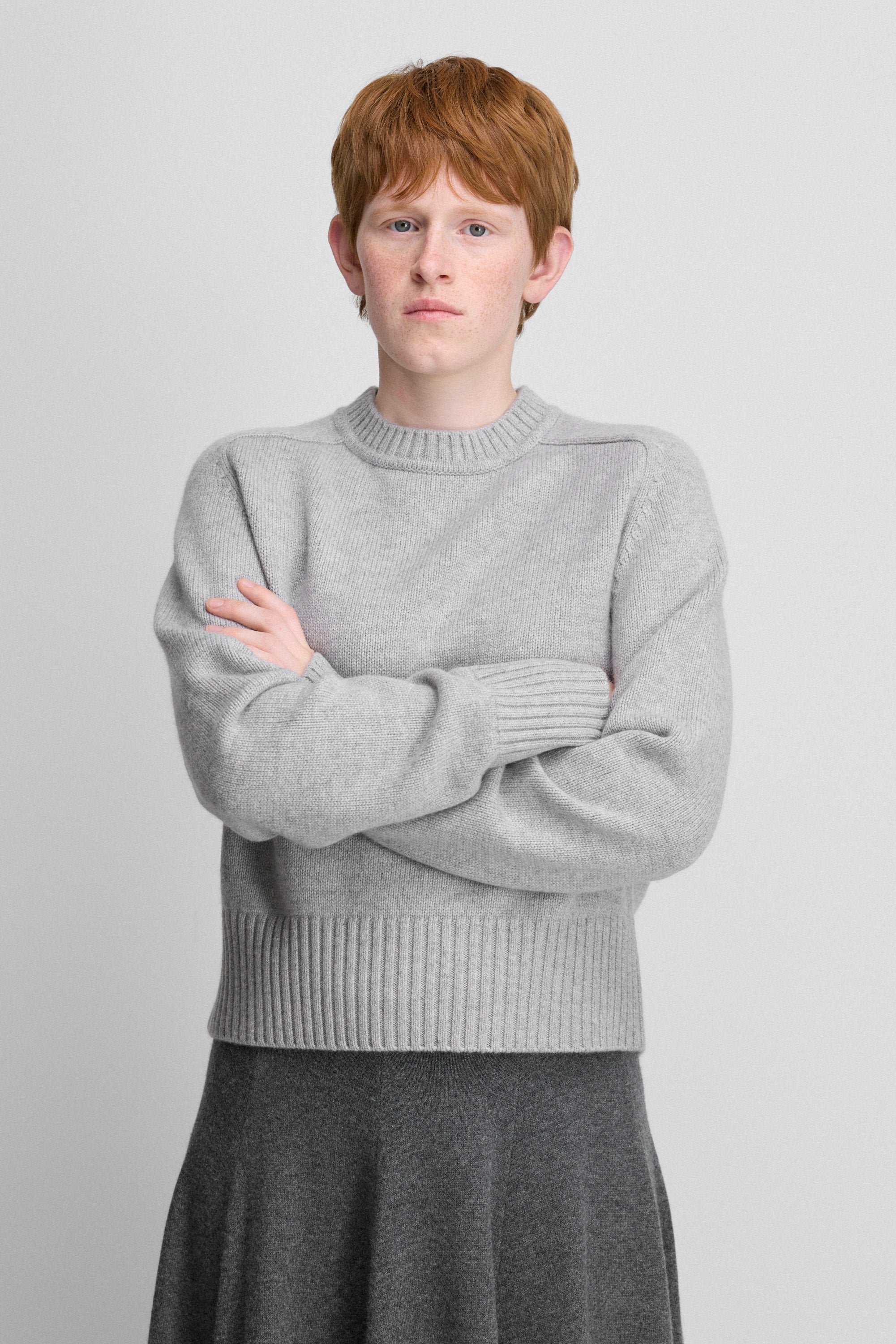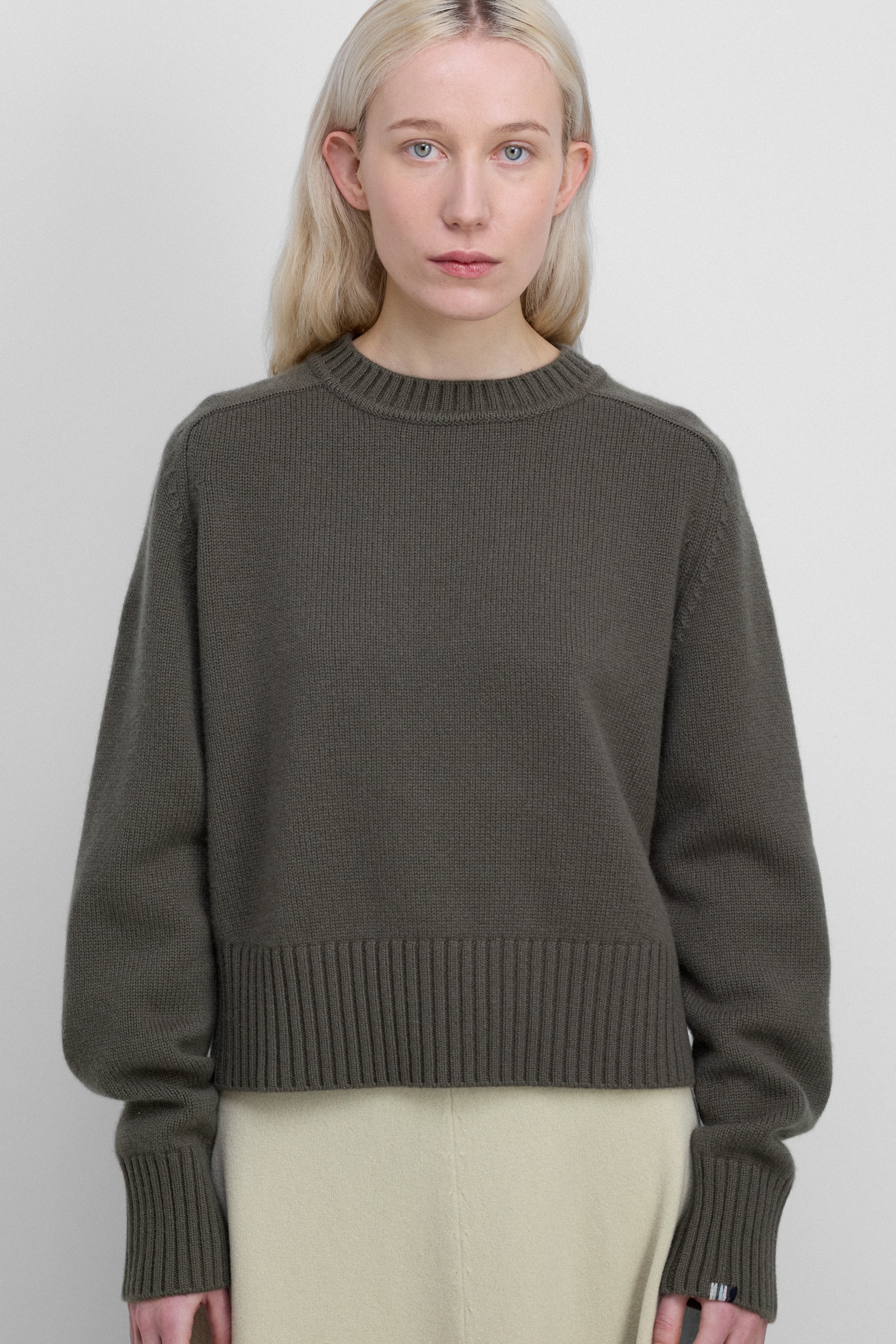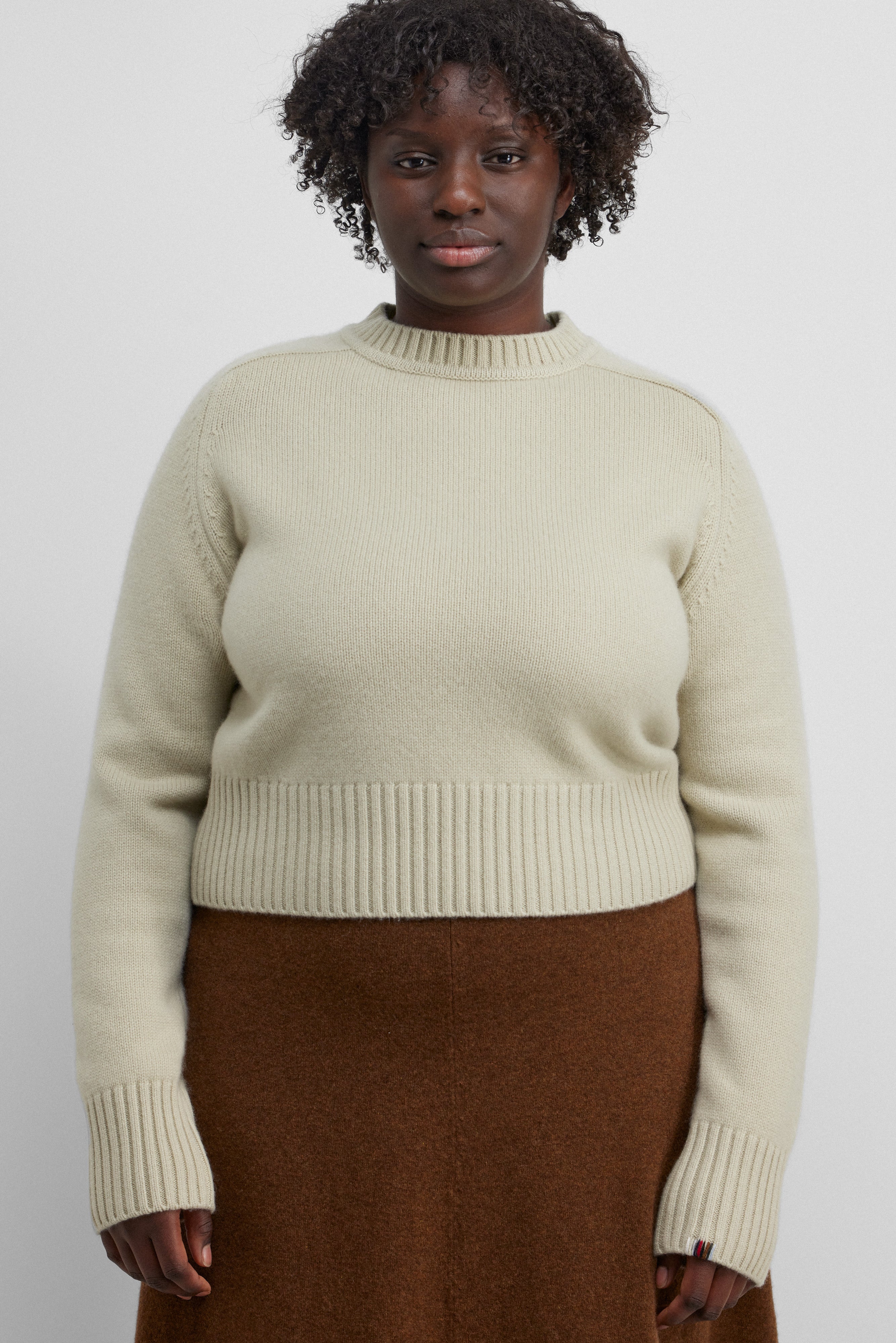 this classic but reinvented cropped crew-neck cashmere sweater in heavy knit with a saddle sleeve is perfect for any occasion. like the cherie, the please belongs to the highland family collection, inspired by traditional scottish knitwear. featuring saddle sleeves, ribbed details, and a rich, warm 100% cashmere knit. the limited-edition colours mermaid and hunter are exclusively available at extreme-cashmere.com and in our stores.