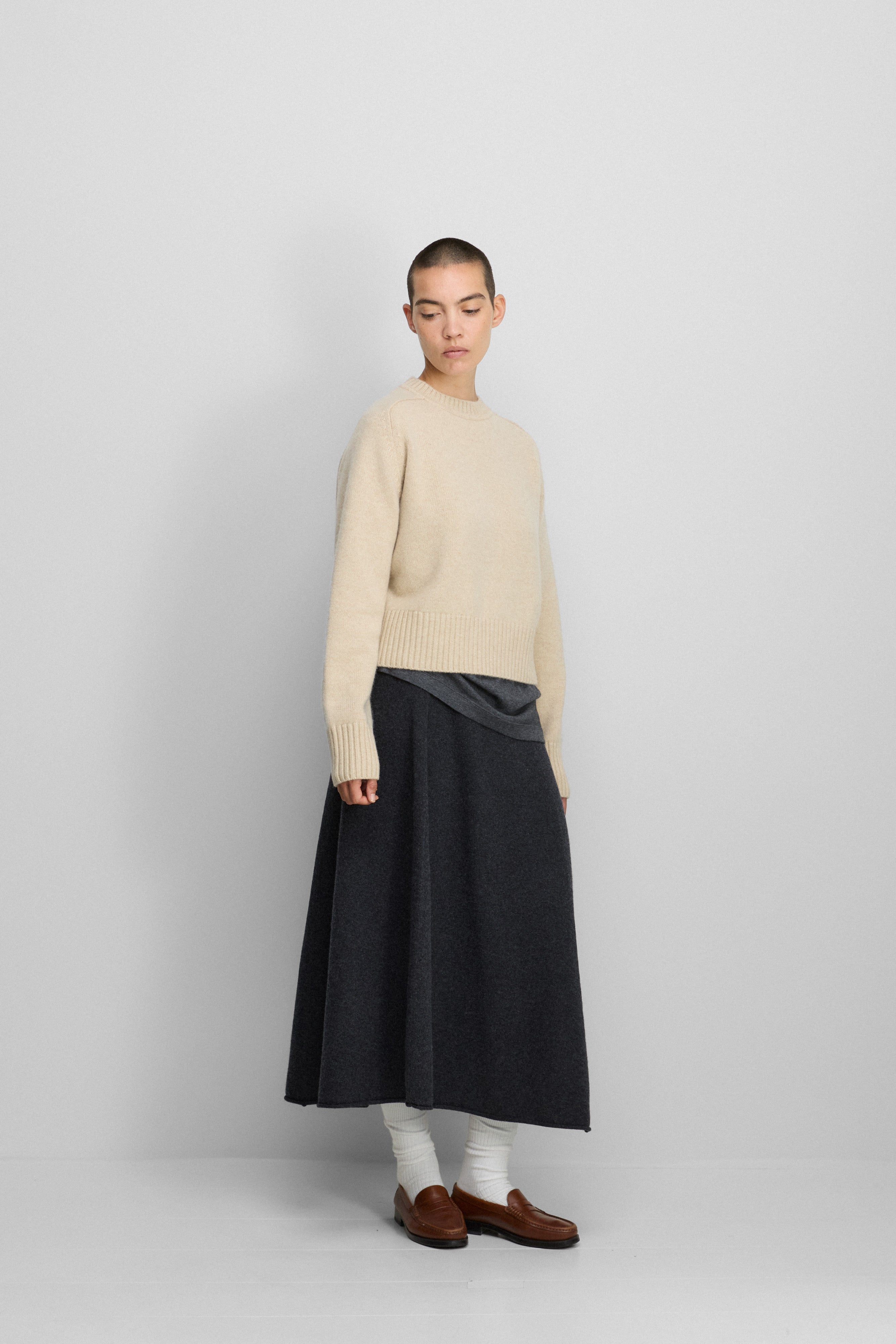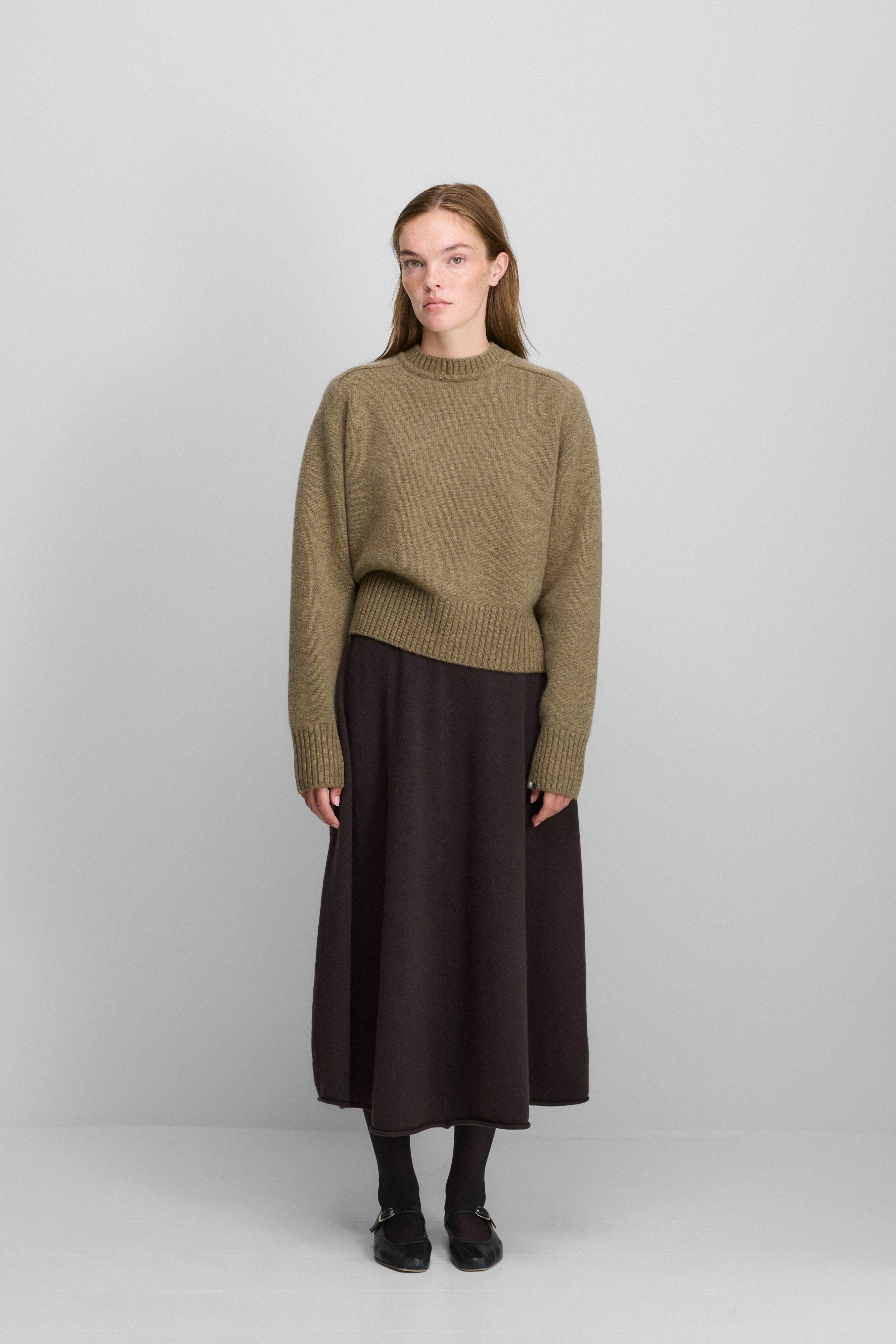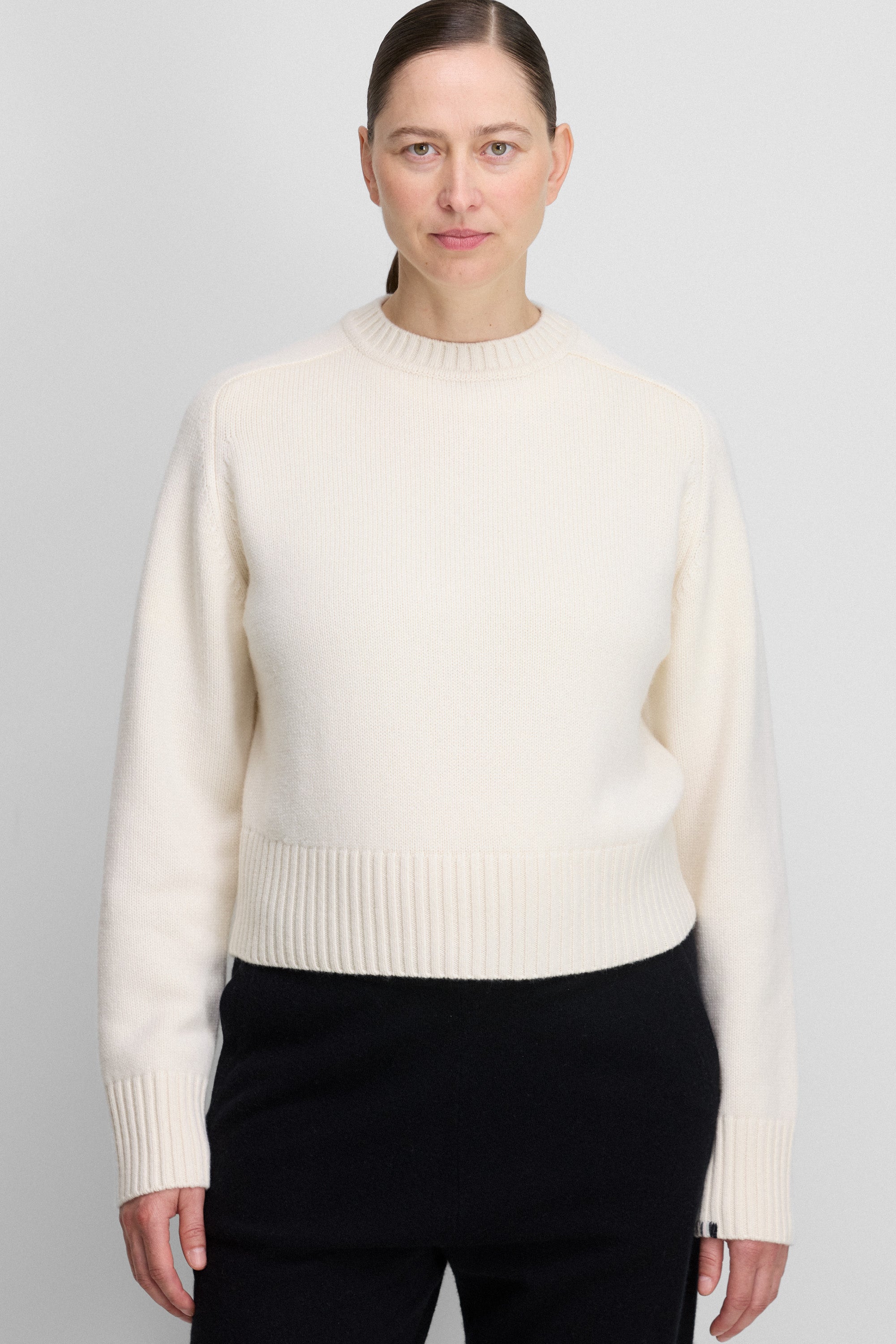 this classic but reinvented cropped crew-neck cashmere sweater in heavy knit with a saddle sleeve is perfect for any occasion. like the cherie, the please belongs to the highland family collection, inspired by traditional scottish knitwear. featuring saddle sleeves, ribbed details, and a rich, warm 100% cashmere knit. the limited-edition colours mermaid and hunter are exclusively available at extreme-cashmere.com and in our stores.