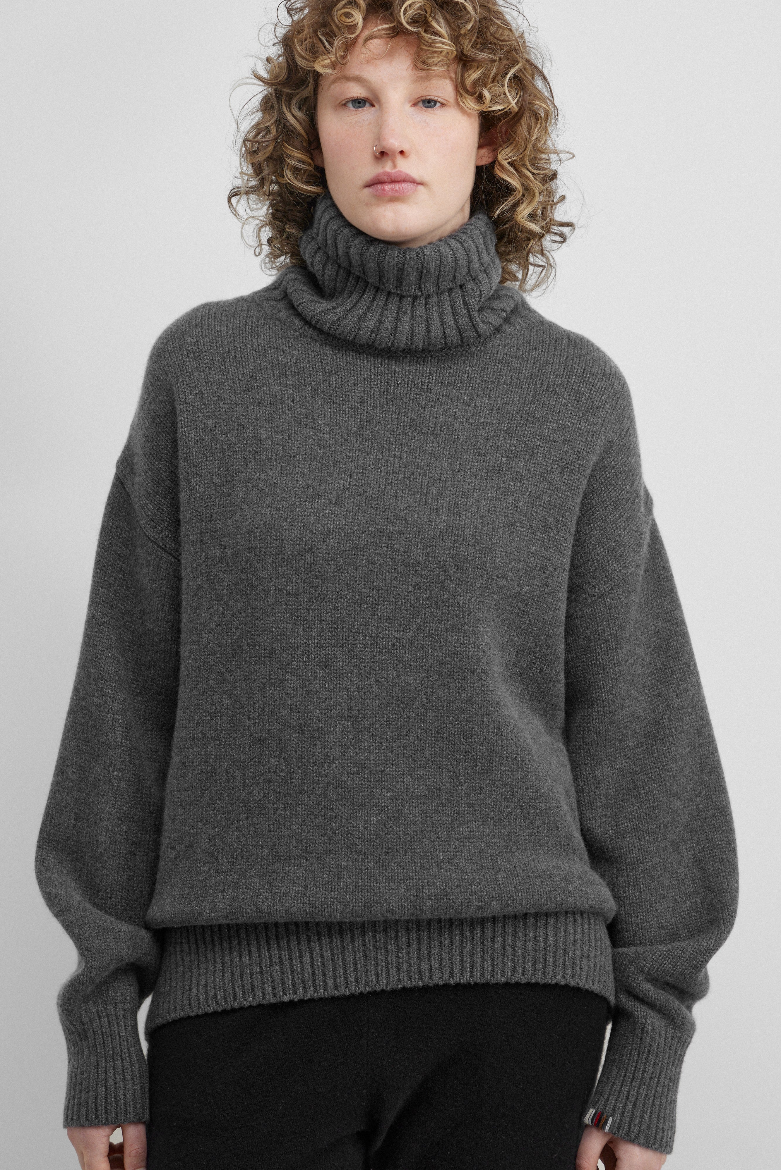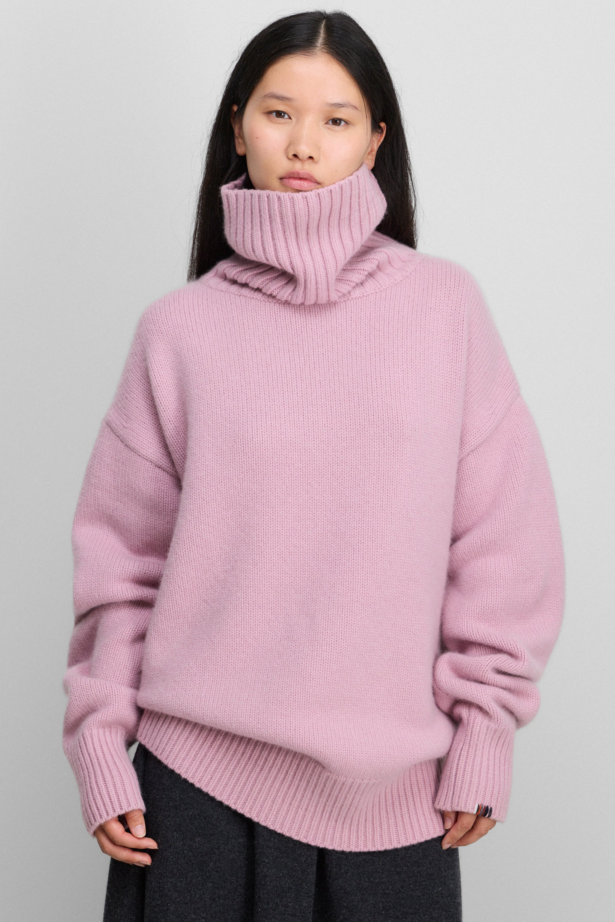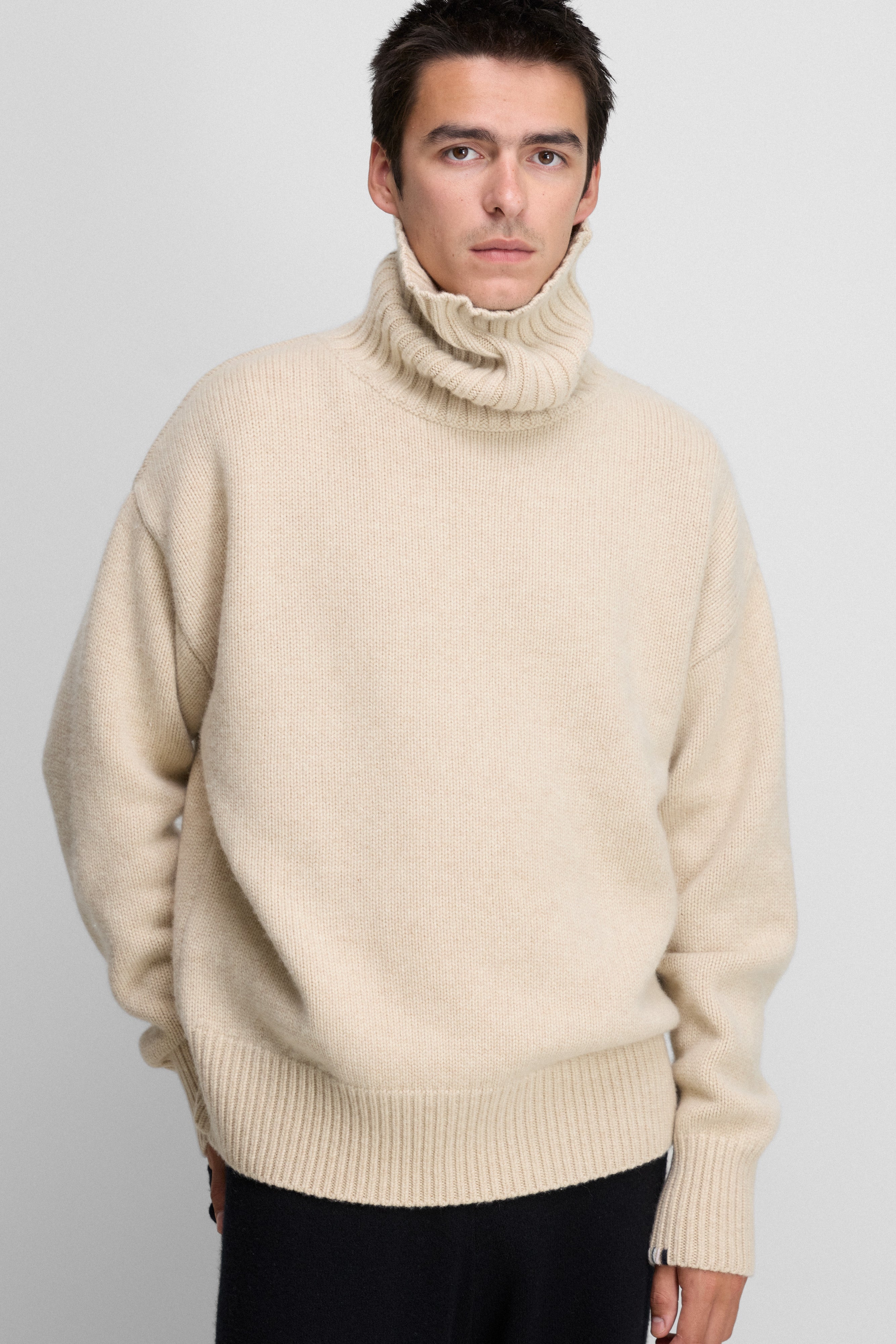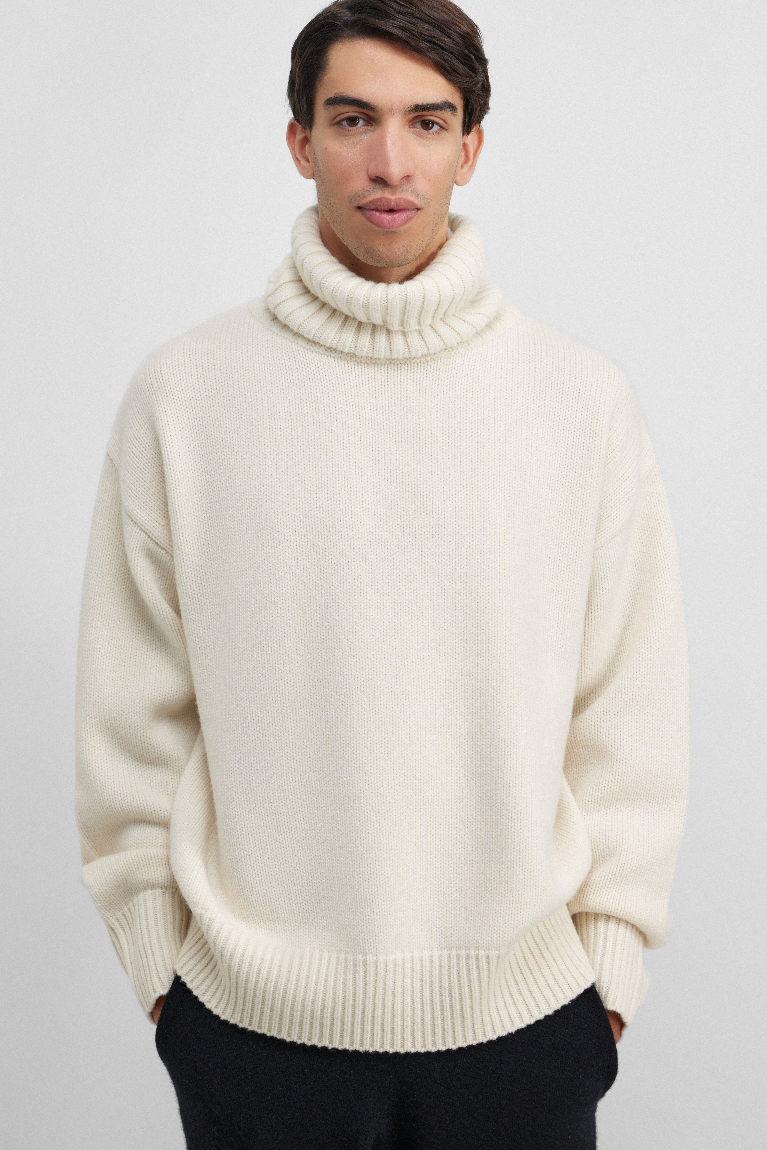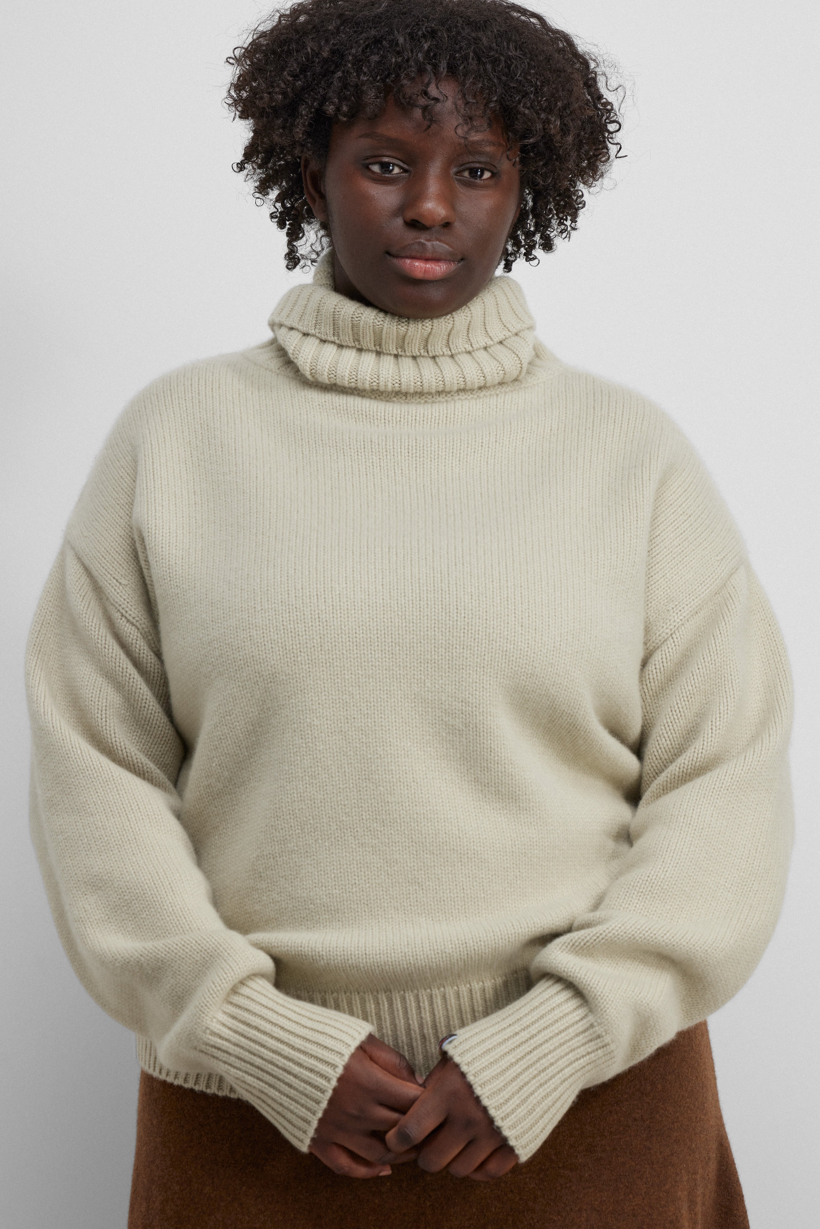 this comfortable drop-shoulder cashmere turtleneck sweater has the magic to make you feel better when you’re having a bad day. the heavy-knit roll-neck jumper oversize xtra is also ideal to wear as an outerlayer.