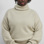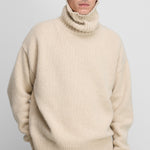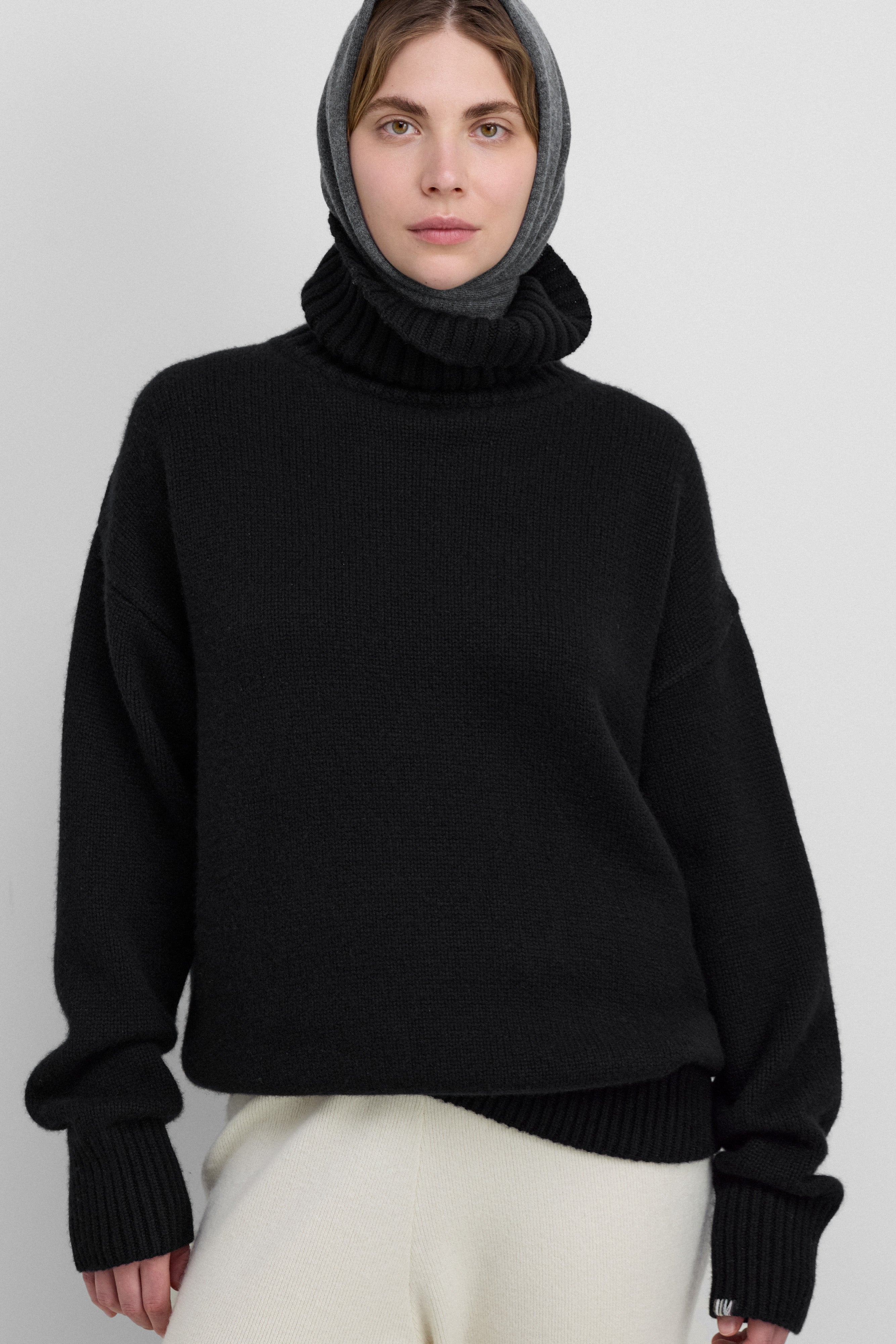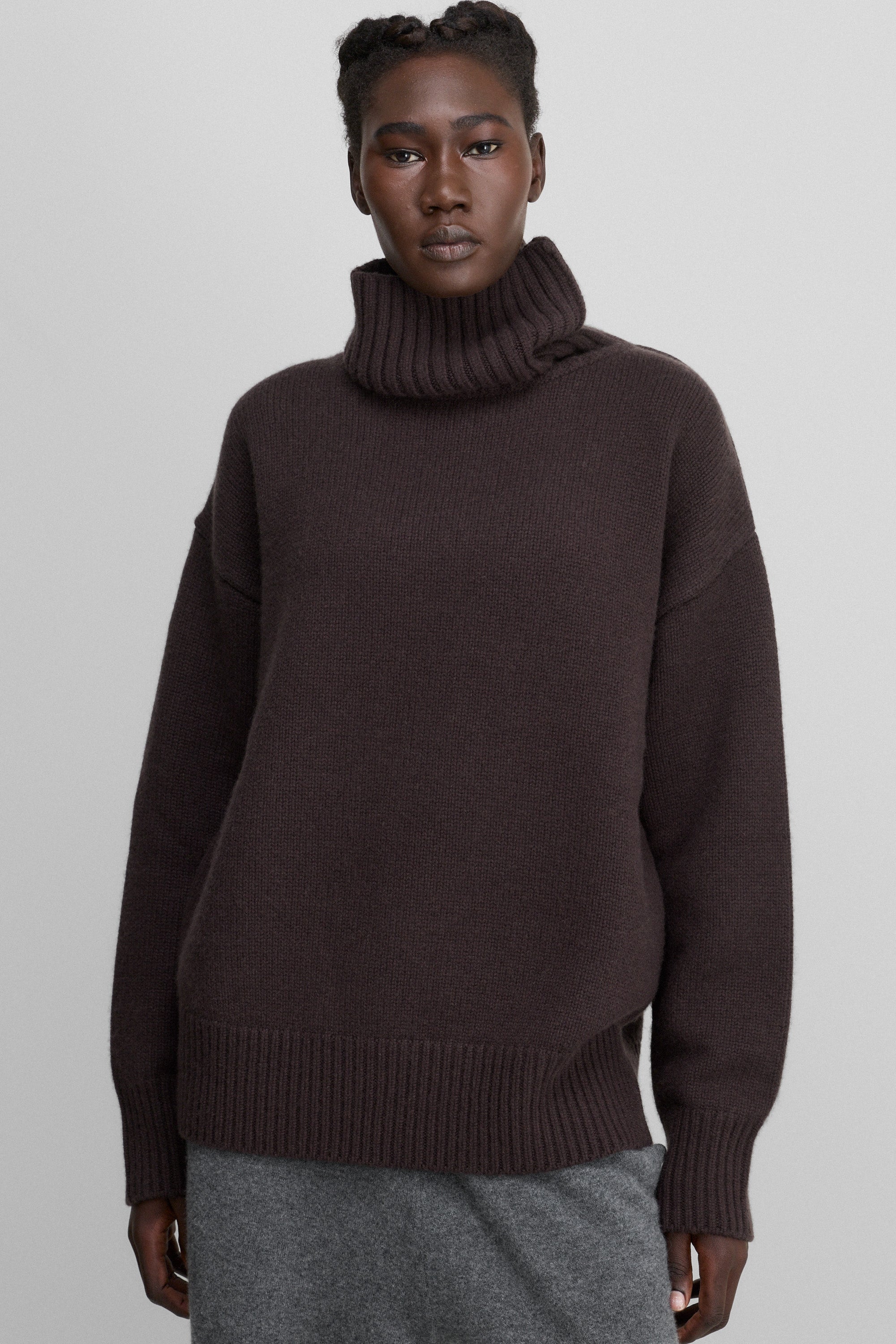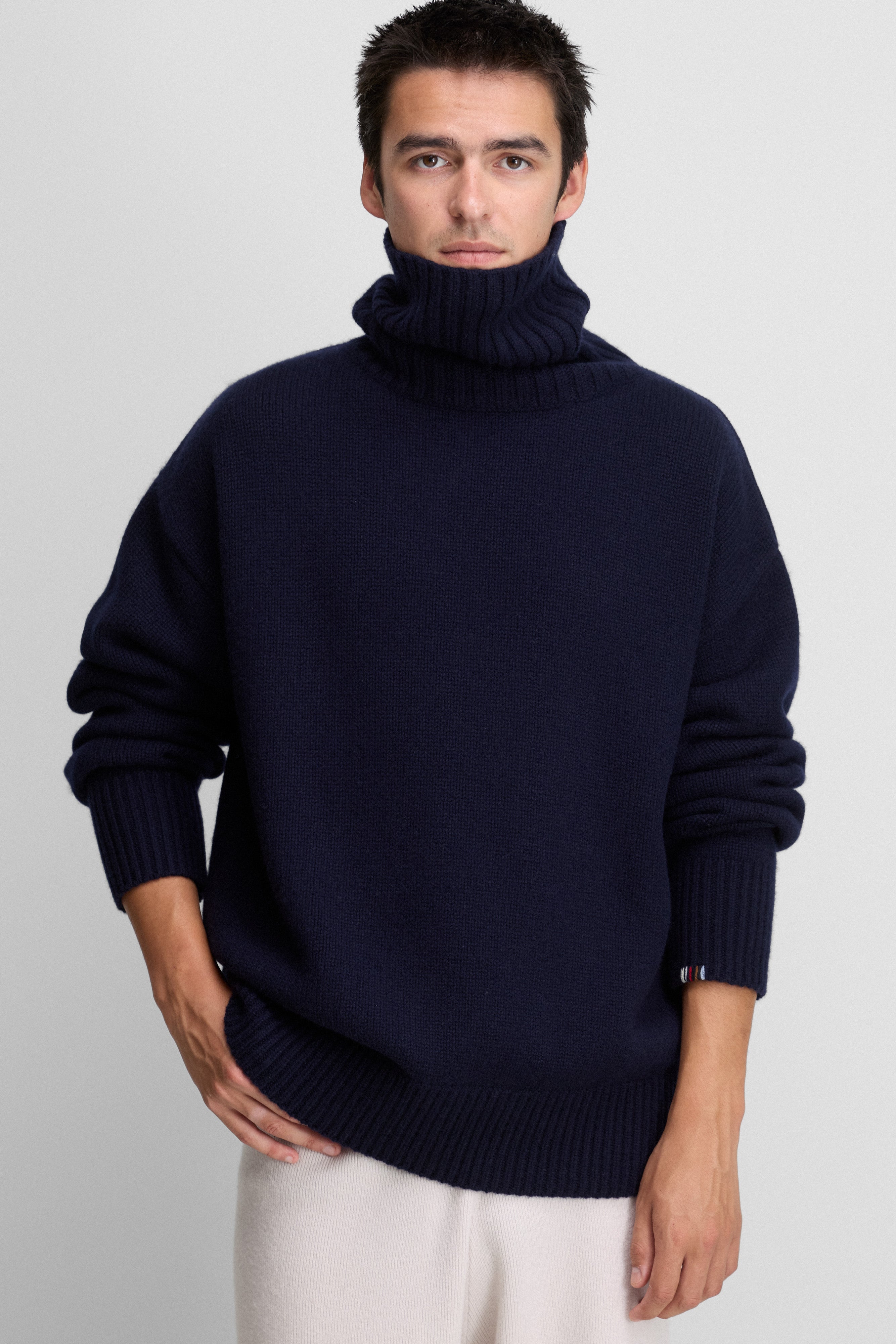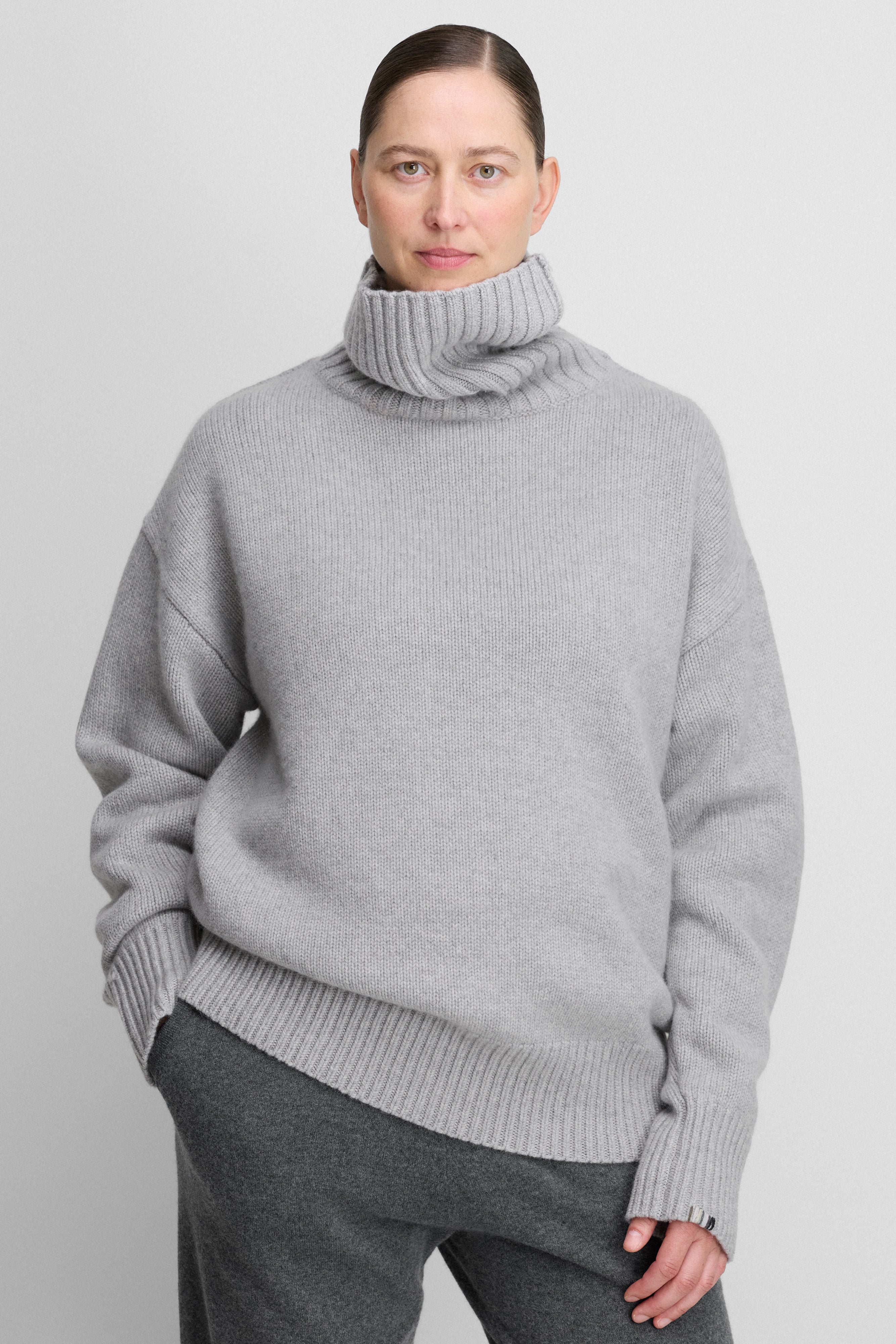 this comfortable drop-shoulder cashmere turtleneck sweater has the magic to make you feel better when you’re having a bad day. the heavy-knit roll-neck jumper oversize xtra is also ideal to wear as an outerlayer.