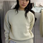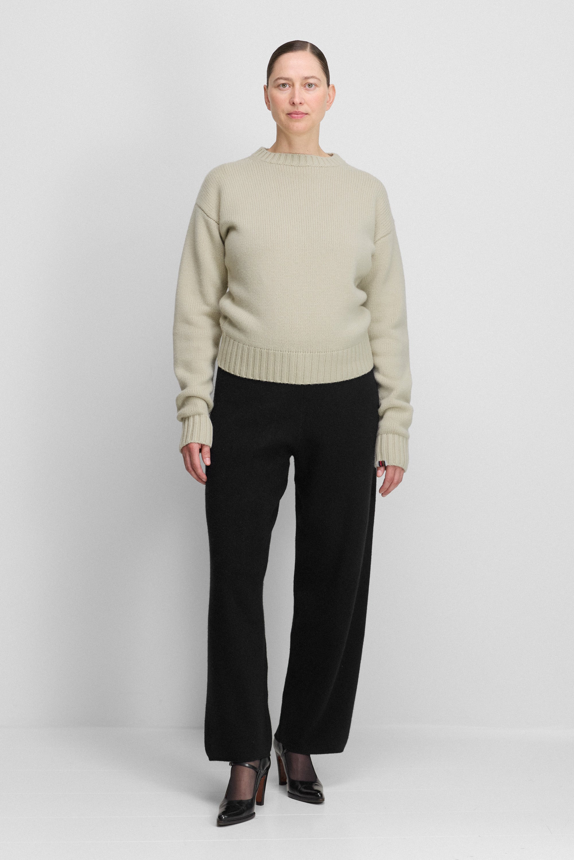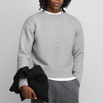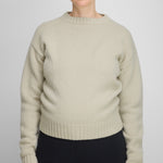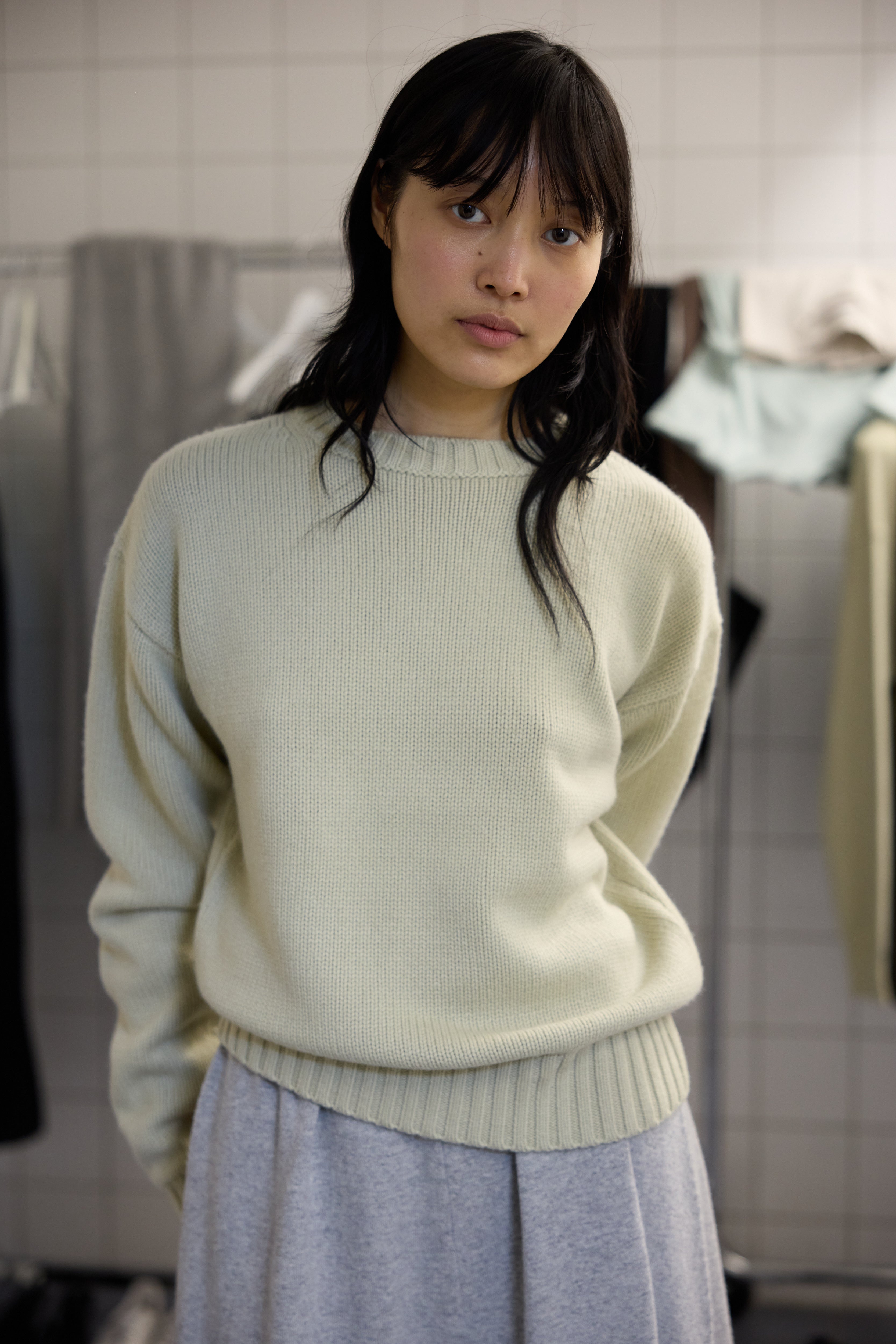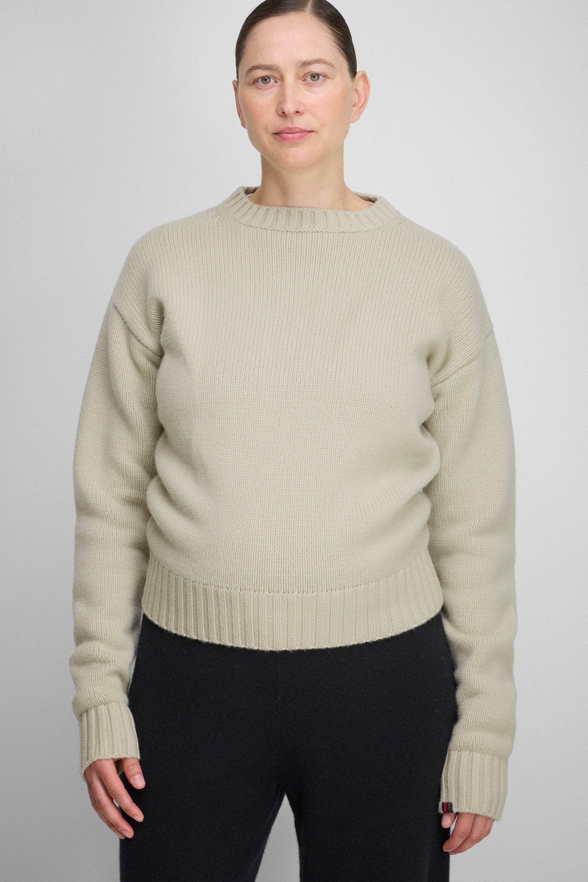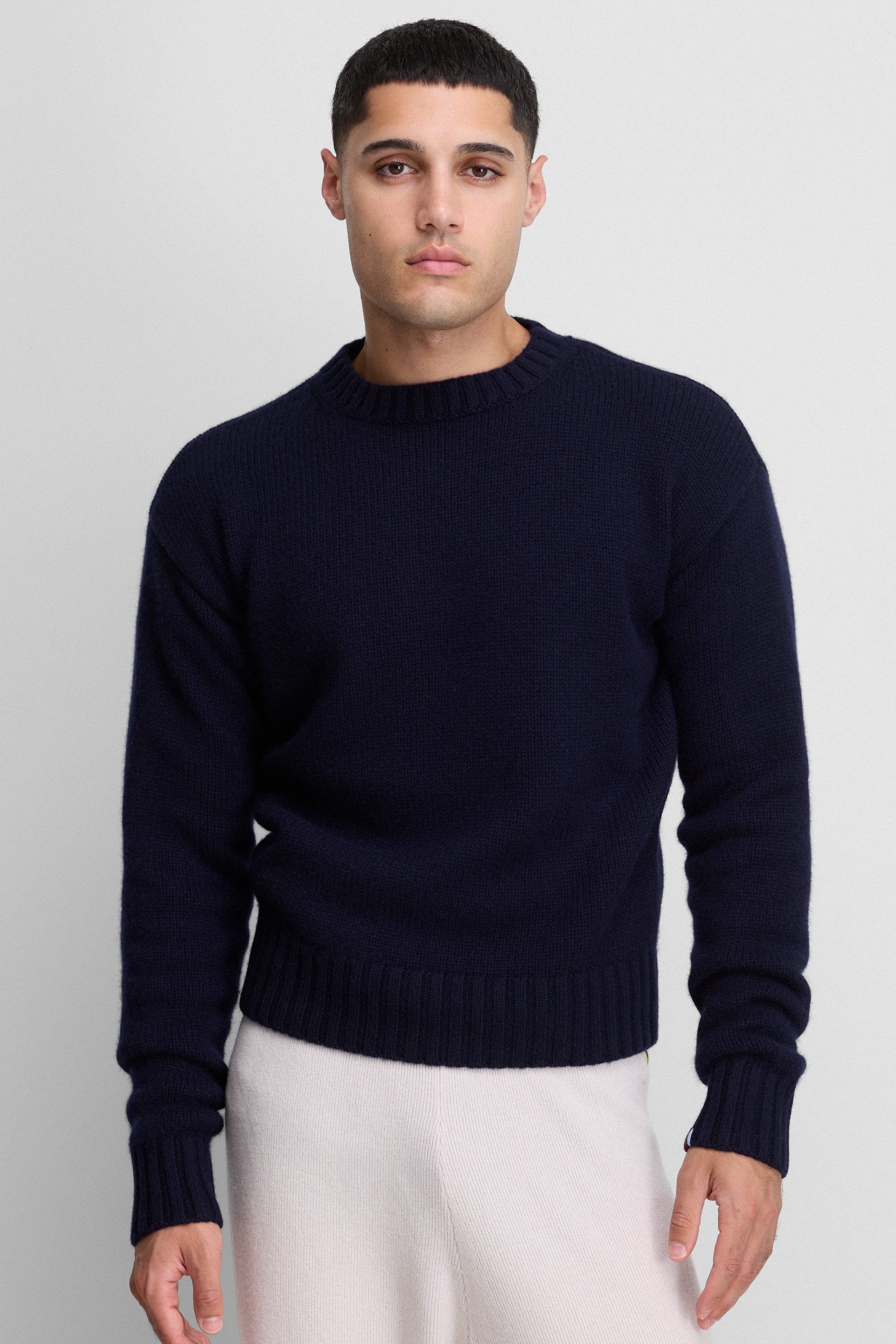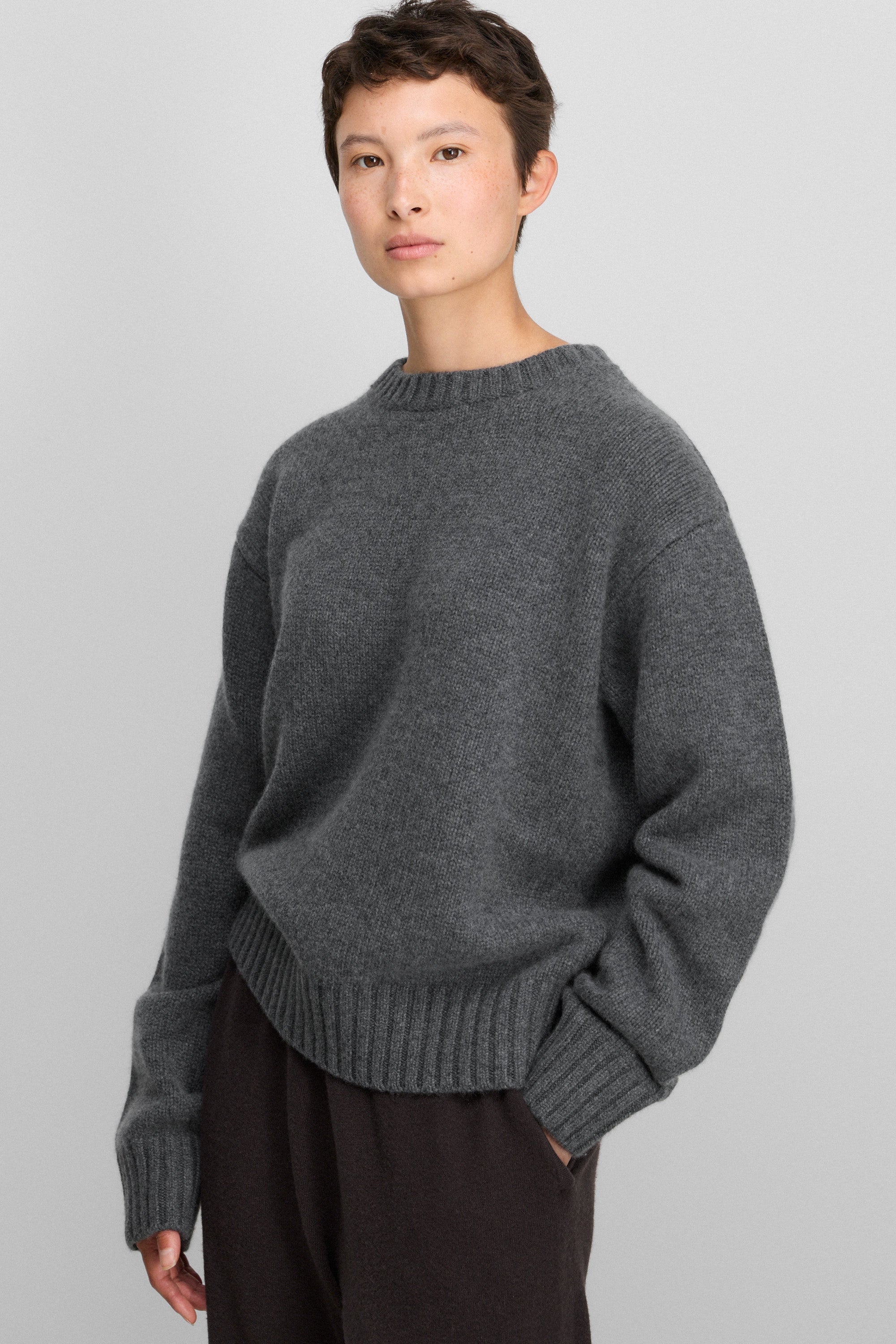 crafted in a luxurious heavy knit, cashmere crew-neck sweater oldie keeps you warm and cozy in the cold. the cashmere sweater has a round neckline and rib-knitted hem and cuffs. compared to the bourgeois, the oldie is shorter and fits more snugly. also available with stripes or hand-embroidered sequins.