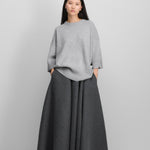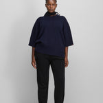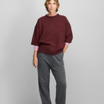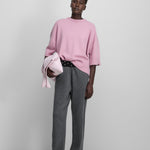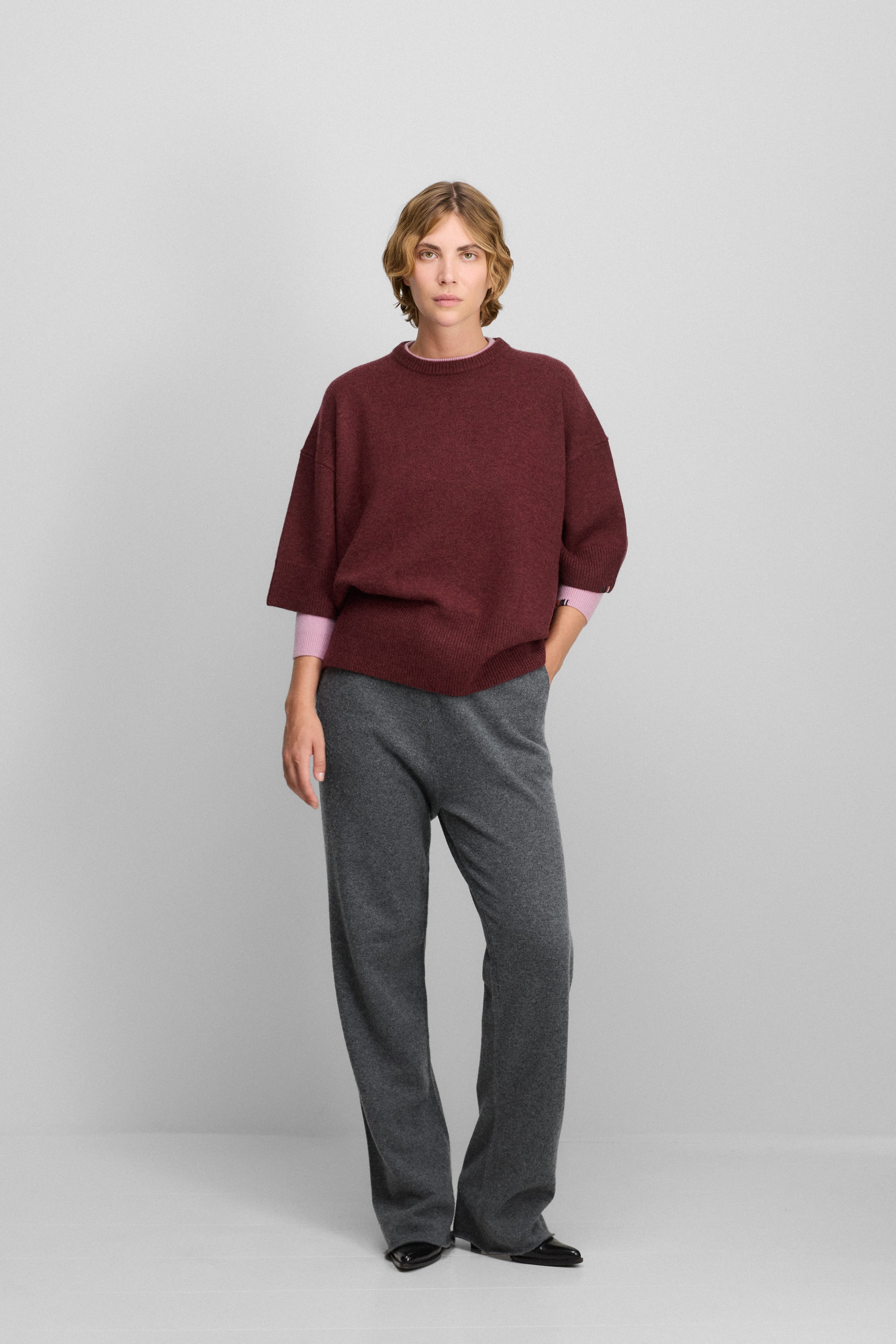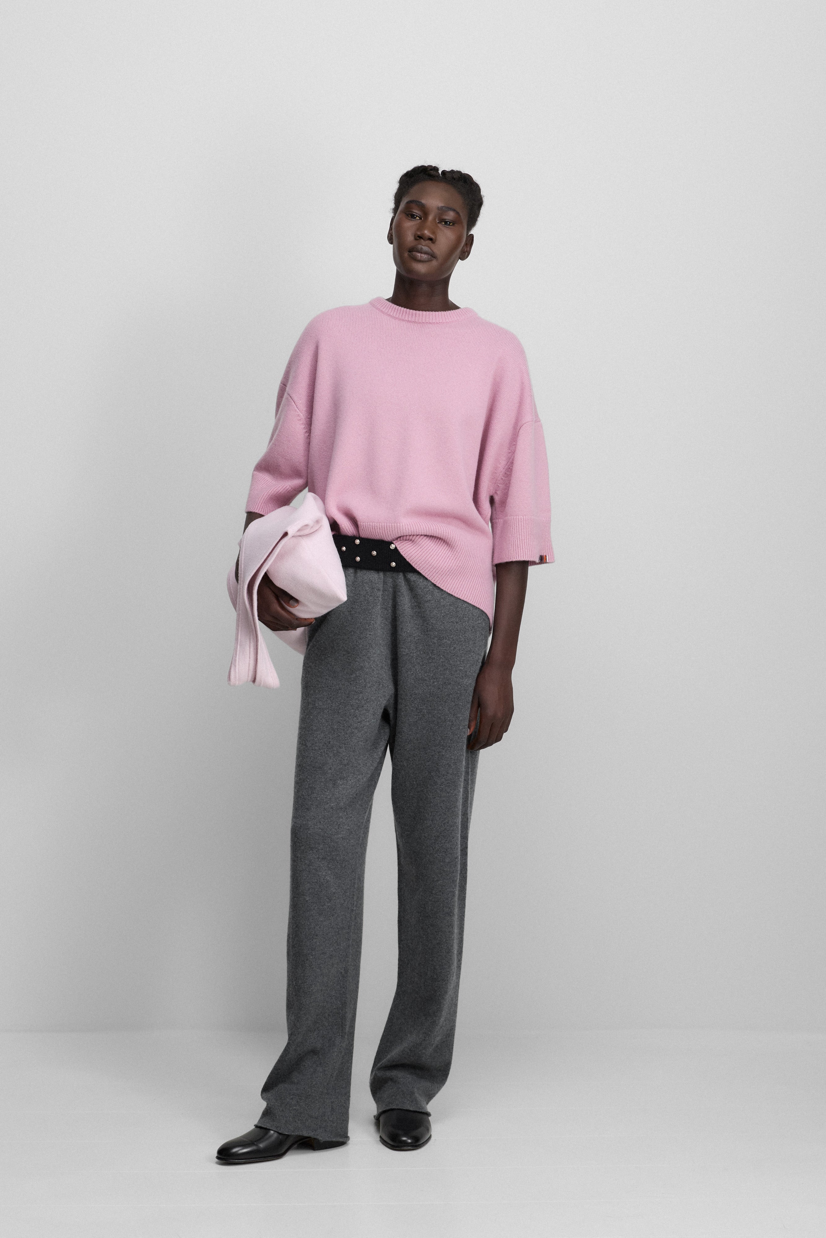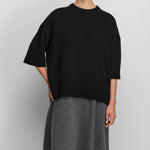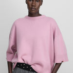 the sassie is a relaxed-fit cashmere sweater for all occasions. with its signature crew-neck and short sleeves that fall to the elbow, this piece offers a laid-back yet refined look that’s easy to dress up. with the warmth of medium-weight cashmere, the sassie’s rib-knit cuff, neckline and hem give modern ease a traditional feel. perfect for moments when you want to stay comfy without sacrificing style.