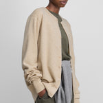 designed with a classic fit, this cashmere crew-neck cardigan is a versatile wardrobe staple for any occasion. the buttons of the comfortable cashmere cardigan are made of highly durable corozo, a completely natural, chemical-free material derived from the seed of a palm tree.