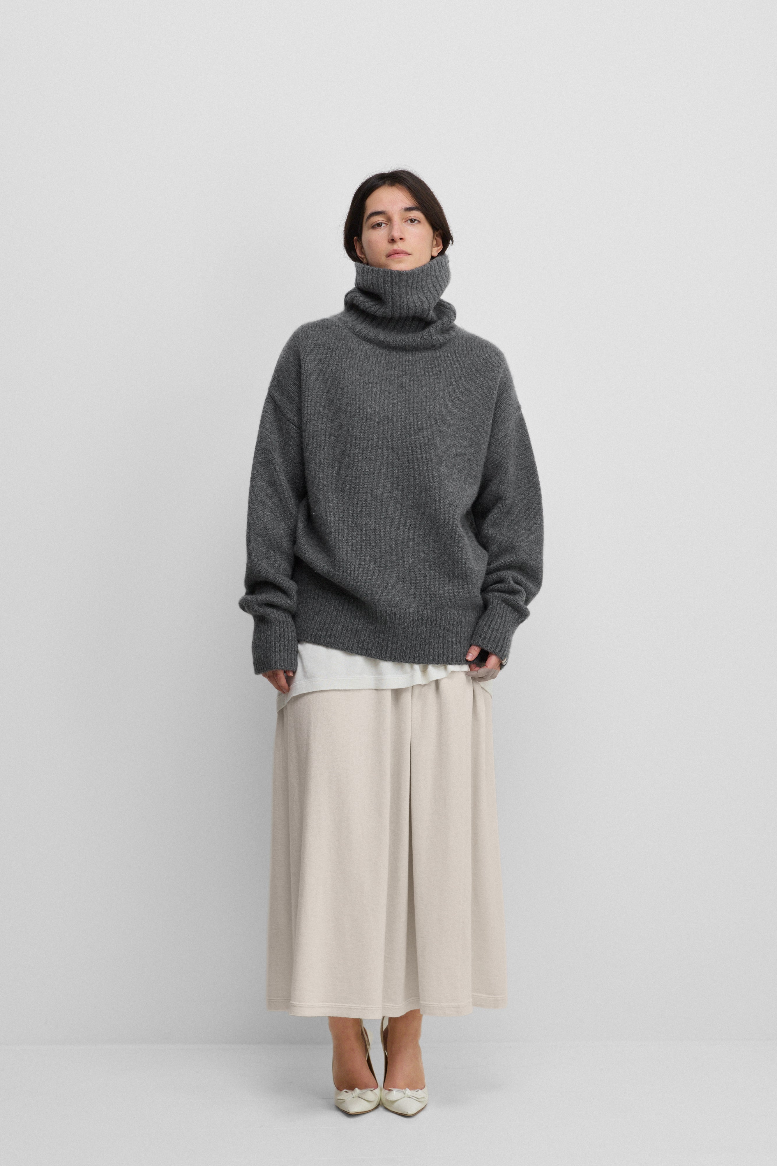 this comfortable drop-shoulder cashmere turtleneck sweater has the magic to make you feel better when you’re having a bad day. the heavy-knit roll-neck jumper oversize xtra is also ideal to wear as an outerlayer.