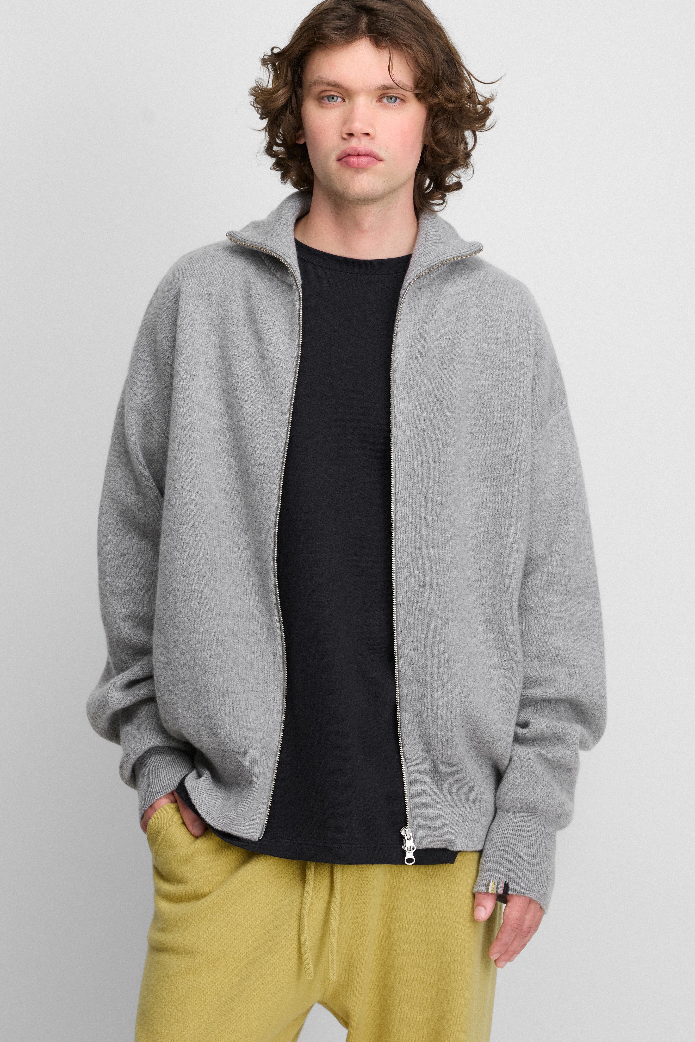 sporty cashmere zip-up cardigan with side pockets and a metal two-way zipper, which opens both ways. the comfortable xtra out has a smooth double-knit, making it a suitable jacket for both indoors and outdoors.