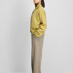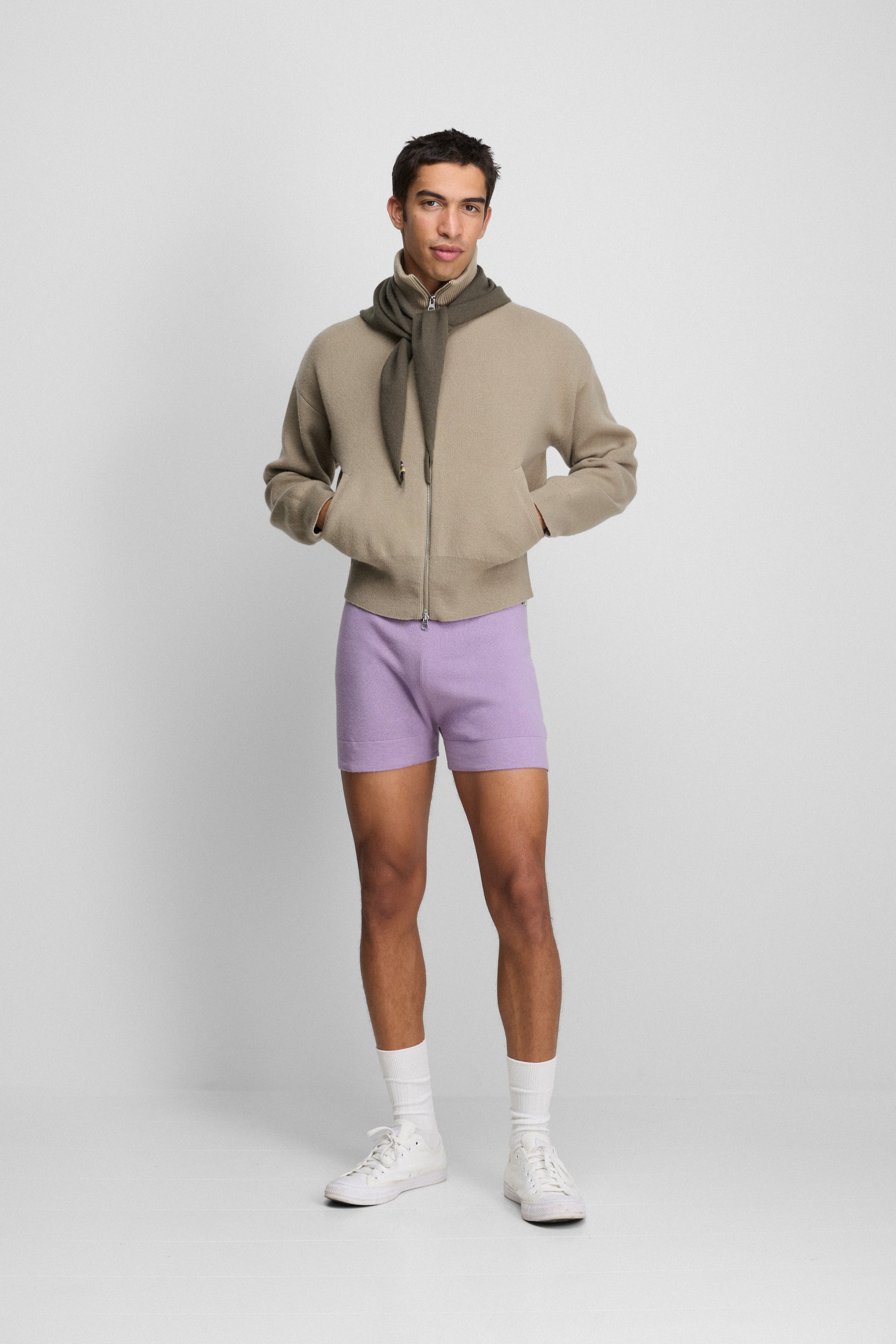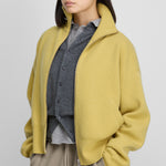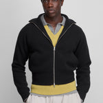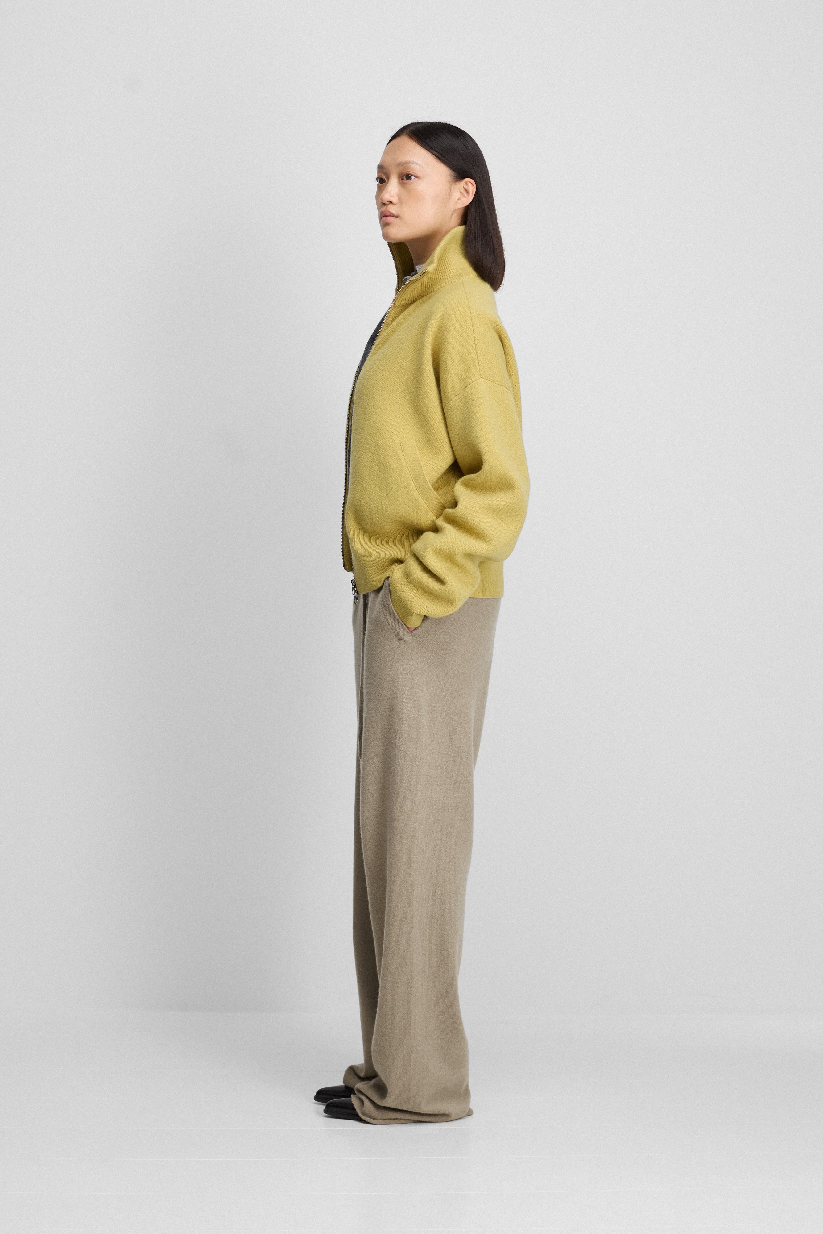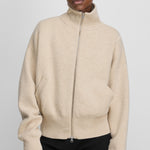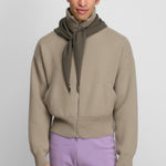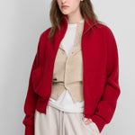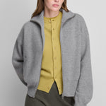 crafted in a luxurious jacquard knit, this cashmere zip cardigan offers a unique texture reminiscent of a scuba diving suit. designed with a cropped bomber fit, the xtra cute features a two-way full-length zipper and two practical side pockets. perfect for layering, it also works as a lightweight jacket for transitional seasons.