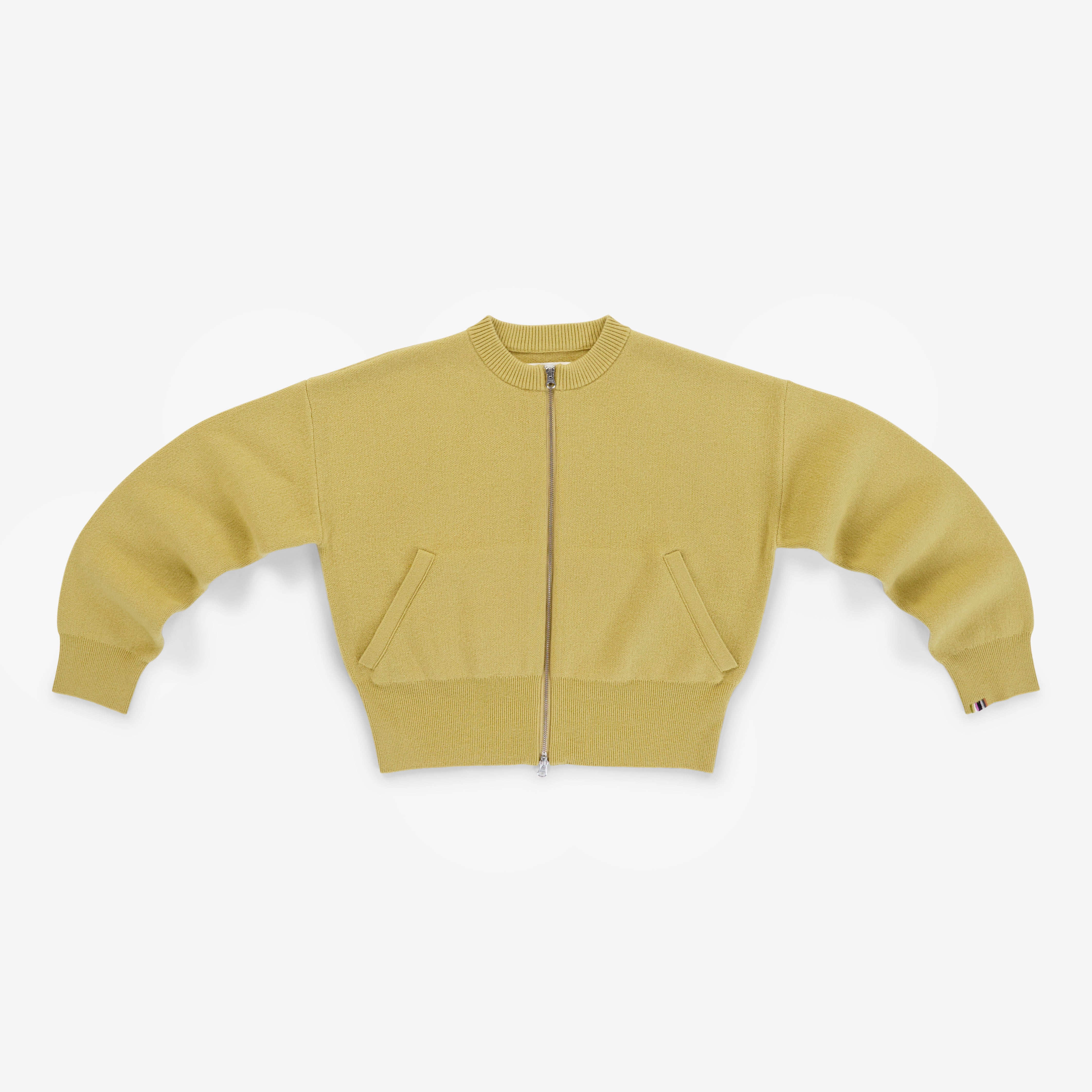sporty and sleek with a classic crew neck, the xtra fun is a playful zip-up cardigan in 100% cashmere. crafted in a luxurious jacquard knit, its unique texture echoes the structure of a scuba suit. perfect for layering or simply worn as a light jacket, the xtra fun is designed with a cropped bomber fit: like our xtra cute cardigan, just with a crew neck. a two-way full-length zipper and two side pockets add further quiet detail and practicality.