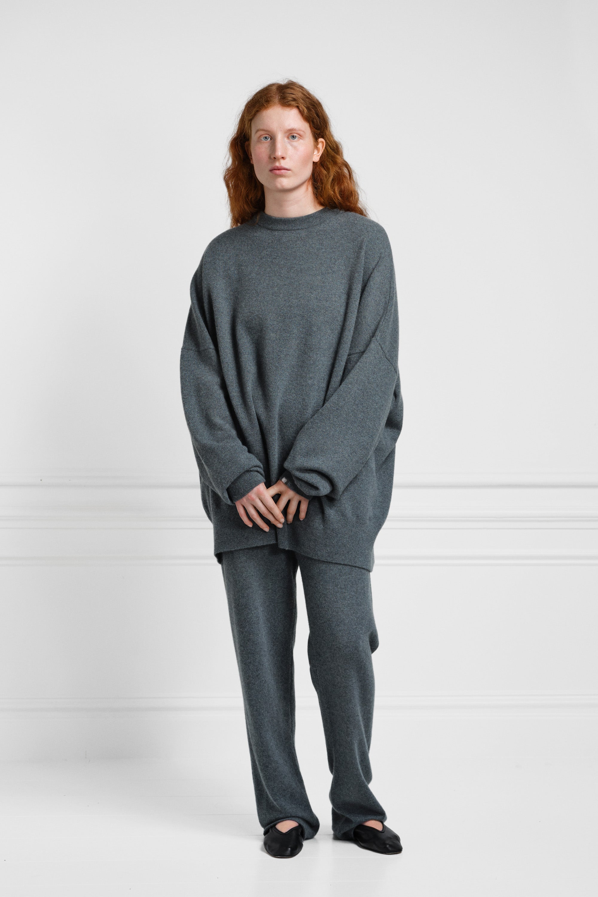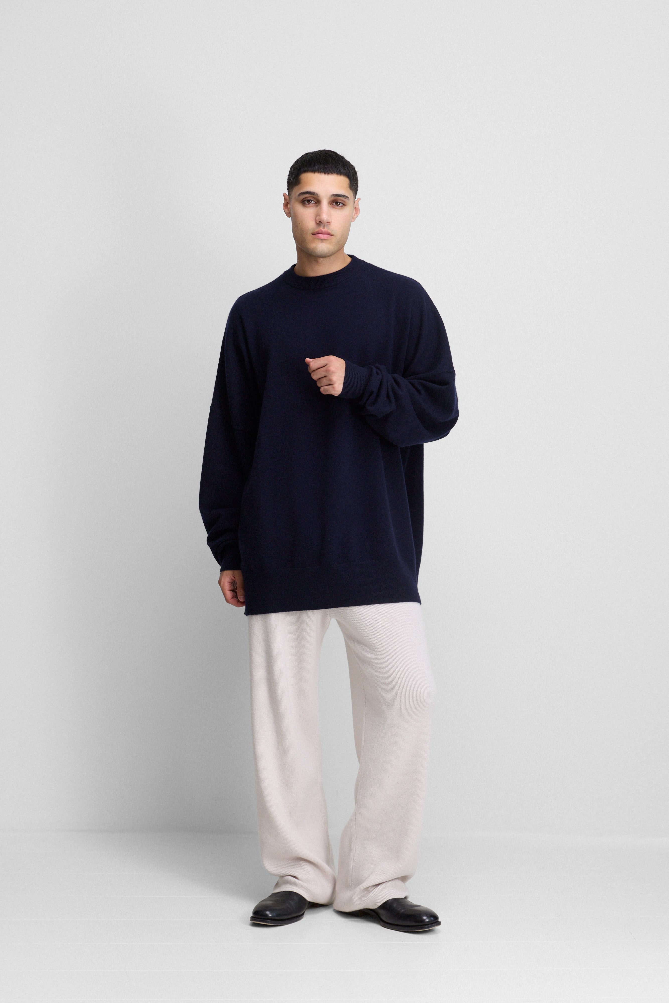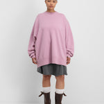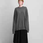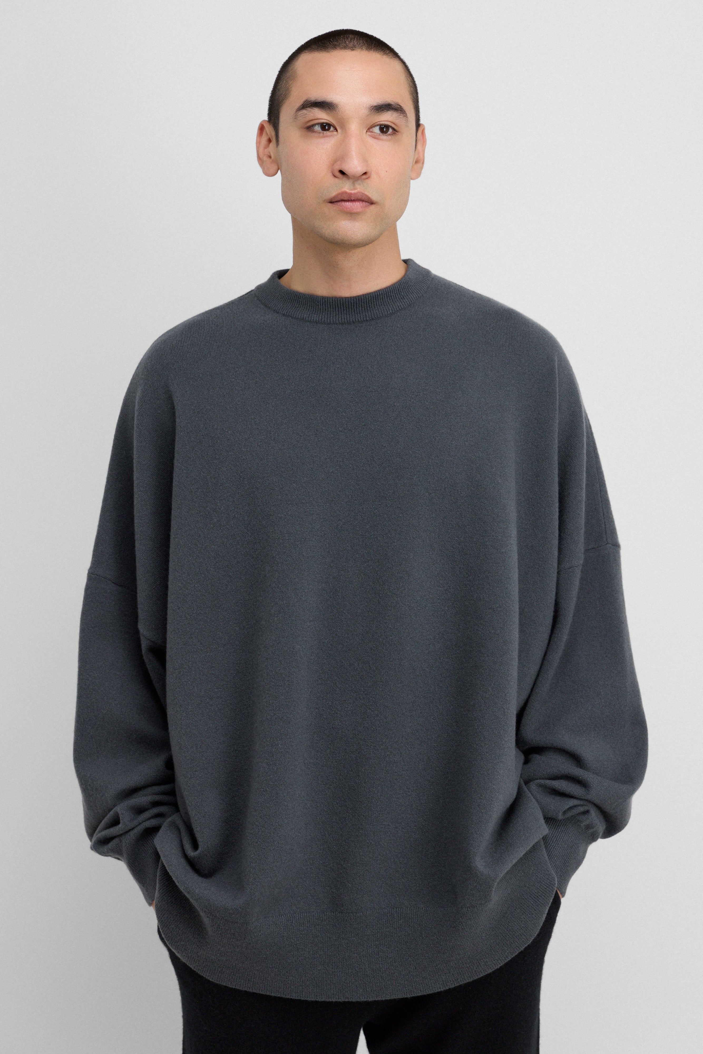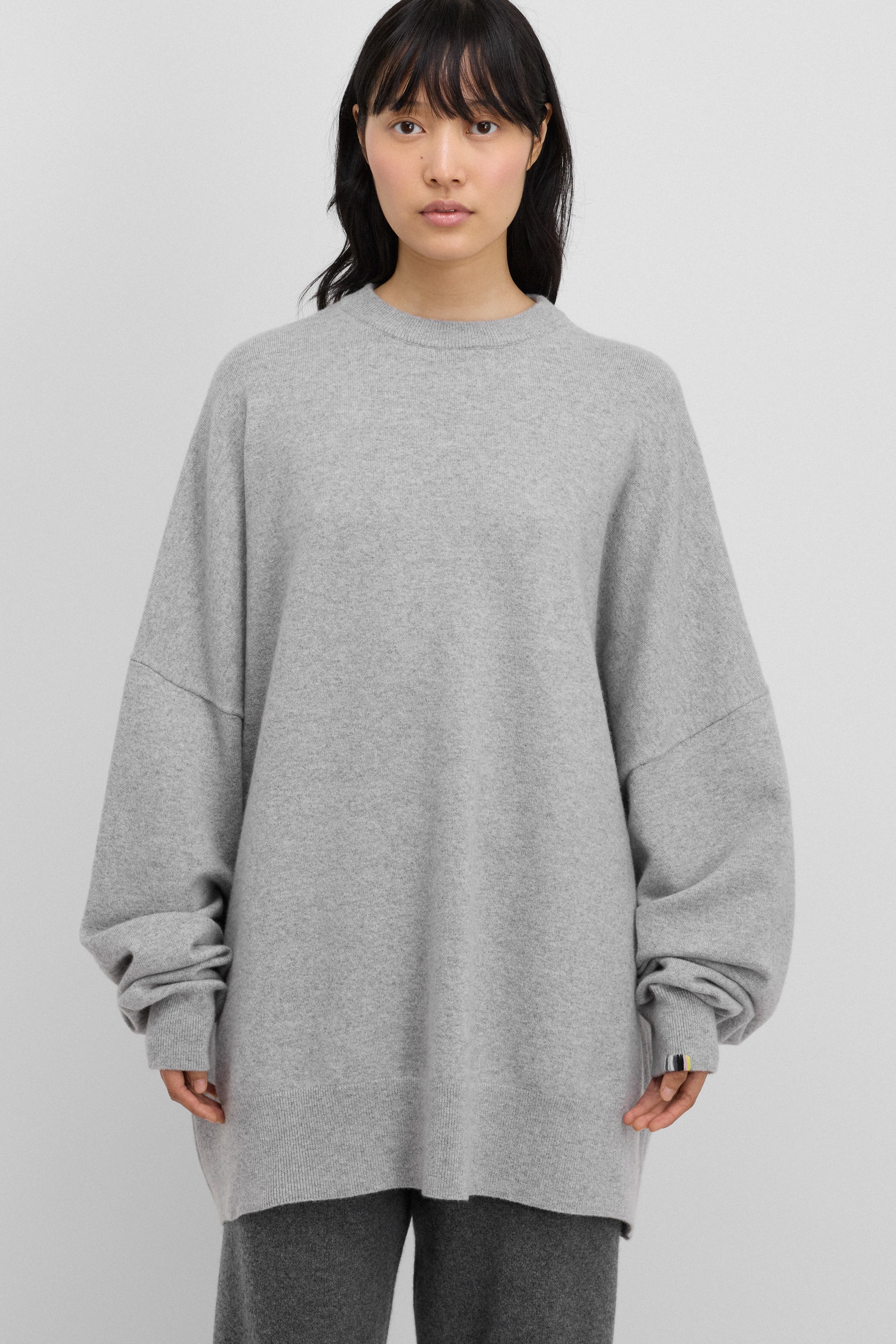 our favourite cashmere sweater juna truly looks different on every body. It’s an oversized crewneck cashmere sweater with extra long sleeves. this drop-shoulder jumper is rib-knitted at the neck, hem and cuffs.
