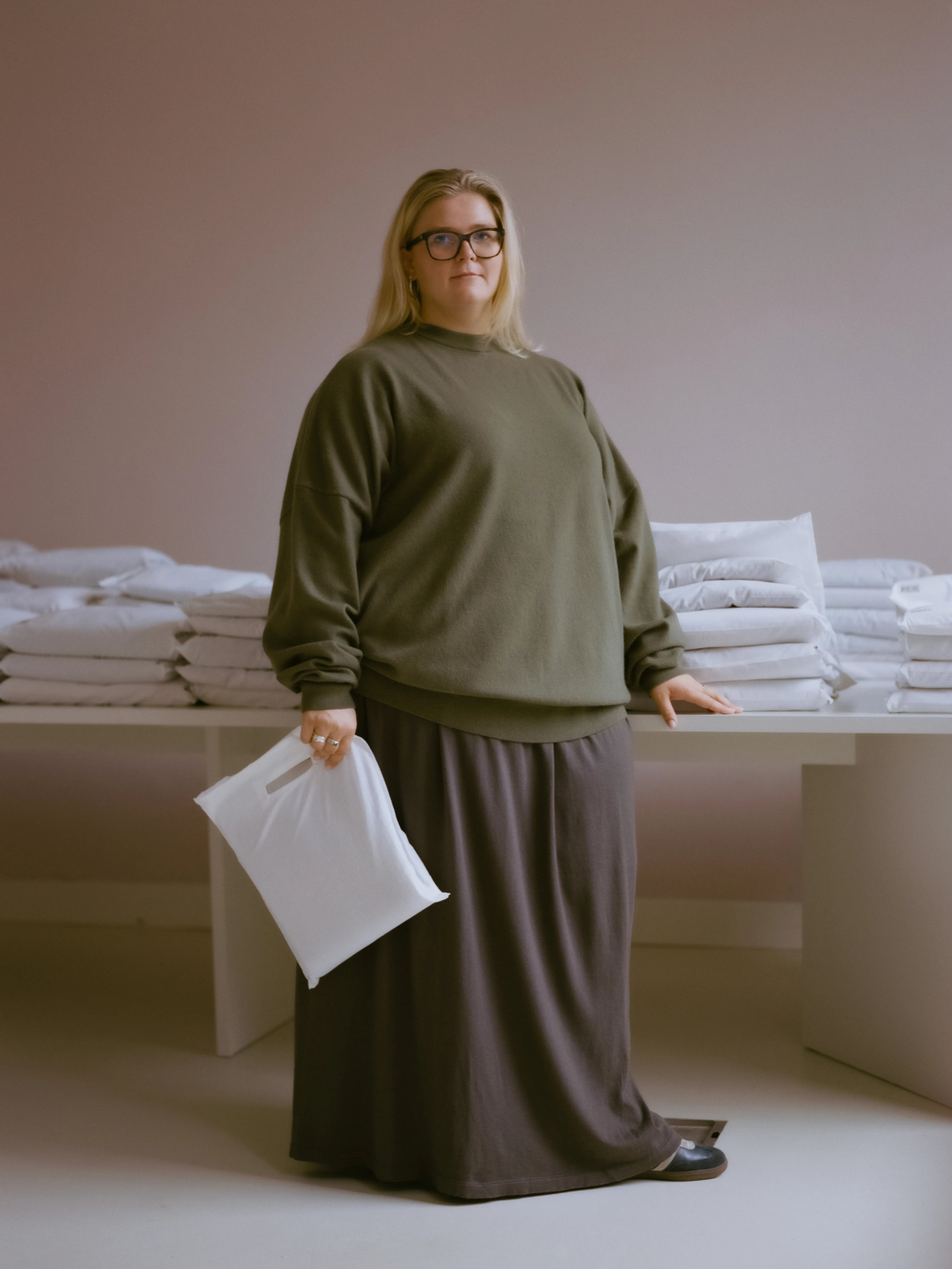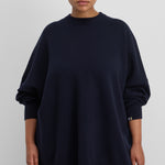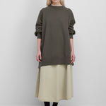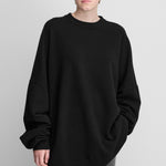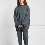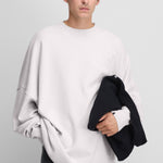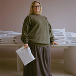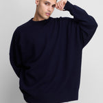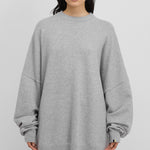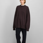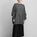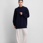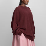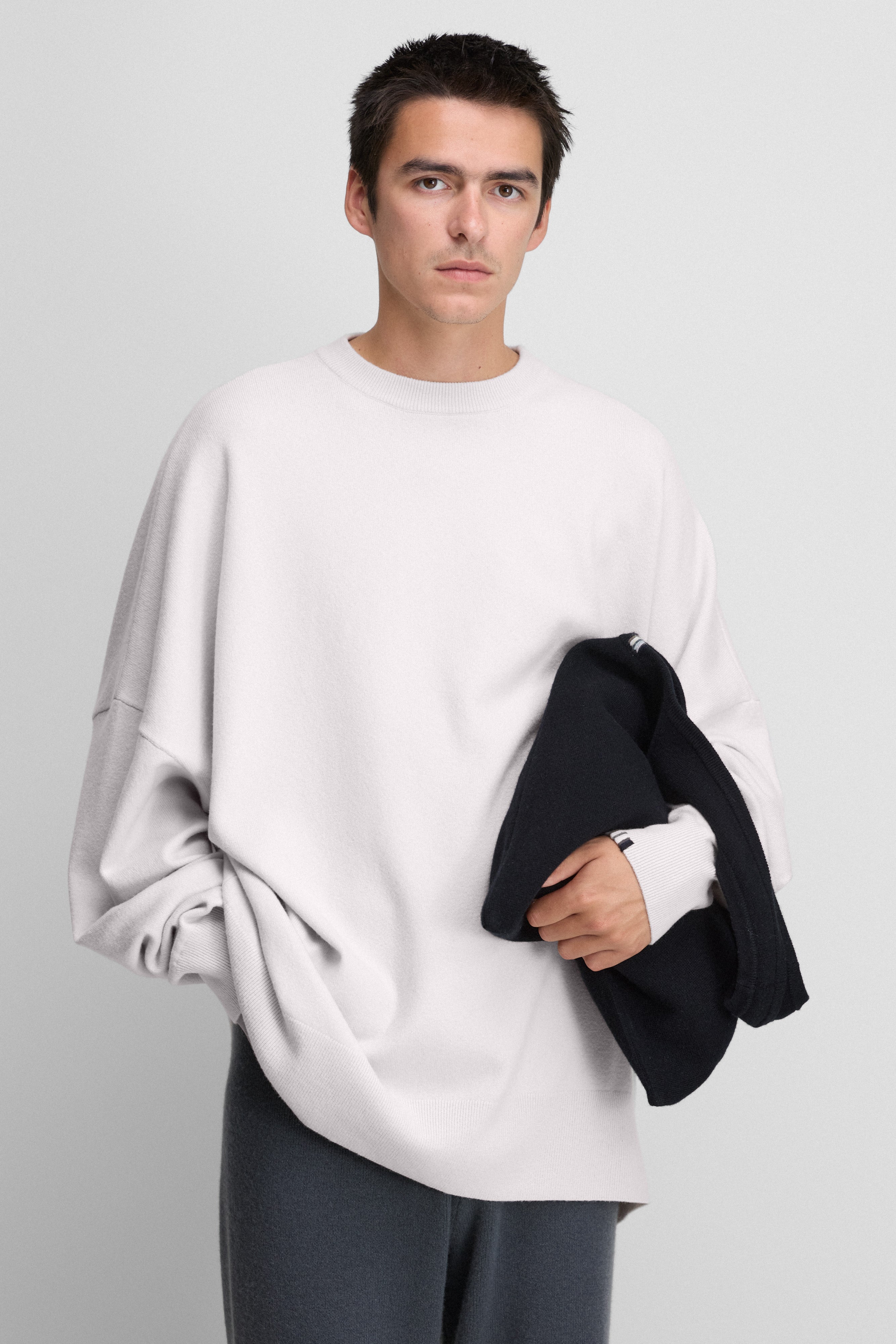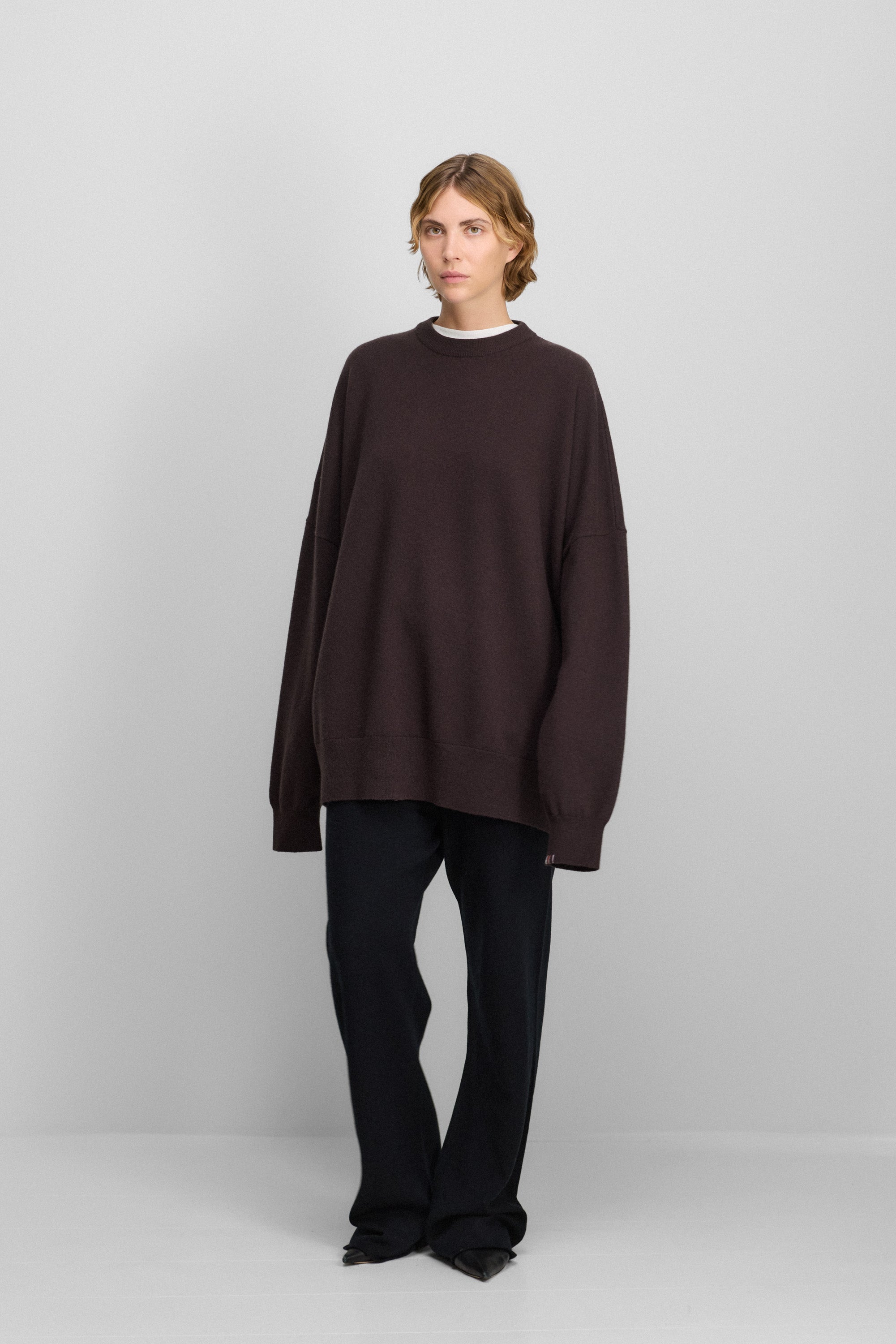 our favourite cashmere sweater juna truly looks different on every body. It’s an oversized crewneck cashmere sweater with extra long sleeves. this drop-shoulder jumper is rib-knitted at the neck, hem and cuffs.