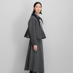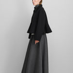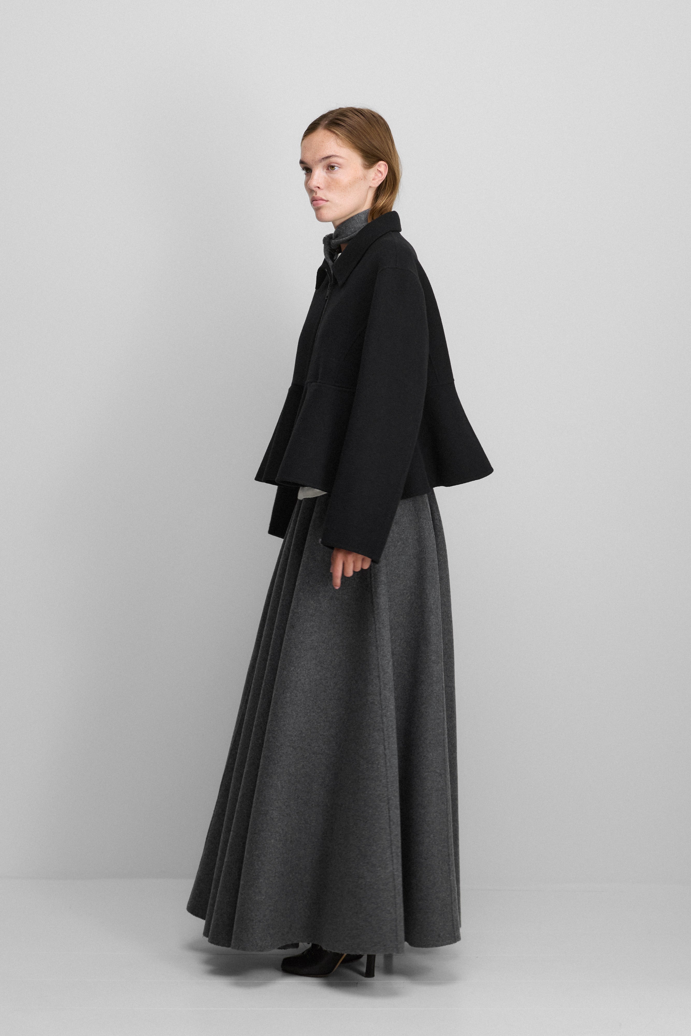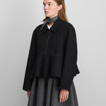 the queen is a refined cashmere peplum jacket with a cropped, tailored fit. crafted from double-faced cashmere, this structured statement piece features a full-length zipper and sleek slit pockets hidden in the horizontal seam. fitted at the top, fluid and voluminous at the bottom, the queen is chic and playful in equal measure. crafted with great attention to detail, this cashmere coat is largely handmade.