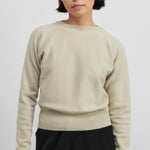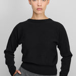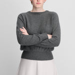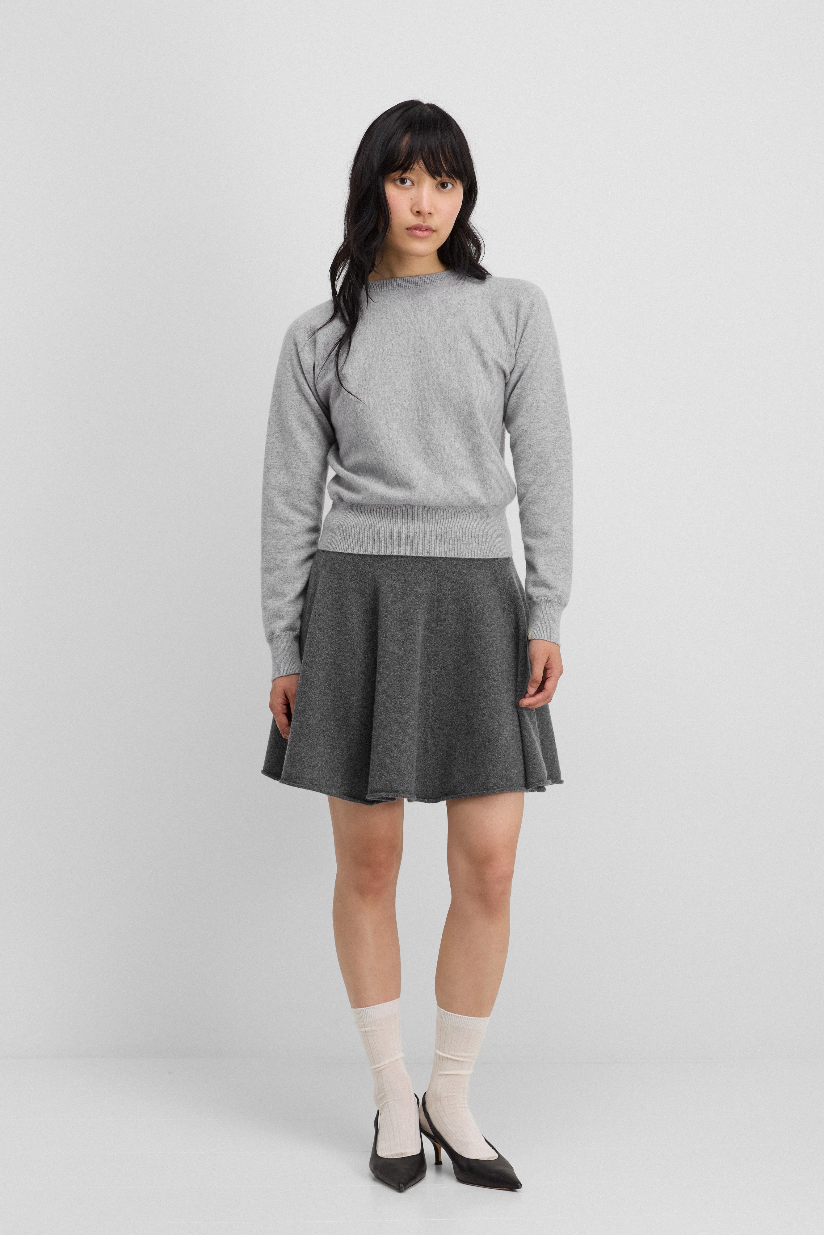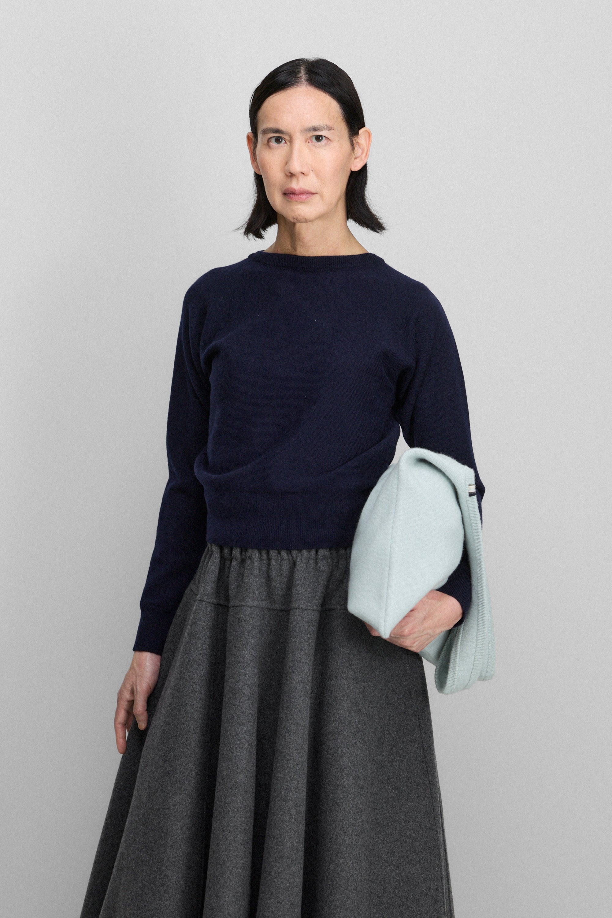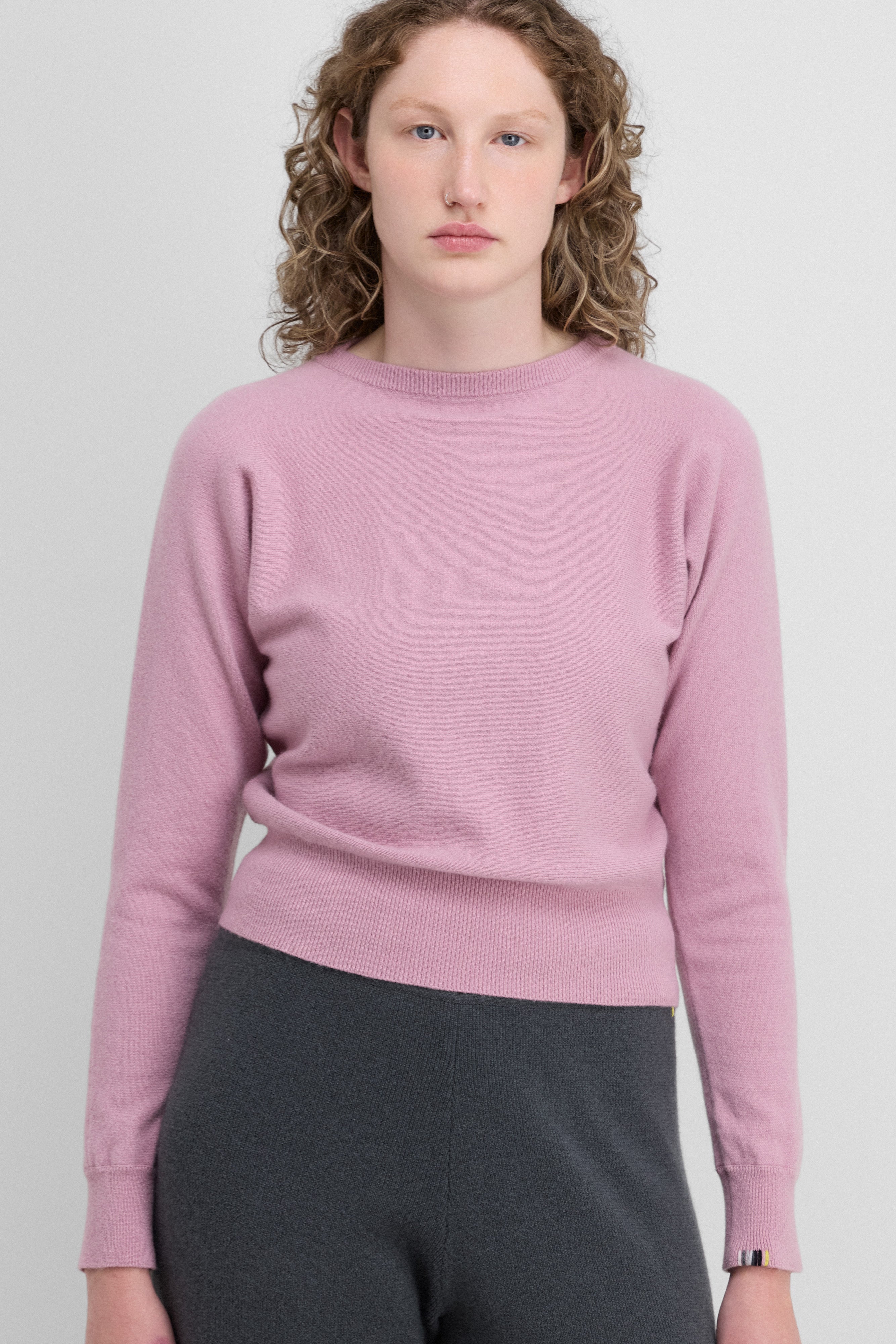 cropped cashmere sweater belle has a subtle bat sleeve. this small sweater is the same fit as our elleni top, but crafted in our regular luxurious cashmere knit.