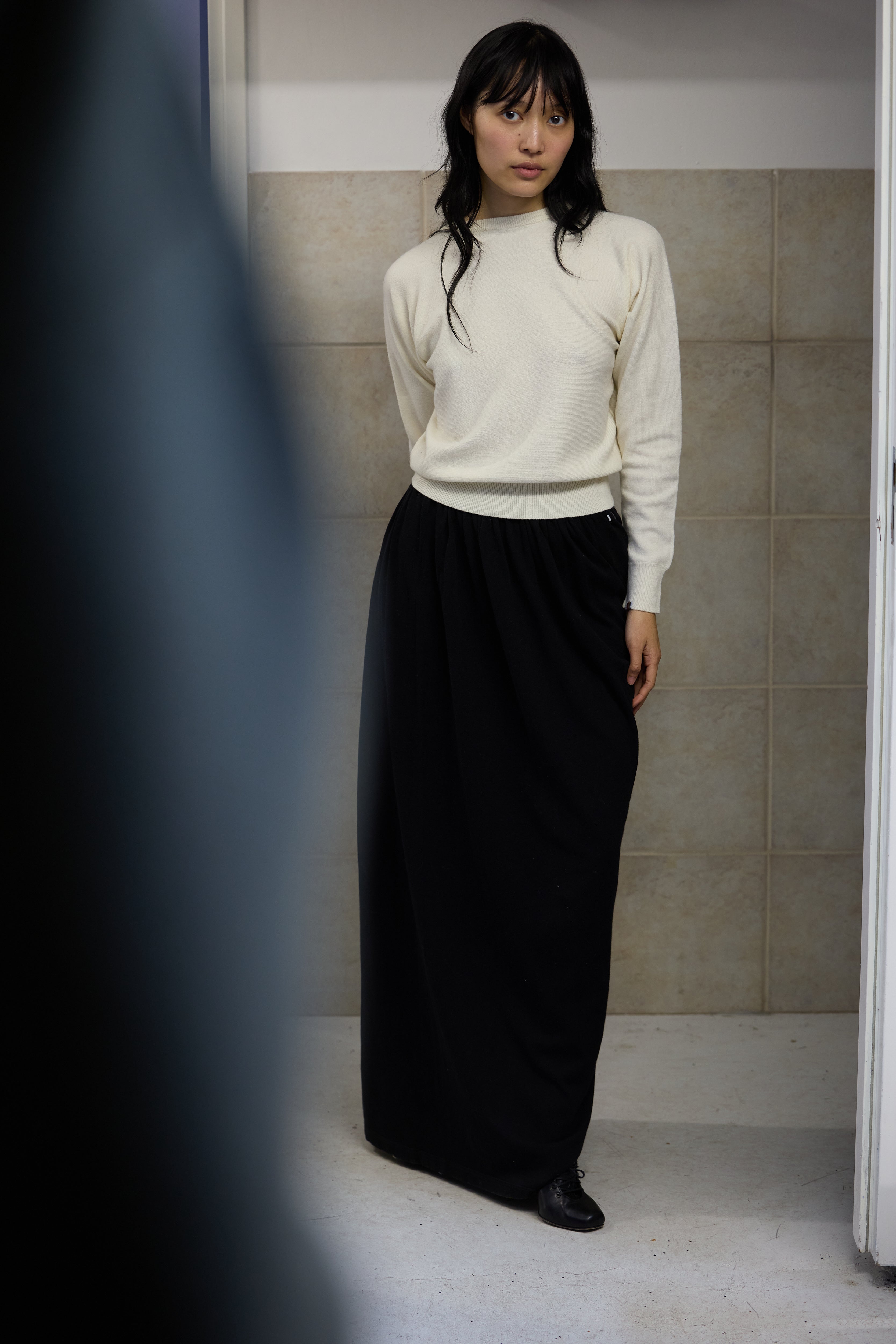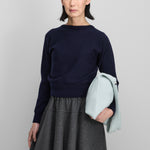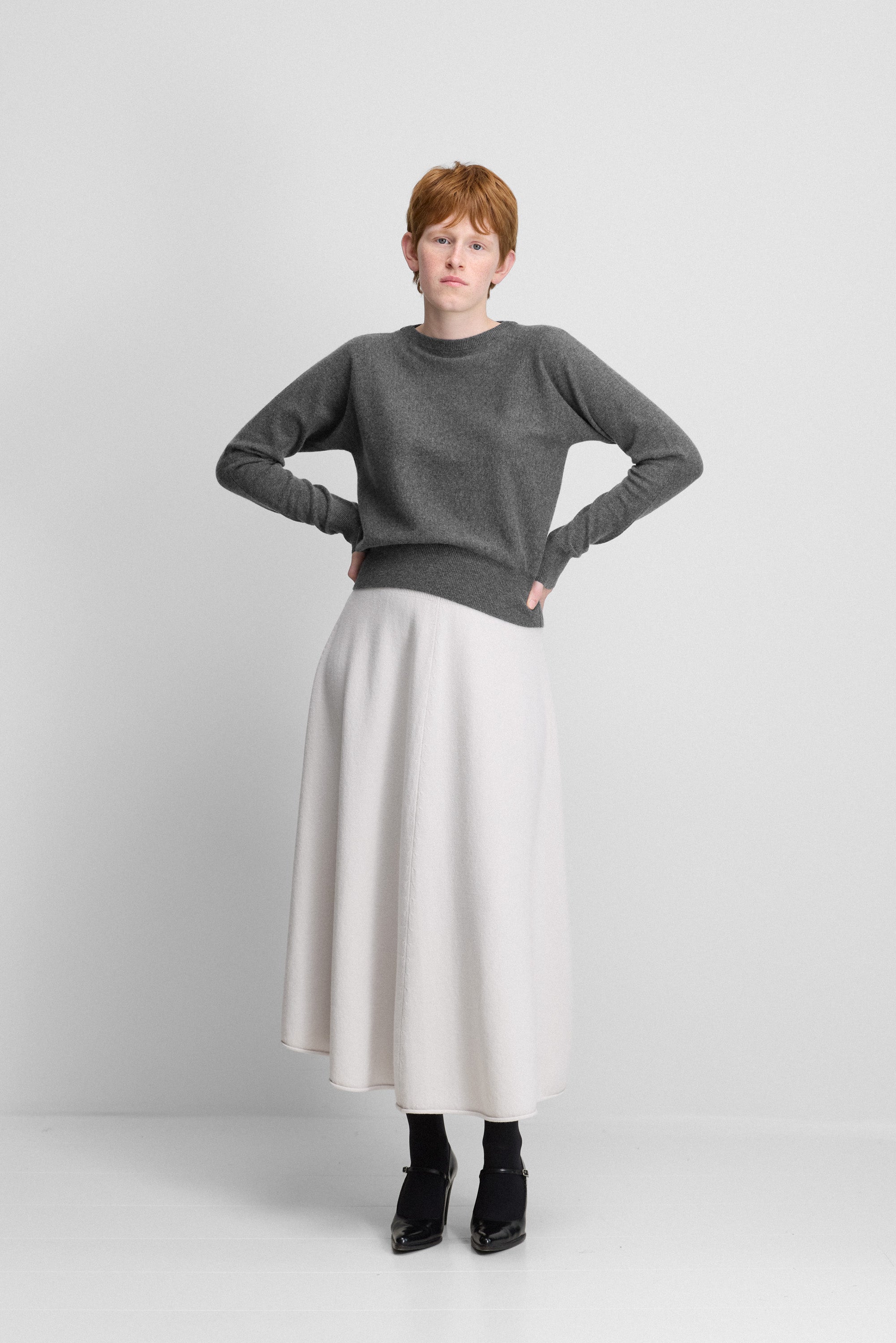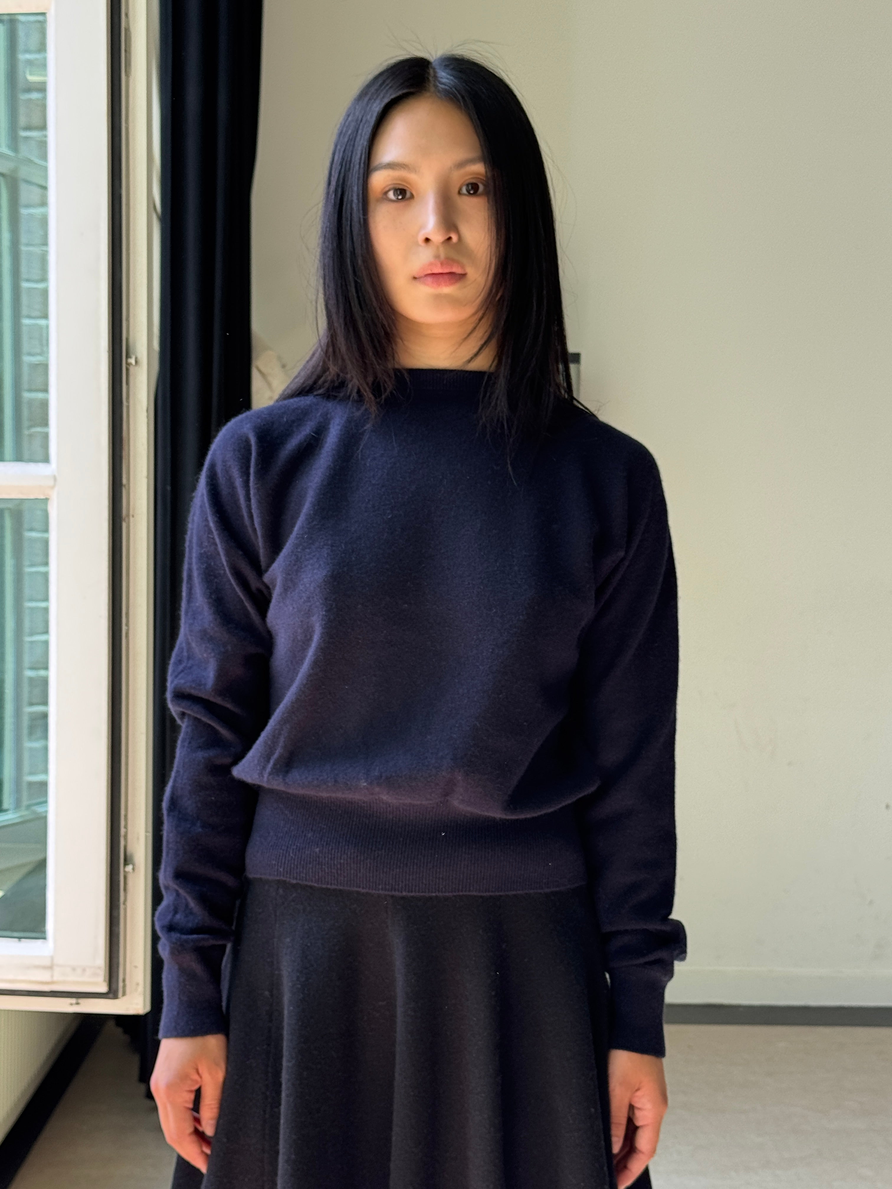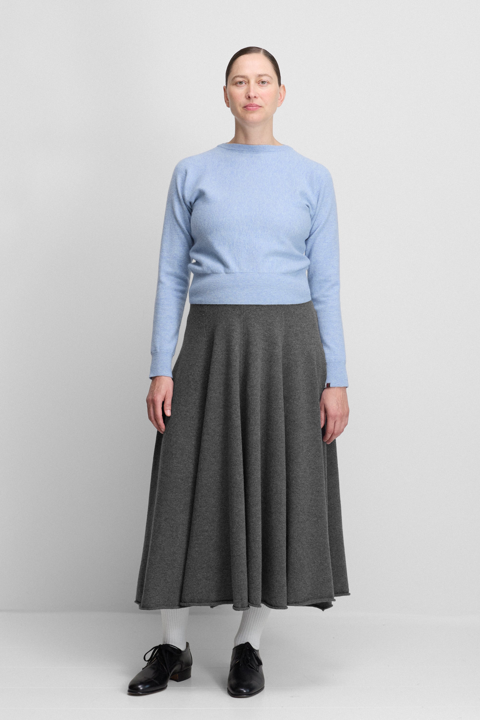 cropped cashmere sweater belle has a subtle bat sleeve. this small sweater is the same fit as our elleni top, but crafted in our regular luxurious cashmere knit.