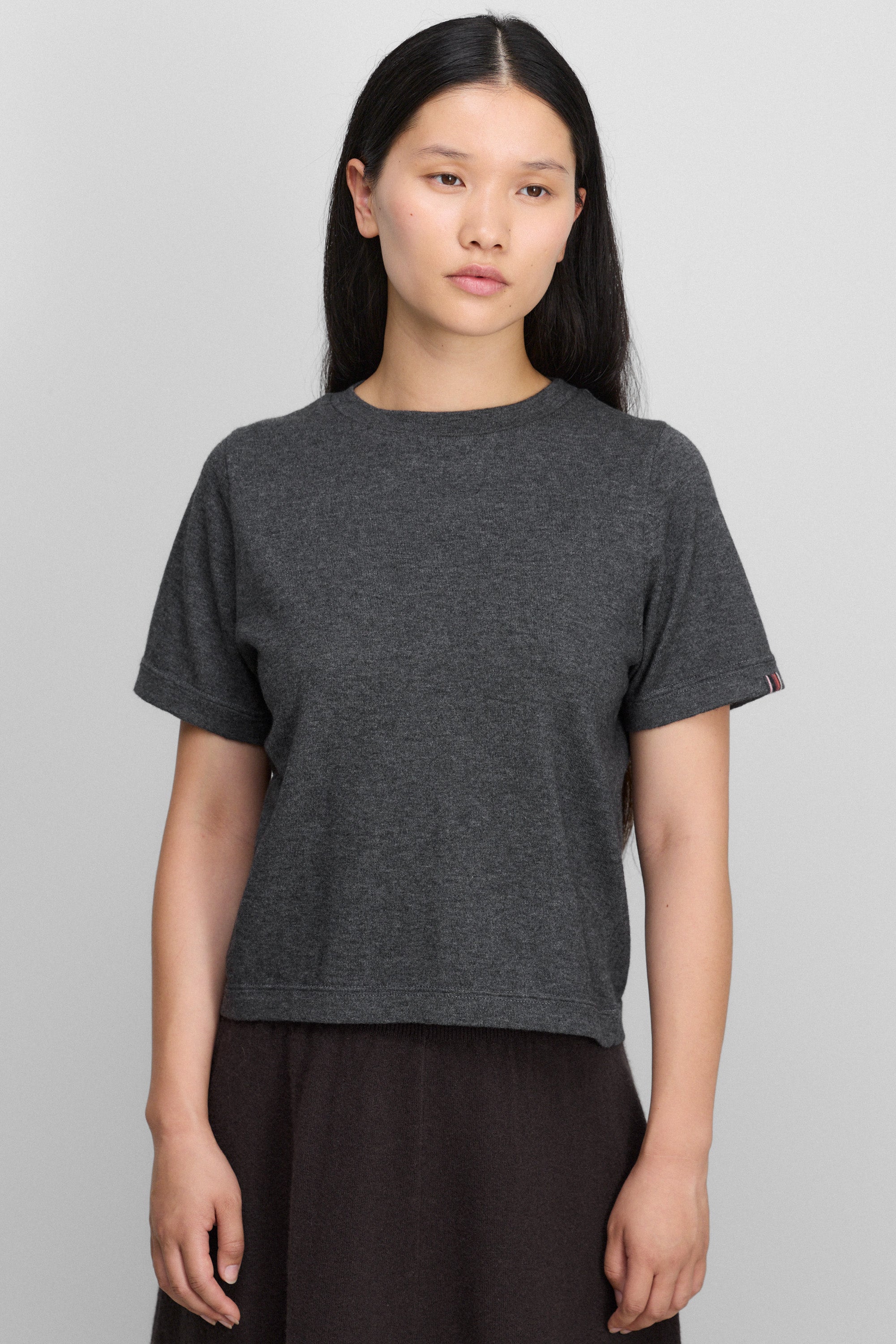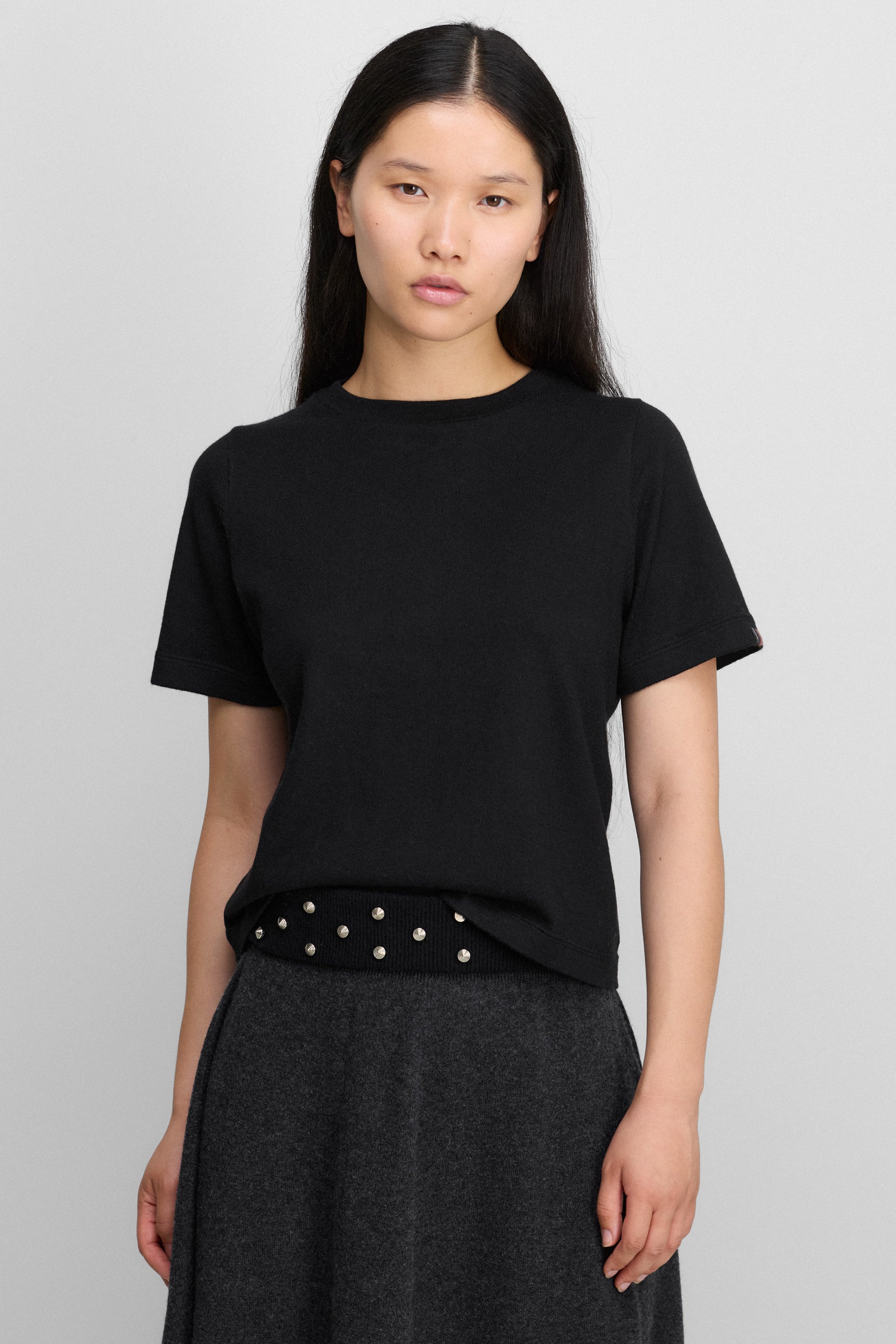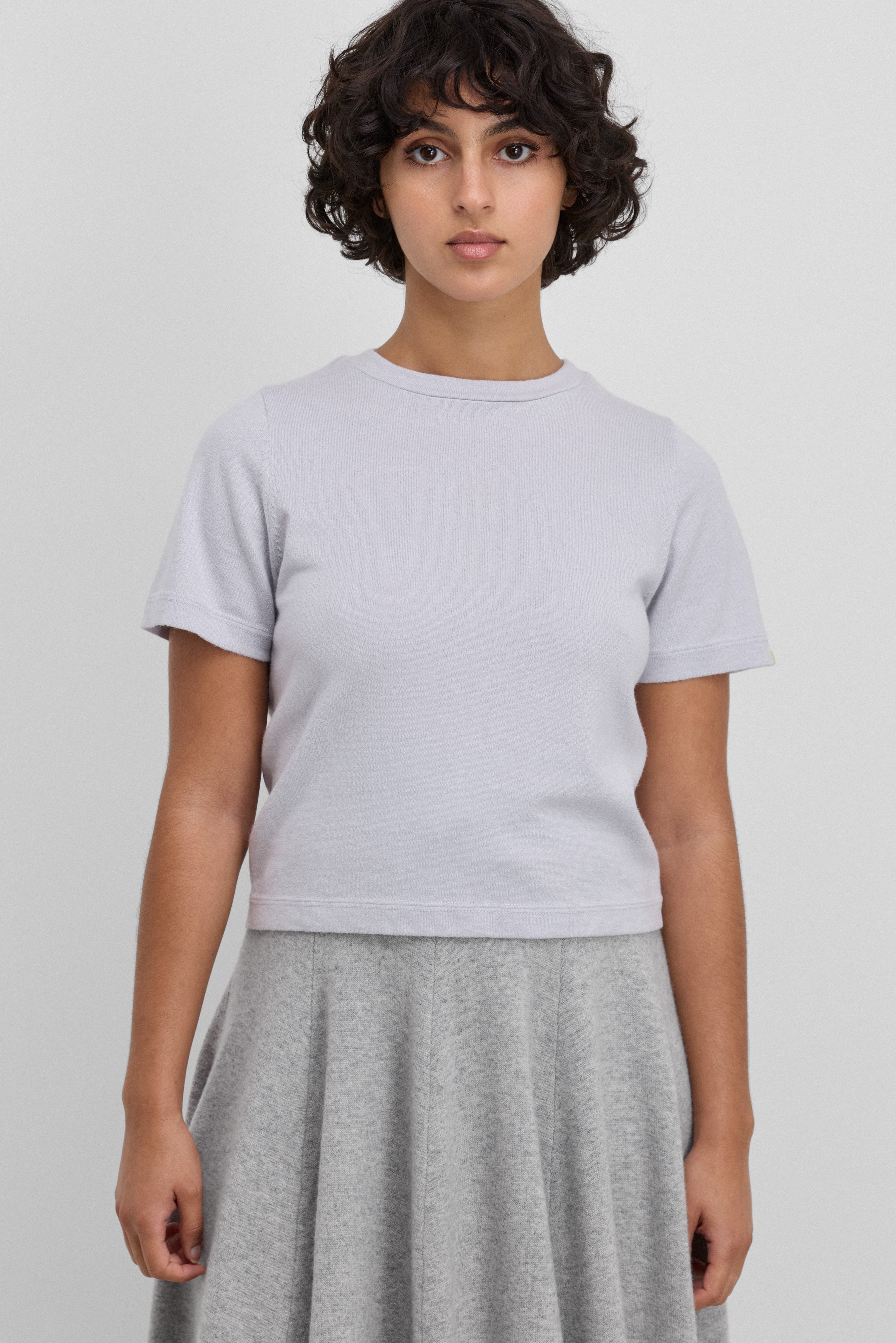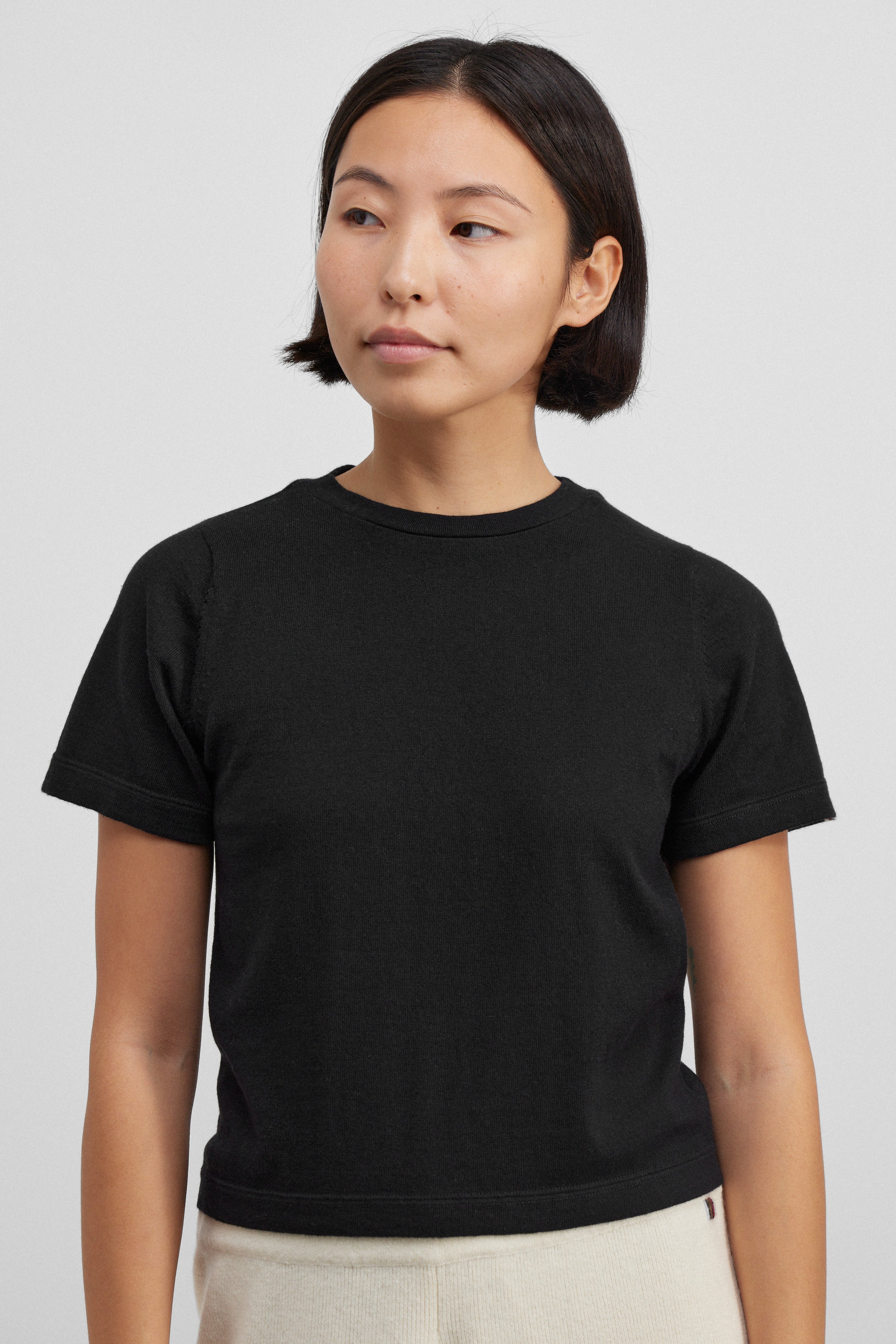 small, short-sleeved t-shirt in cotton-cashmere. the tina is small, but with its square fit not as tight as the america. our cotton-cashmere series fuses our regular cashmere (30%) with the crisp structure and clean breathability of cotton (70%).