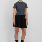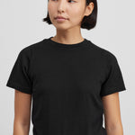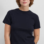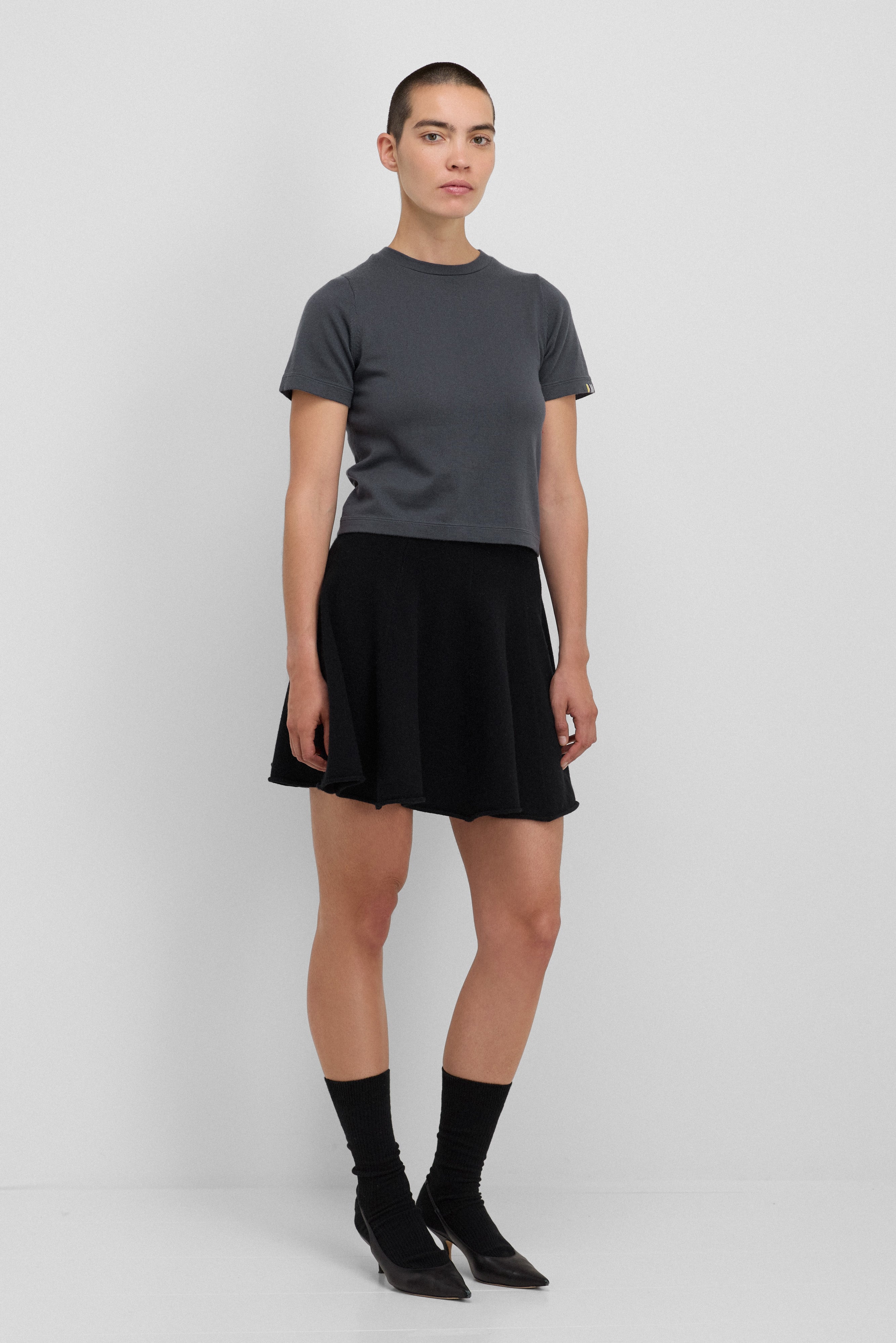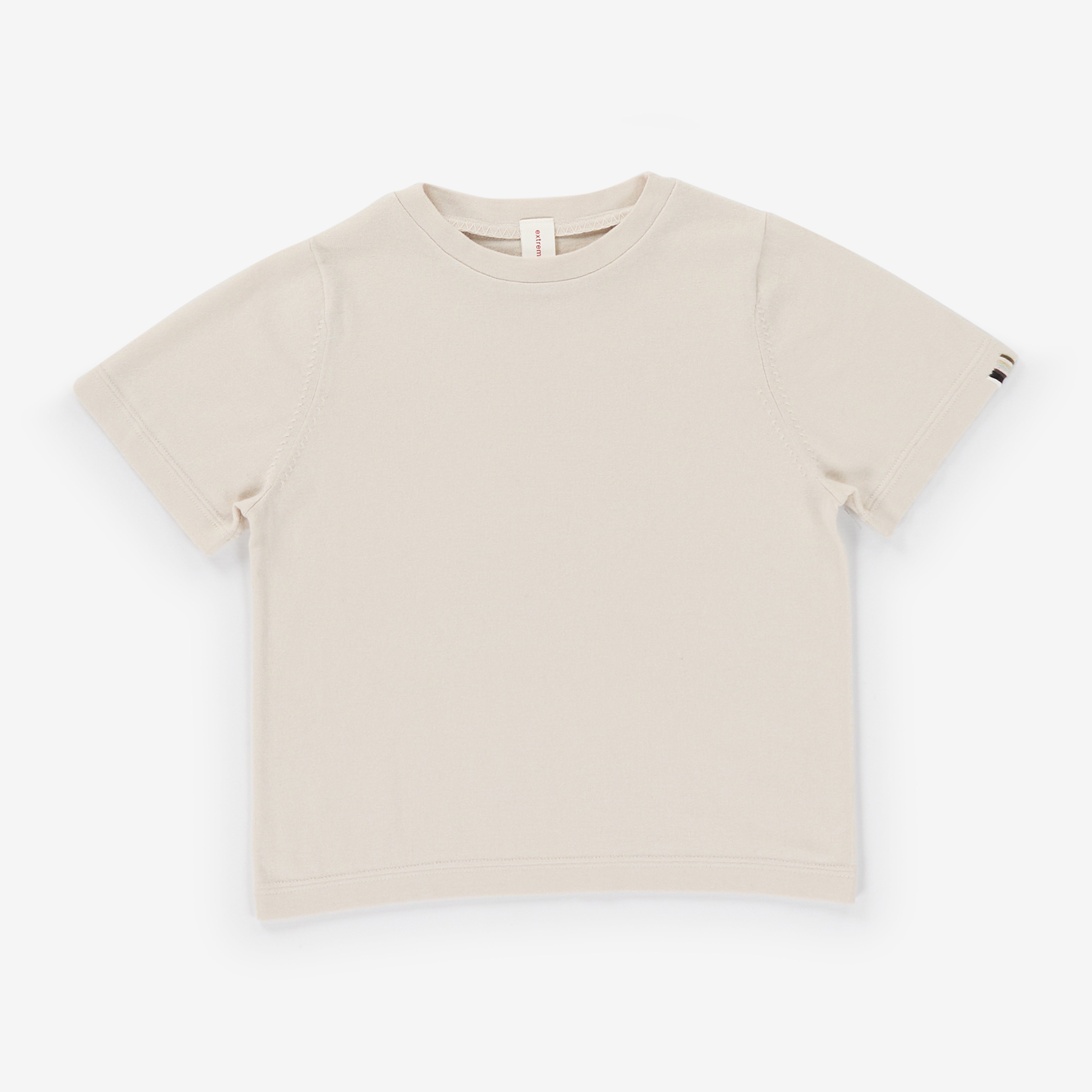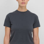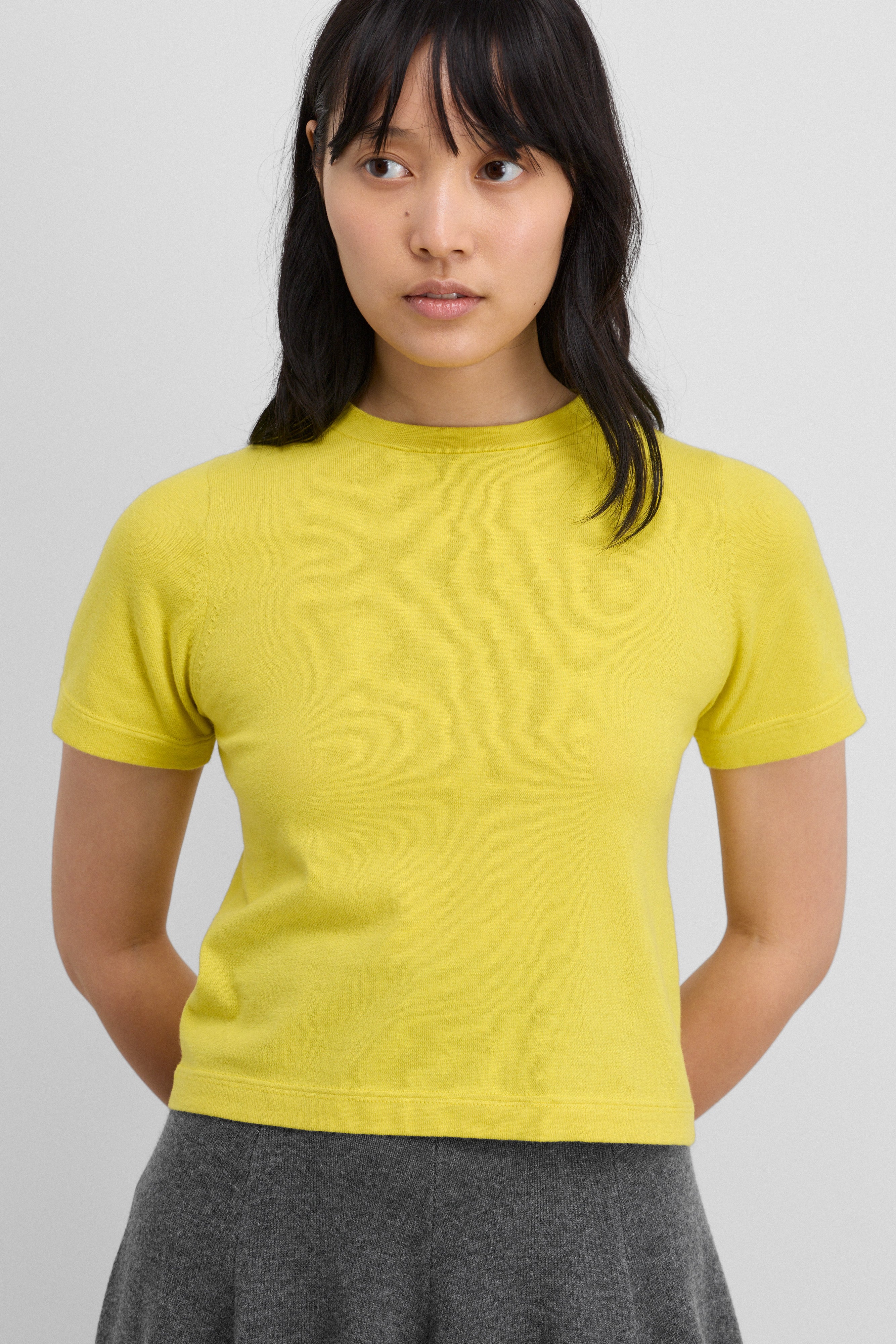 small, short-sleeved t-shirt in cotton-cashmere. the tina is small, but with its square fit not as tight as the america. our cotton-cashmere series fuses our regular cashmere (30%) with the crisp structure and clean breathability of cotton (70%).