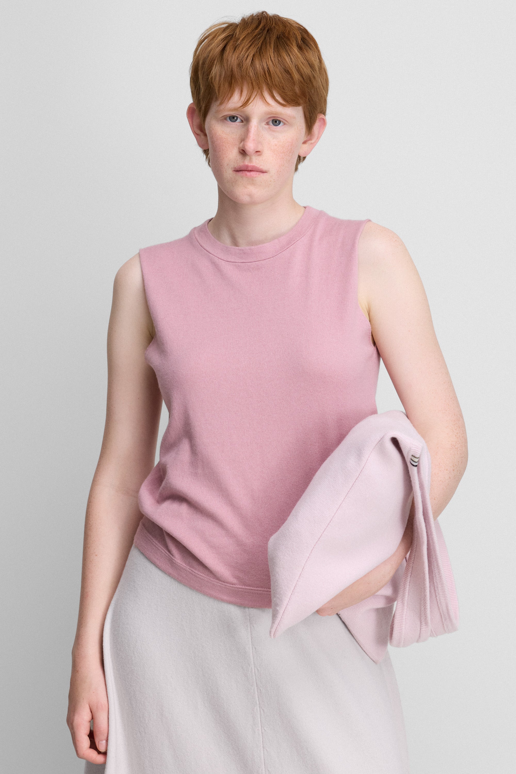 the player is a soft, skin-hugging muscle fit tank top in our breathable cotton cashmere blend. finished with a flatlock hem, this short and boxy silhouette is a comfortable staple perfect for all seasons.