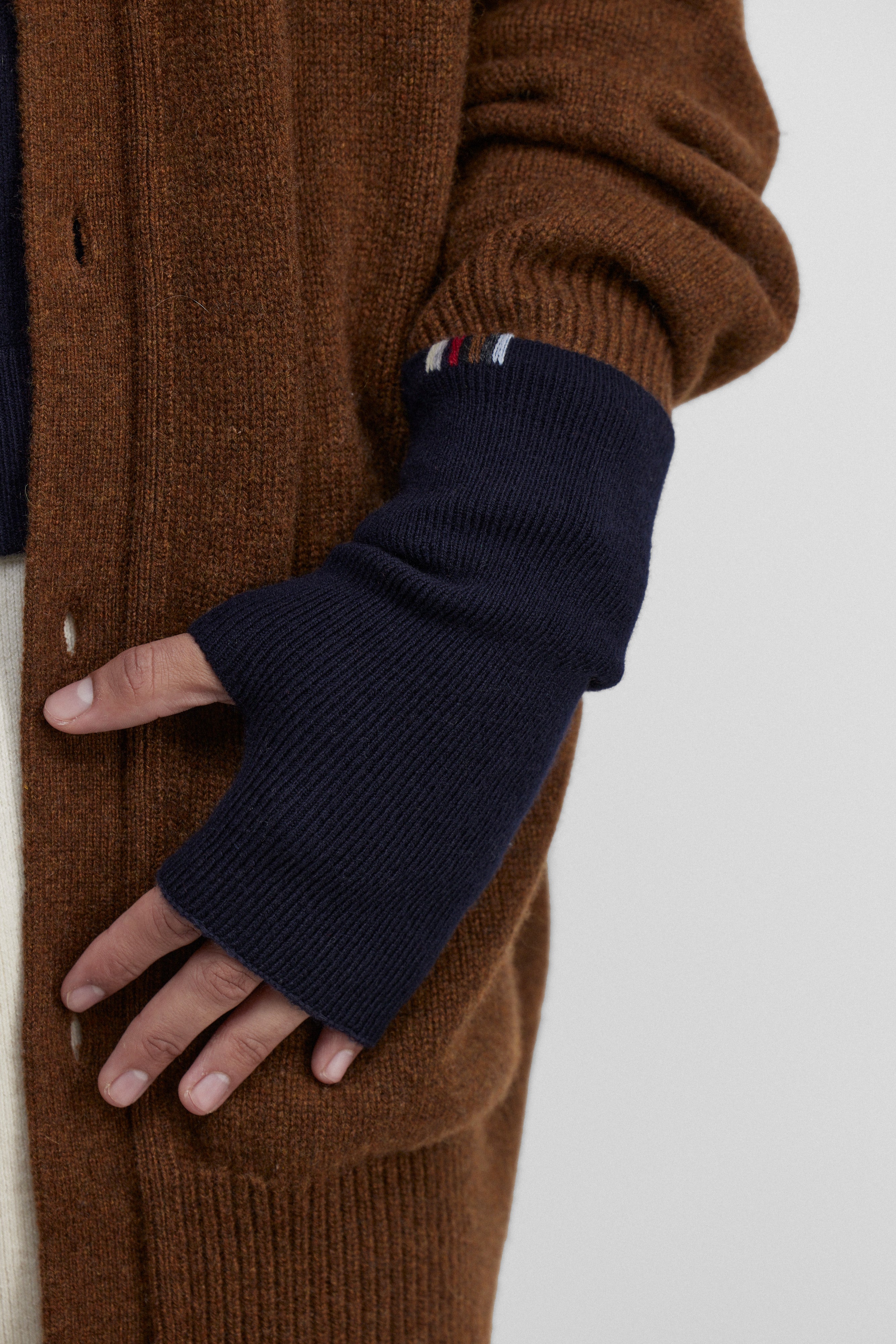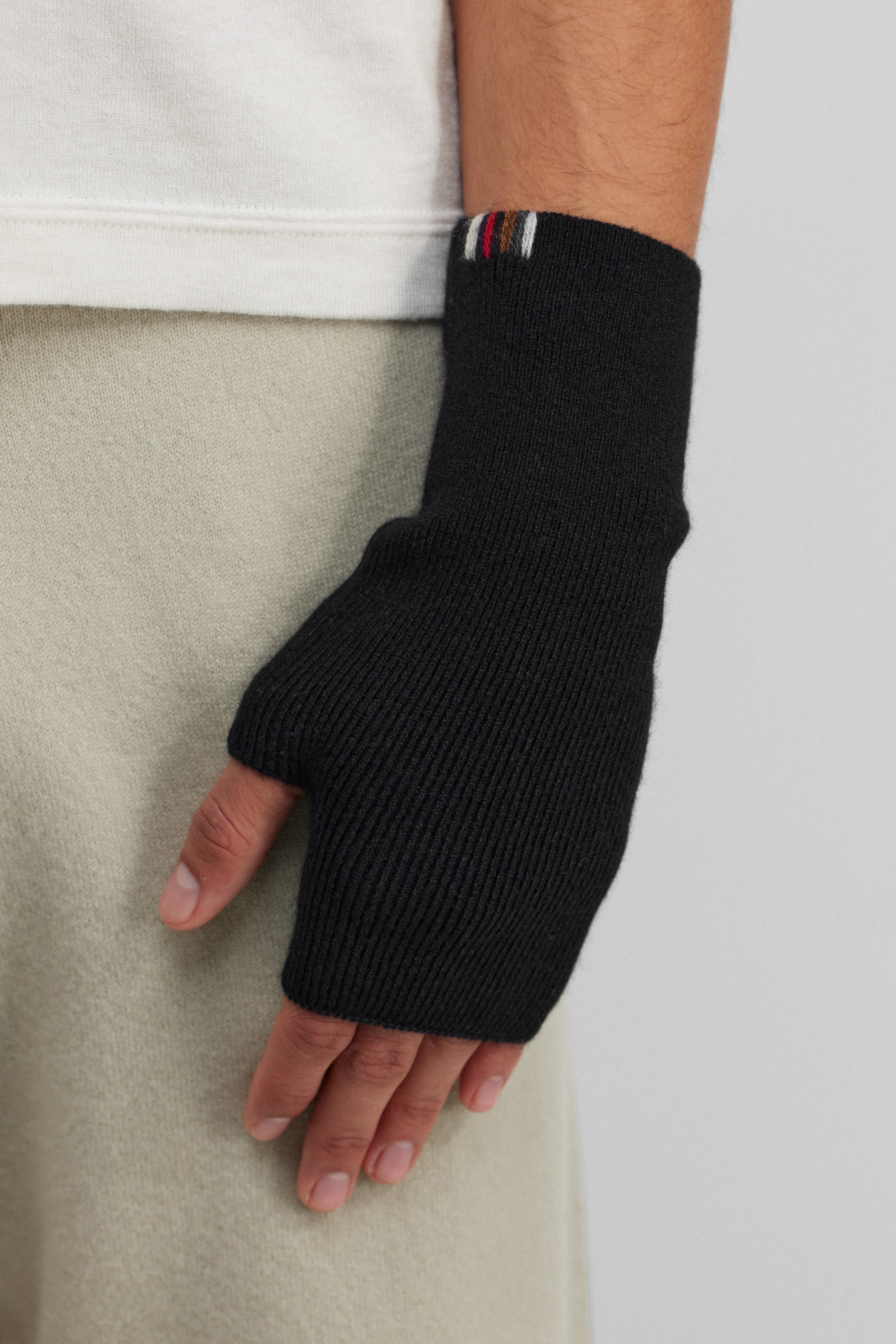 these fingerless cashmere gloves feature a dedicated thumb opening for extra comfort. crafted from high-quality cashmere, the rib-knitted wrist warmers are the perfect winter accessory for every day. also available with hand-embroidered sequins.