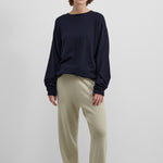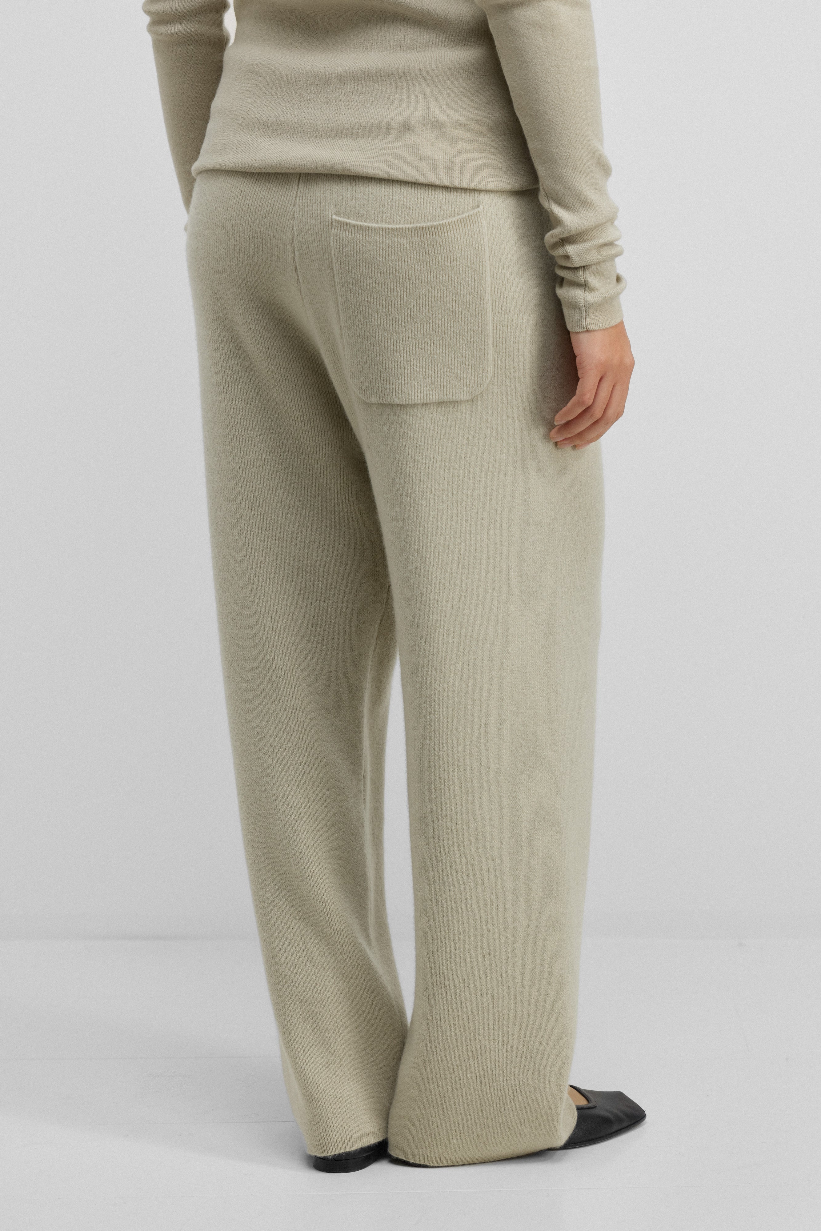 these wide-legged cashmere trousers come in a warm, heavy rib knit. the strut features a back pocket and a comfortable drawstring on the inside to create your perfect fit. if these full-length cashmere trousers are too long for you, choose the strut short instead, which are 10 cm shorter.