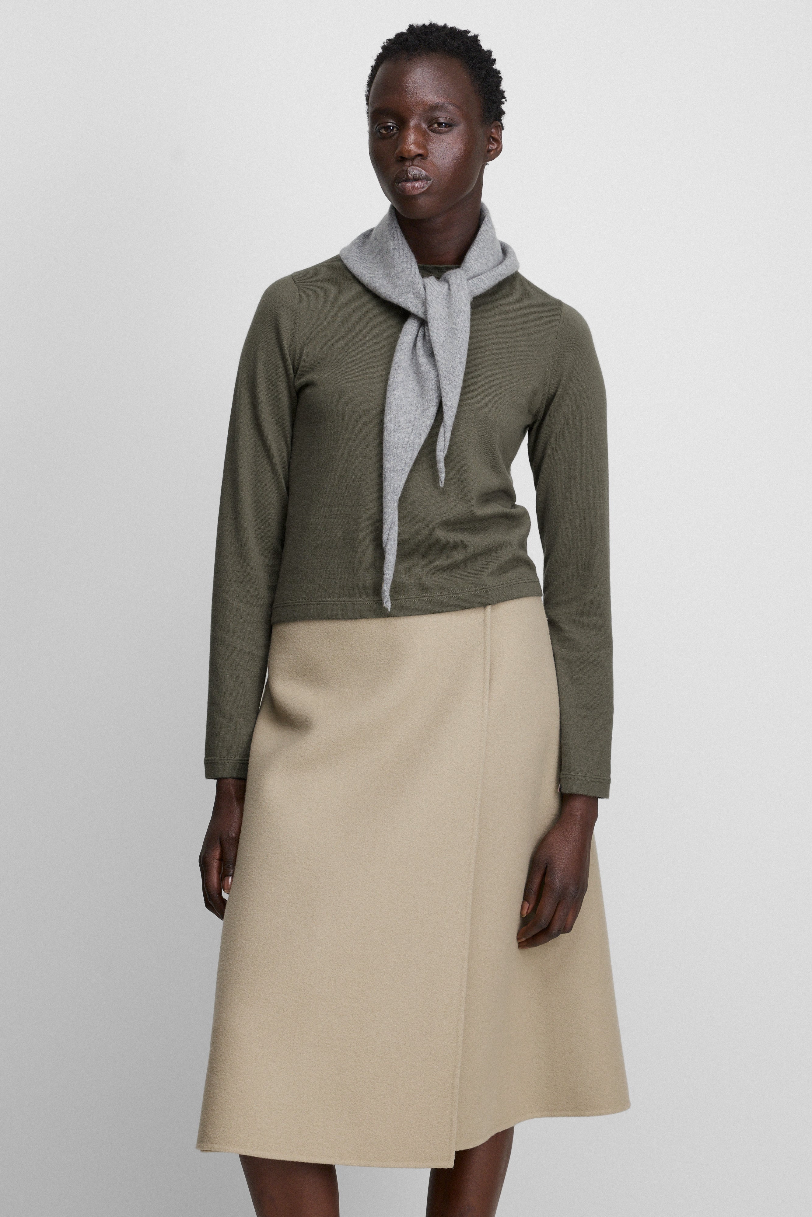 the lisa is an essential long-sleeved crew-neck t-shirt in our breathable cotton-cashmere blend, fusing the rich softness of cashmere with the airy crispness of cotton. a close relative of the tina t-shirt style, the lisa top features long sleeves and a boxy, square fit.