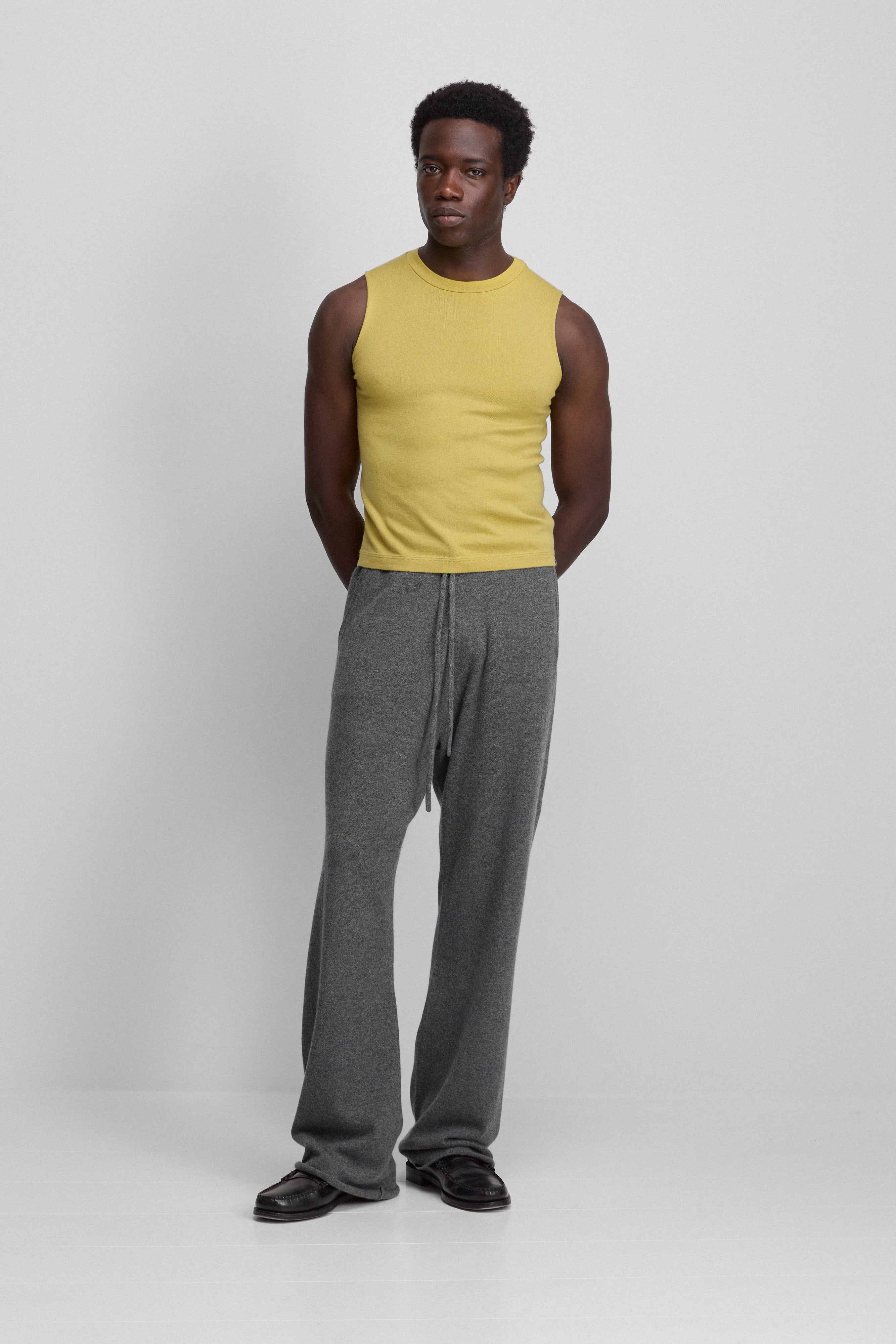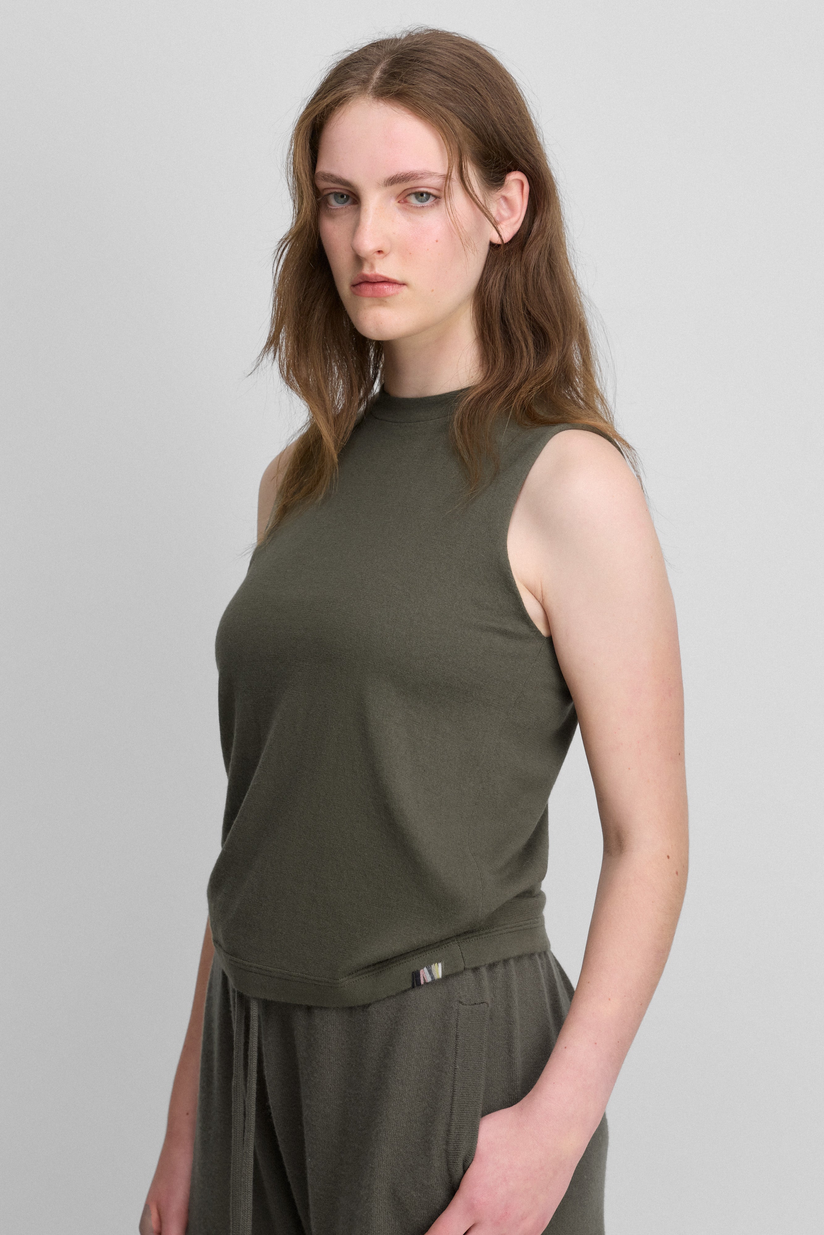 the player is a soft, skin-hugging muscle fit tank top in our breathable cotton cashmere blend. finished with a flatlock hem, this short and boxy silhouette is a comfortable staple perfect for all seasons.