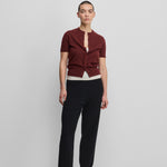 these wide-legged cashmere trousers come in a warm, heavy rib knit. the strut features a back pocket and a comfortable drawstring on the inside to create your perfect fit. if these full-length trousers are too short for you, choose the strut instead, which are 10 cm longer.