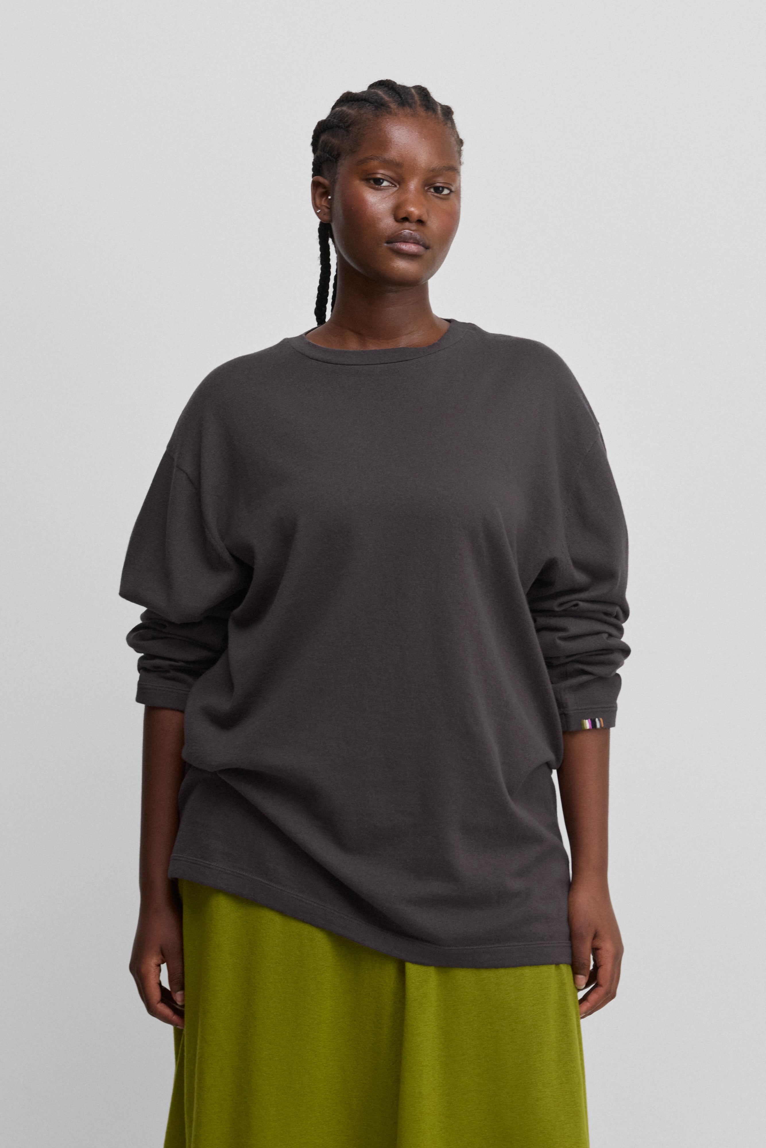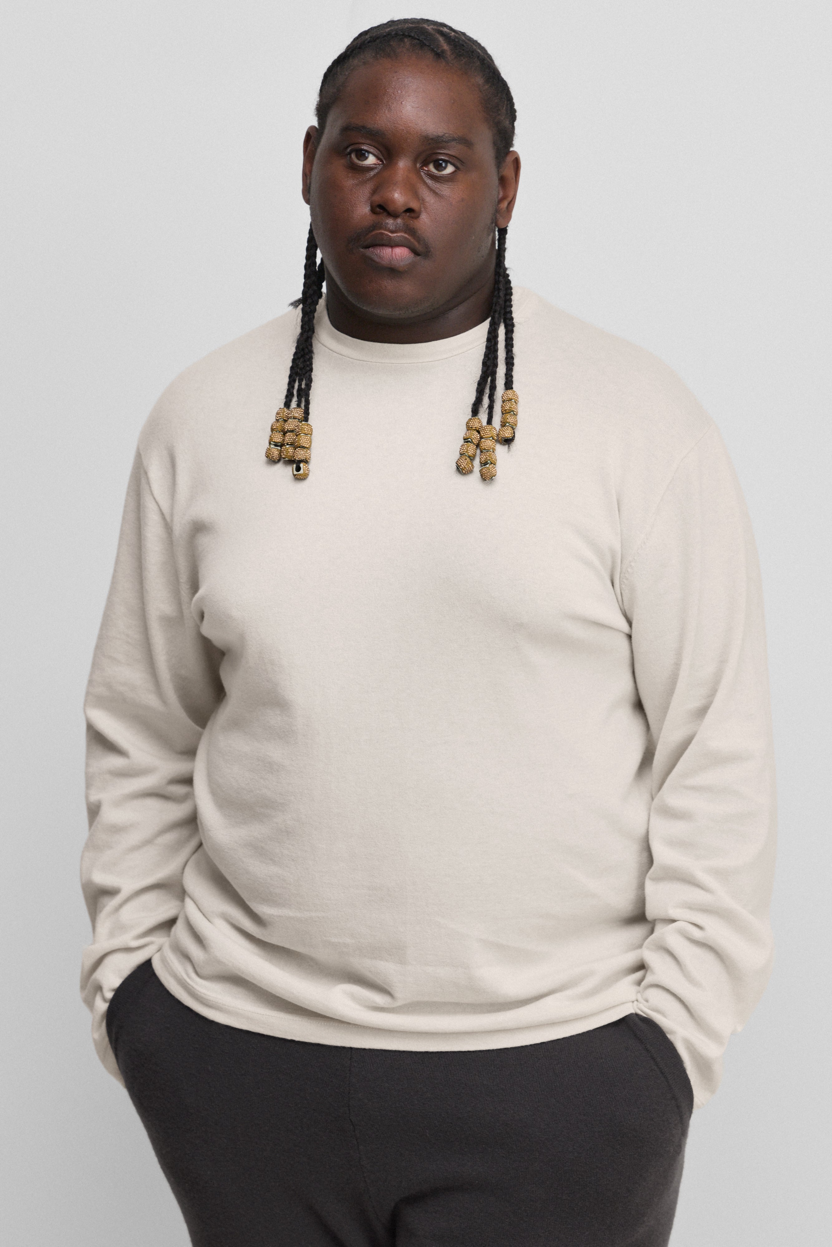 a variation on the short-sleeved rik, the rock is a loose-fit long-sleeved crew-neck t-shirt in our bespoke cotton-cashmere blend – combining the lightness of crisp cotton with the sumptuous warmth of fine cashmere. the largest of our cotton-cashmere t-shirt designs, the rock is roomy. expect all-day, airy comfort, whatever the season.