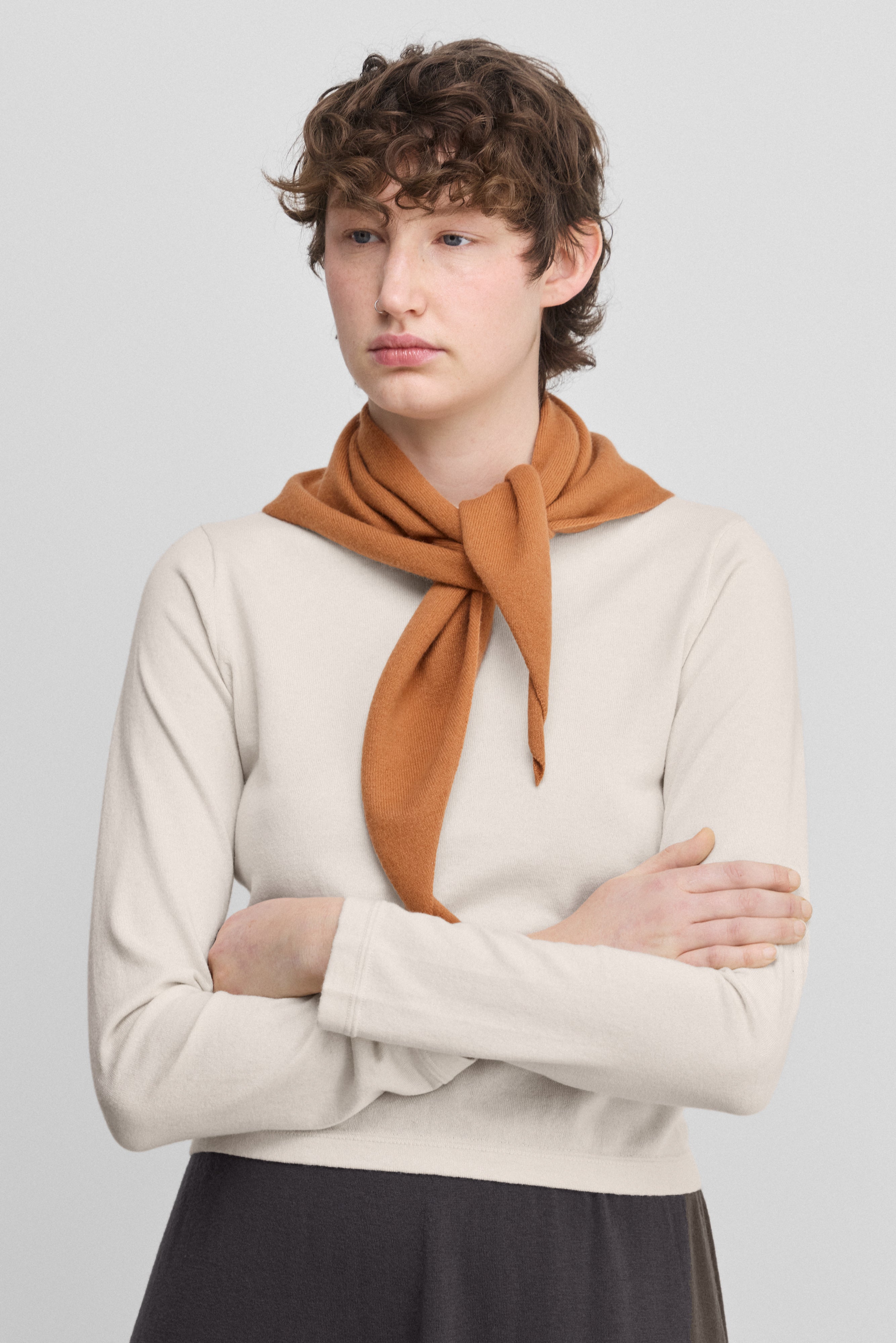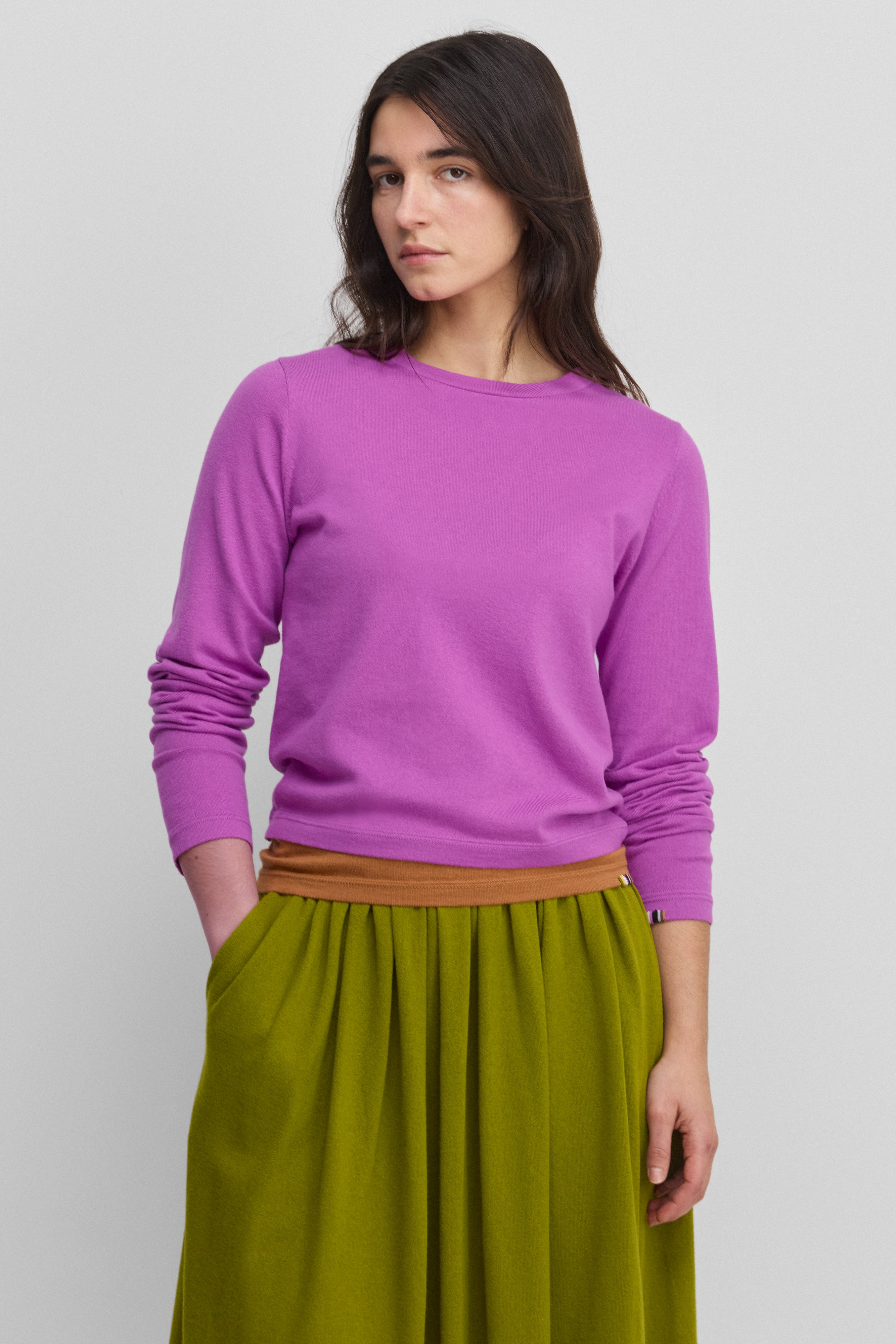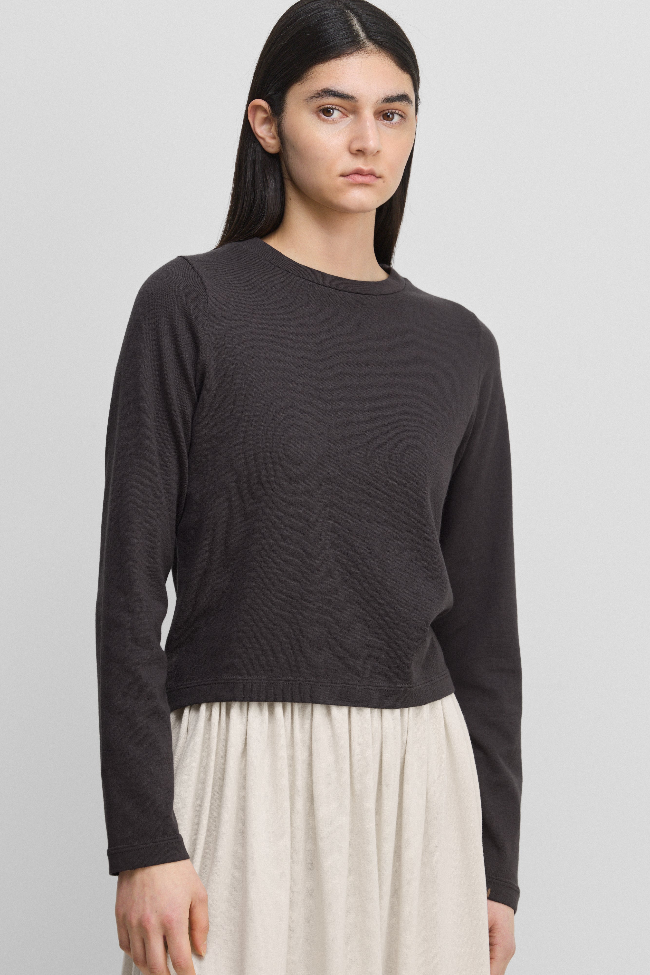 the lisa is an essential long-sleeved crew-neck t-shirt in our breathable cotton-cashmere blend, fusing the rich softness of cashmere with the airy crispness of cotton. a close relative of the tina t-shirt style, the lisa top features long sleeves and a boxy, square fit.