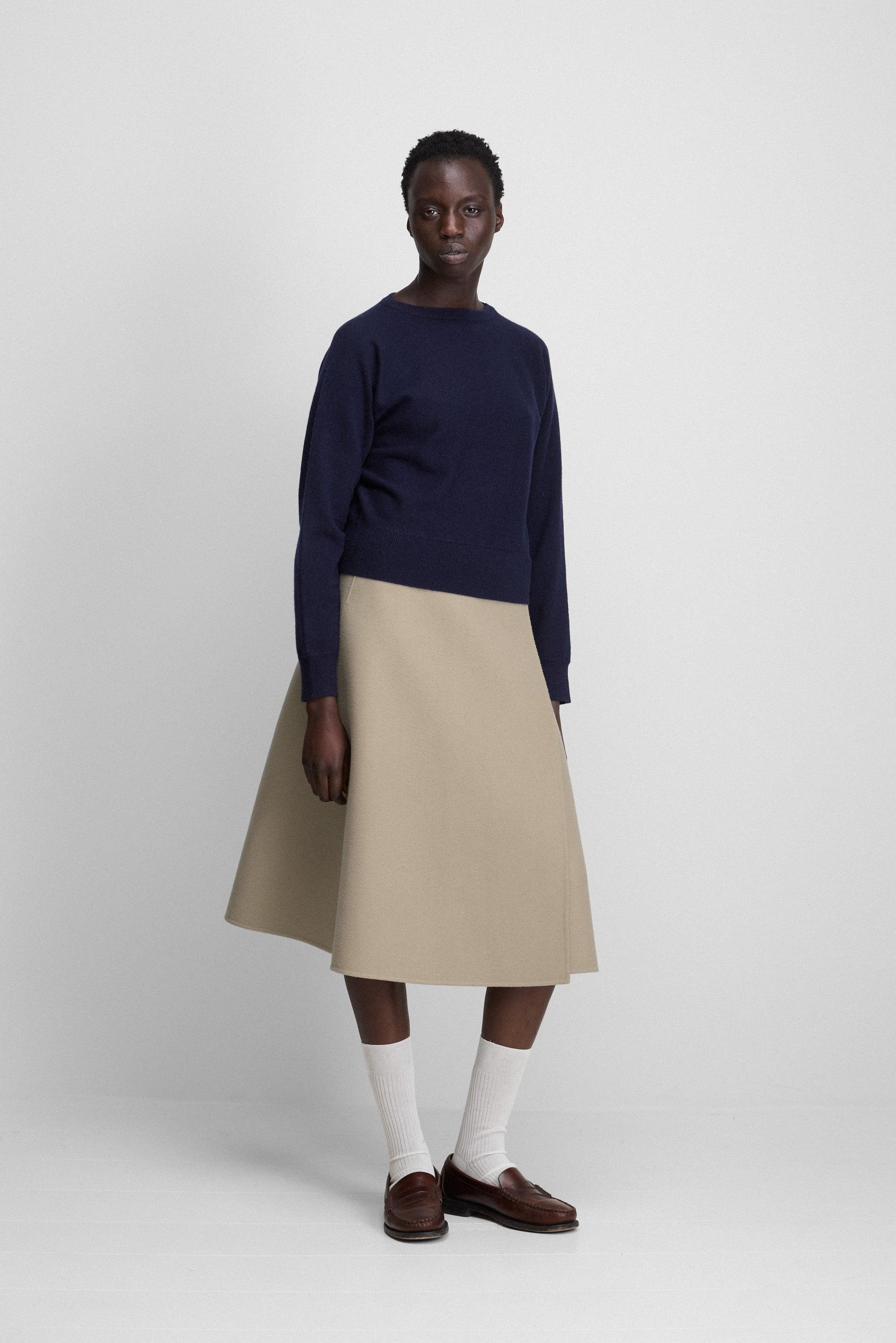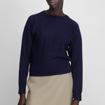 cropped cashmere sweater belle has a subtle bat sleeve. this small sweater is the same fit as our elleni top, but crafted in our regular luxurious cashmere knit.