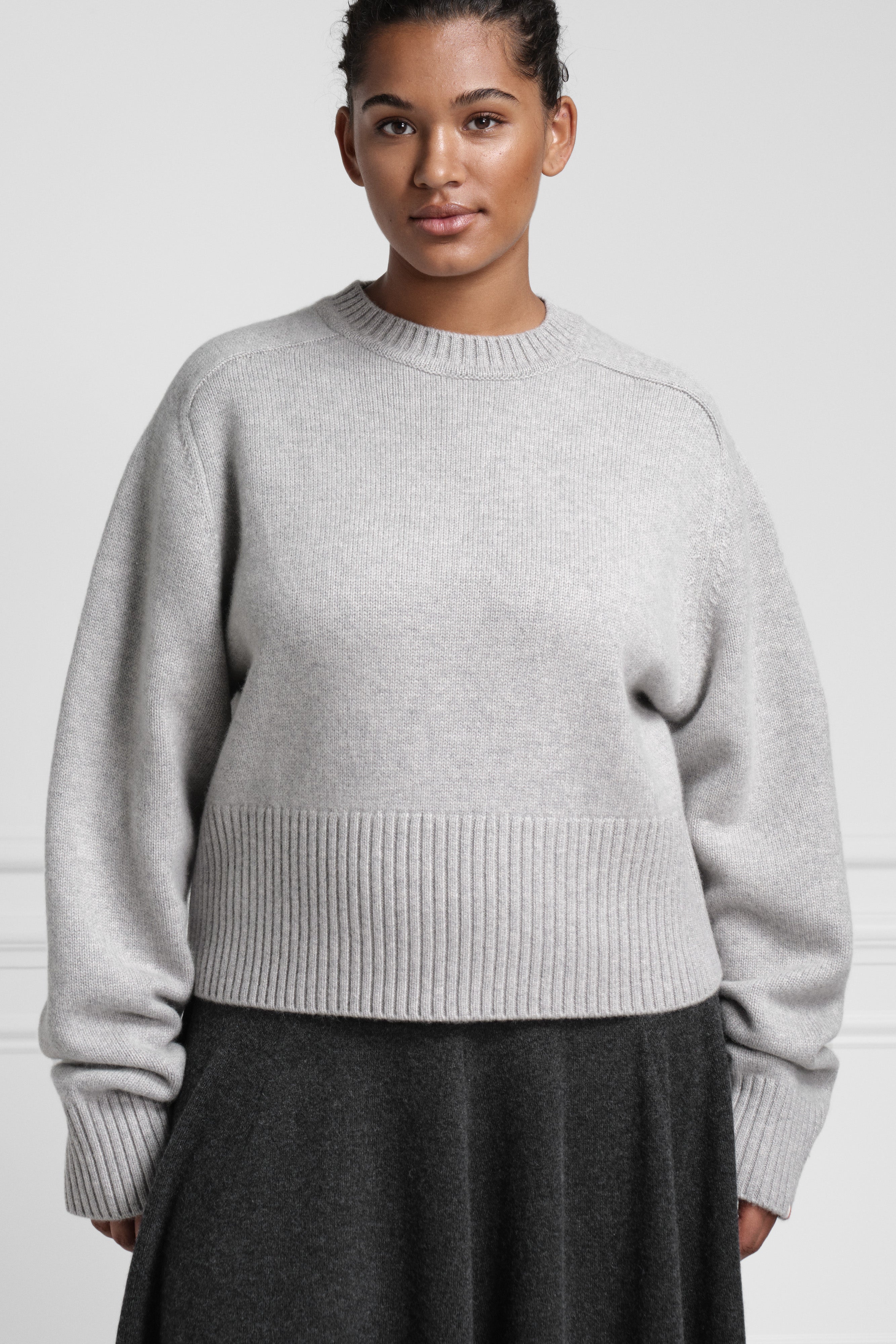 the judith, named after one of our longest serving team members, is a comfortable heavy-knit cropped sweater with saddle sleeves. in comparison to the please, the judith has longer sleeves and a wider, more boxy fit.