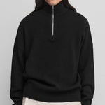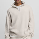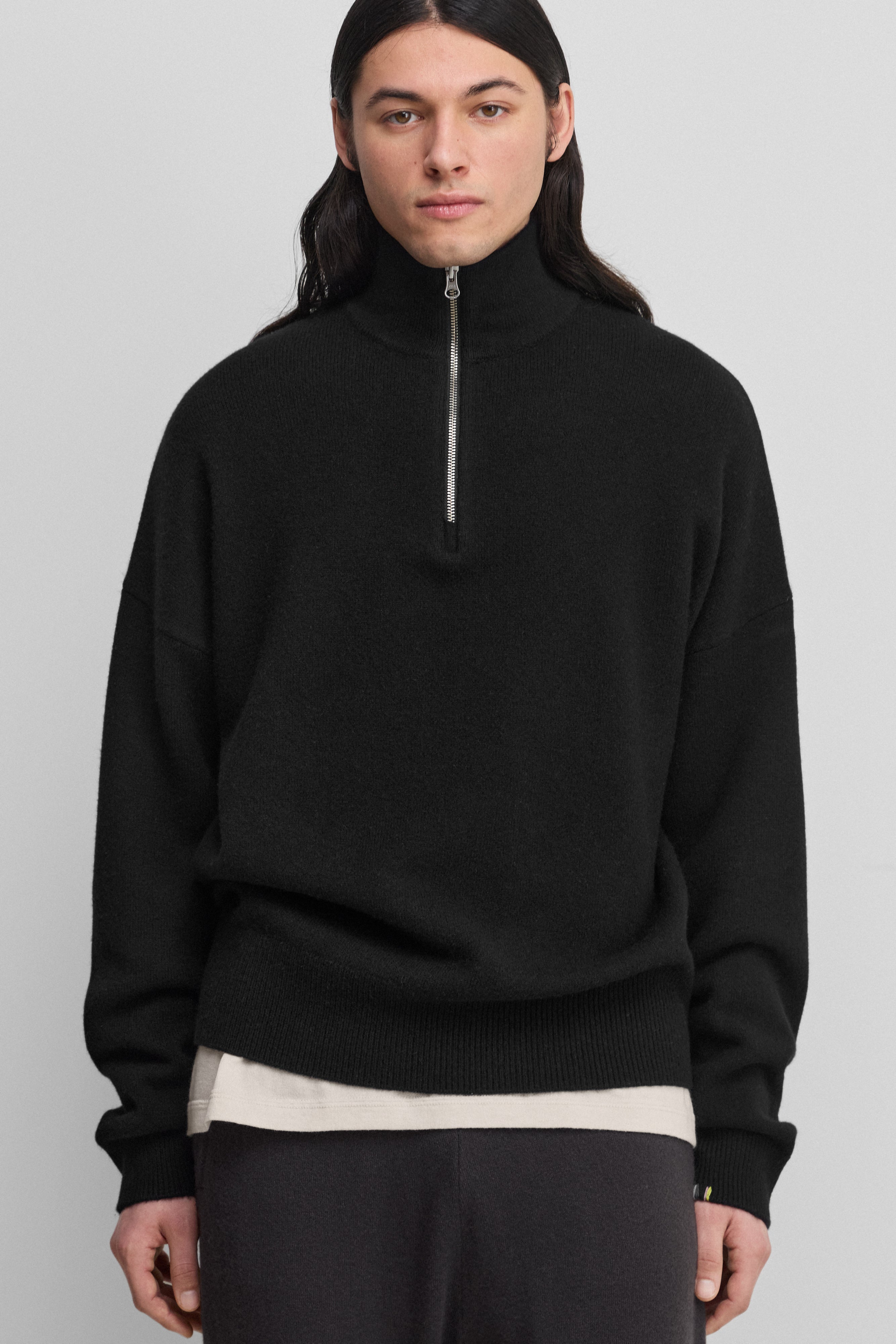 the hike is a half-zip cashmere sweater inspired by traditional menswear. featuring a high collar with a metallic zipper and ribbed finishings. the drop shoulder design adds a modern edge to this classic sweater in warm cashmere. the relaxed fit provides luxurious comfort for any occasion: layer it over a smart shirt or over a t-shirt for a casual look.