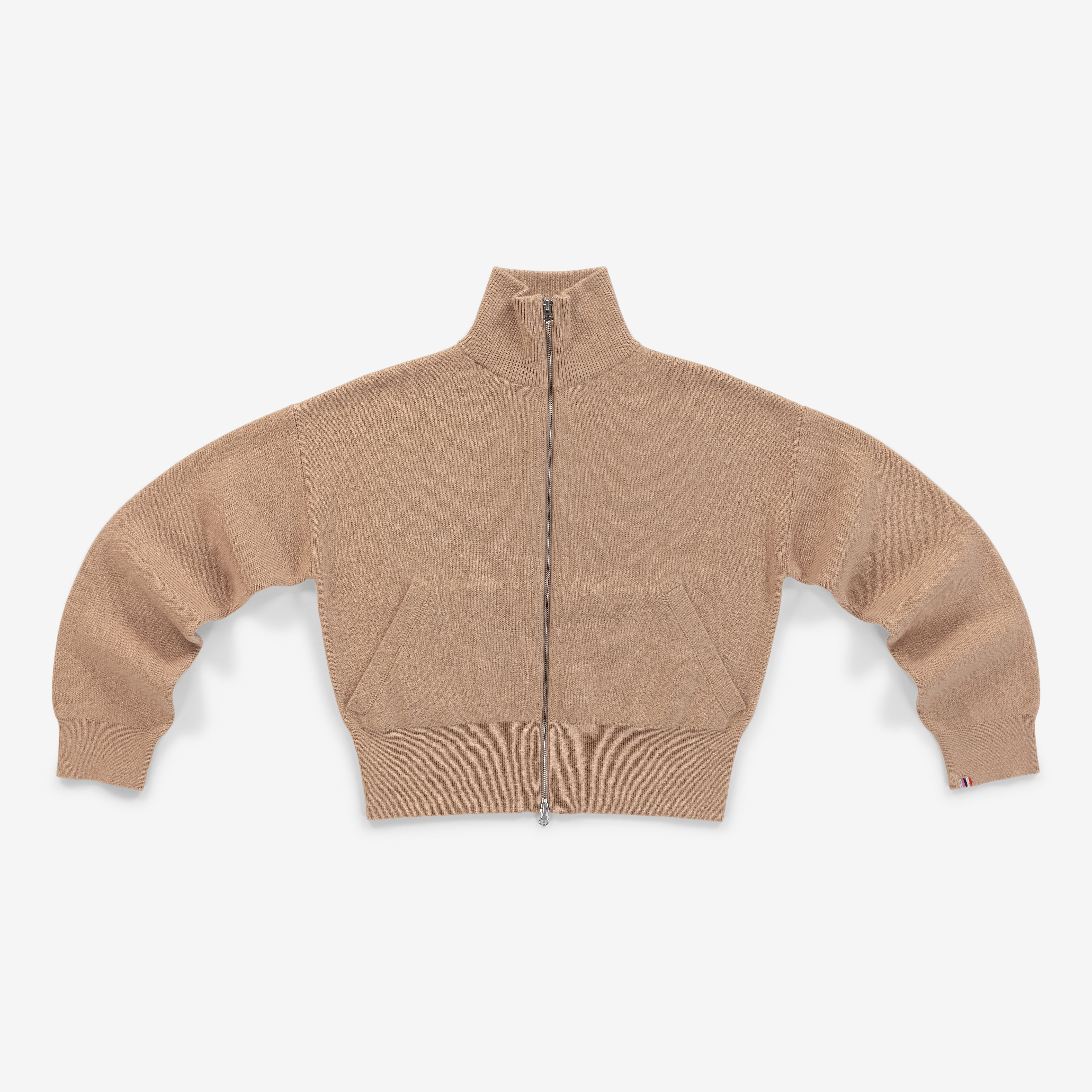 crafted in a luxurious jacquard knit, this cashmere zip cardigan offers a unique texture reminiscent of a scuba diving suit. designed with a cropped bomber fit, the xtra cute features a two-way full-length zipper and two practical side pockets. perfect for layering, it also works as a lightweight jacket for transitional seasons. also available as the crewneck cardigan xtra fun.