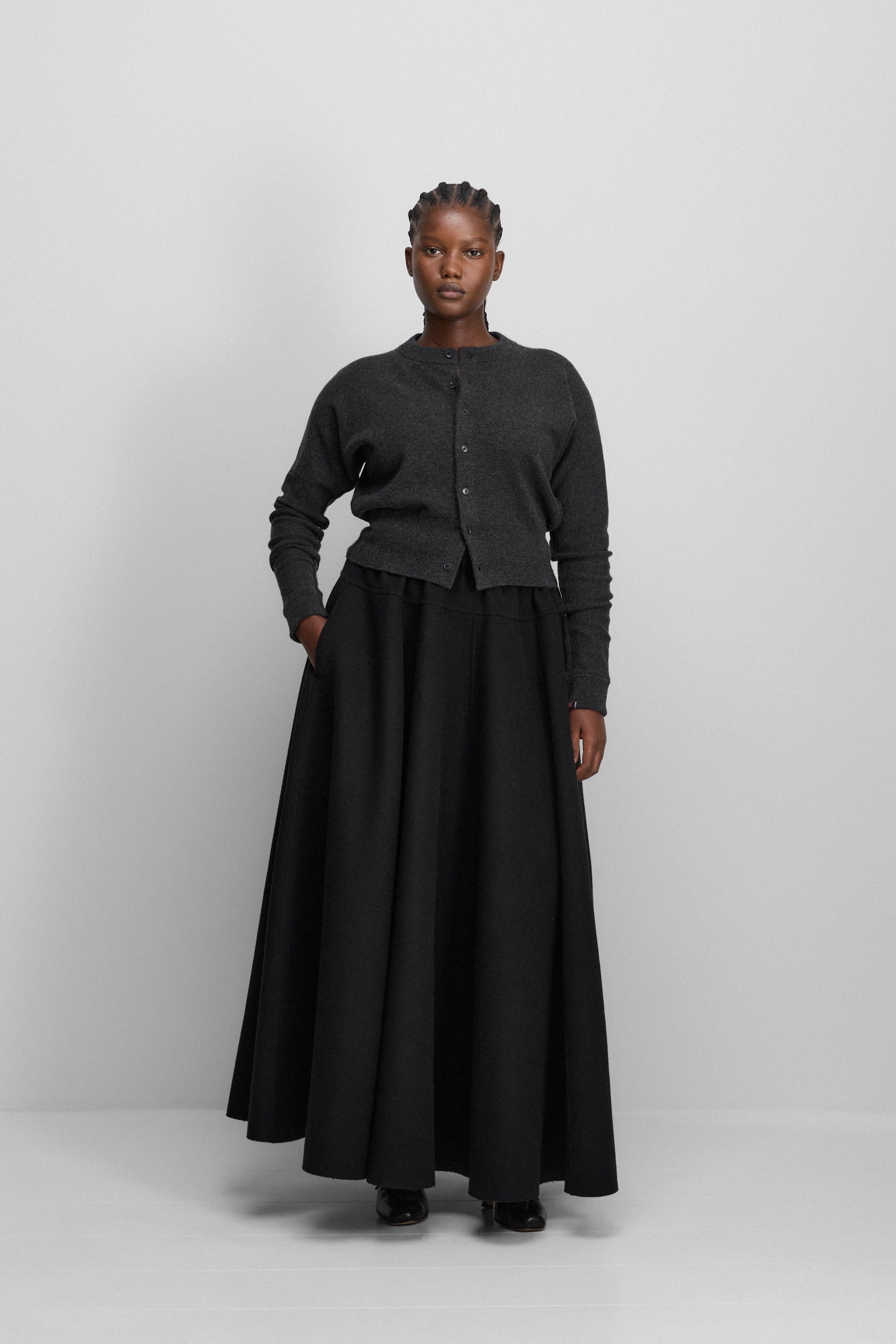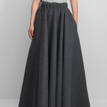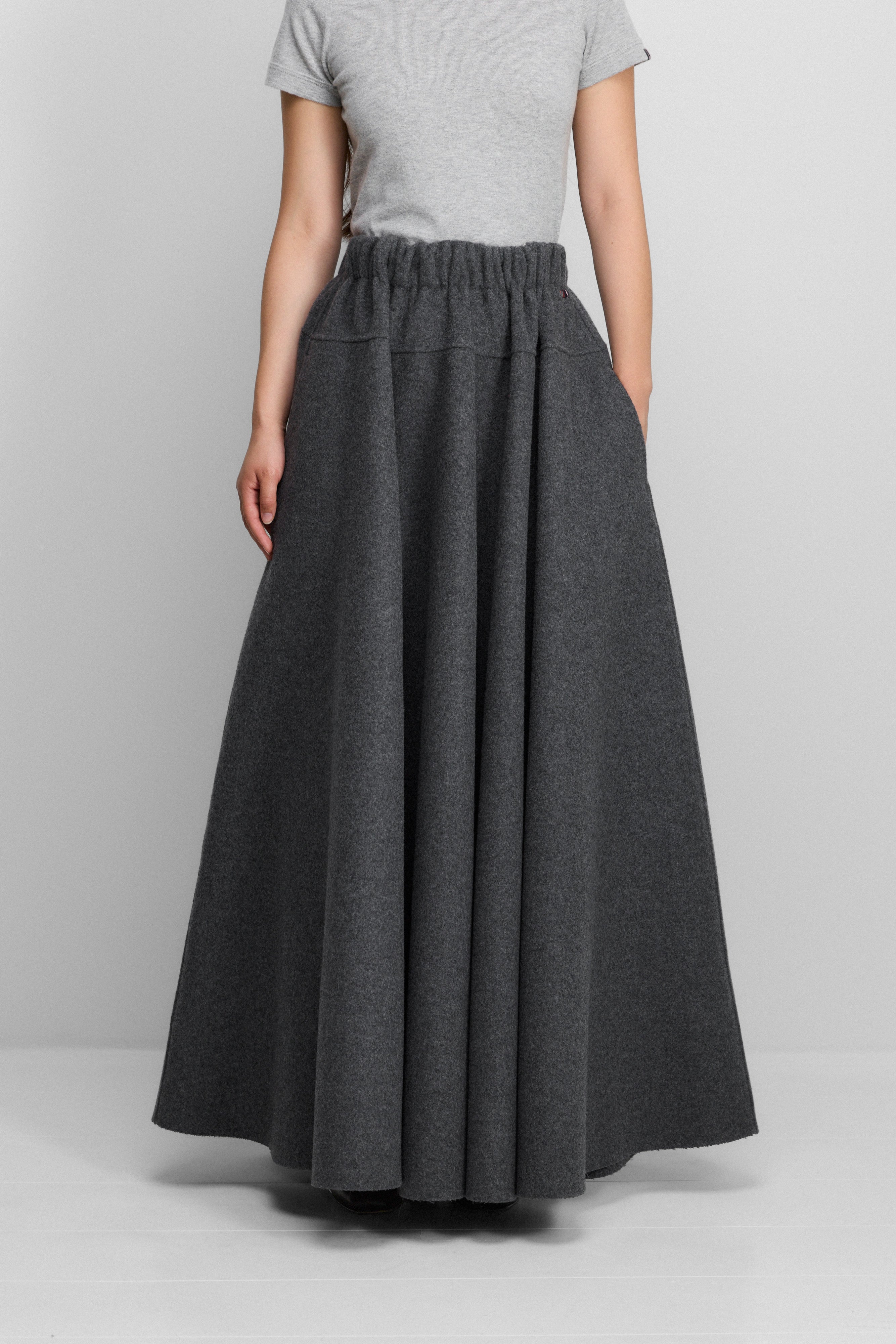 the venus is a generous maxi skirt crafted from luxurious double-faced cashmere, complete with discreet side pockets. Its voluminous silhouette combines drama with sophistication; it is a statement piece with bold impact. an elastic waistband ensures maximum comfort, whilst the raw cut hem adds a contemporary twist to a classic design. crafted with great attention to detail, this cashmere skirt is largely handmade.