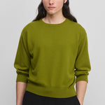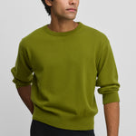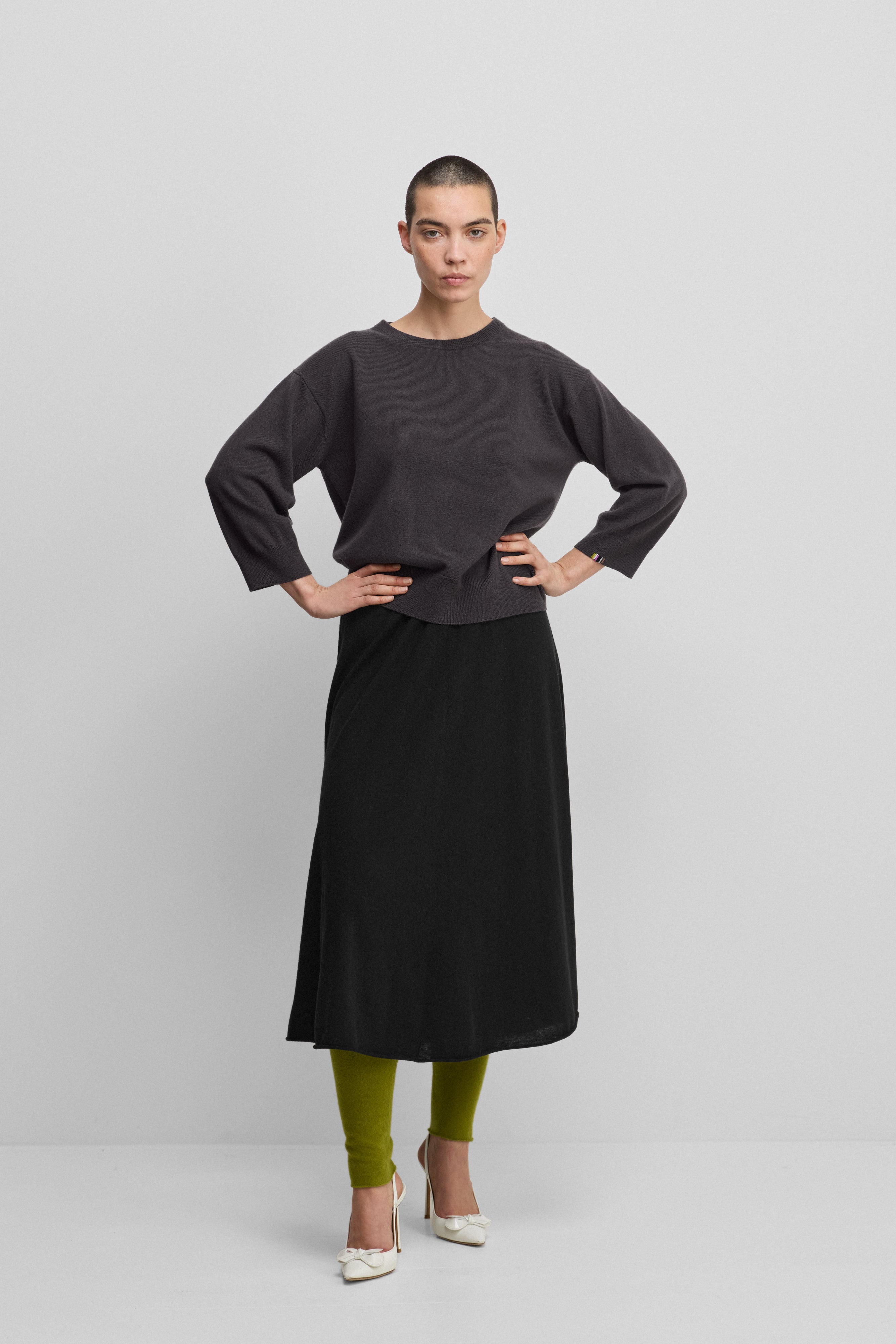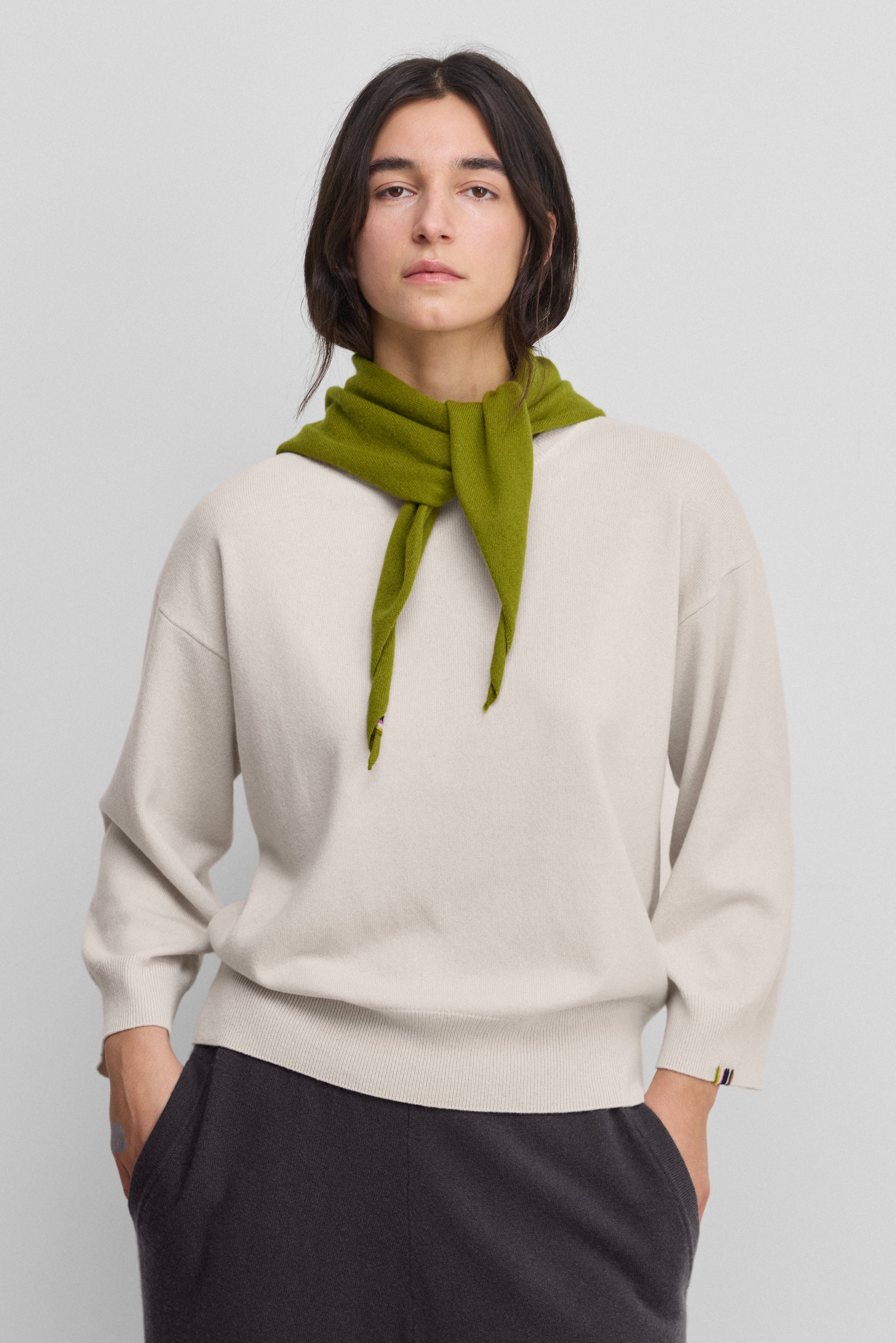 the jewel is a cashmere crewneck sweater with cropped sleeves and ribbed hem, cuffs, and neckline. its 7/8 sleeves ending on the forearm offer a twist to a classic-fit cashmere sweater. the jewel comes in our lightweight summer cashmere, crafted from 100% loosely-knit cashmere. airy and laidback, it’s designed for easy movement and perfect for warmer weather.