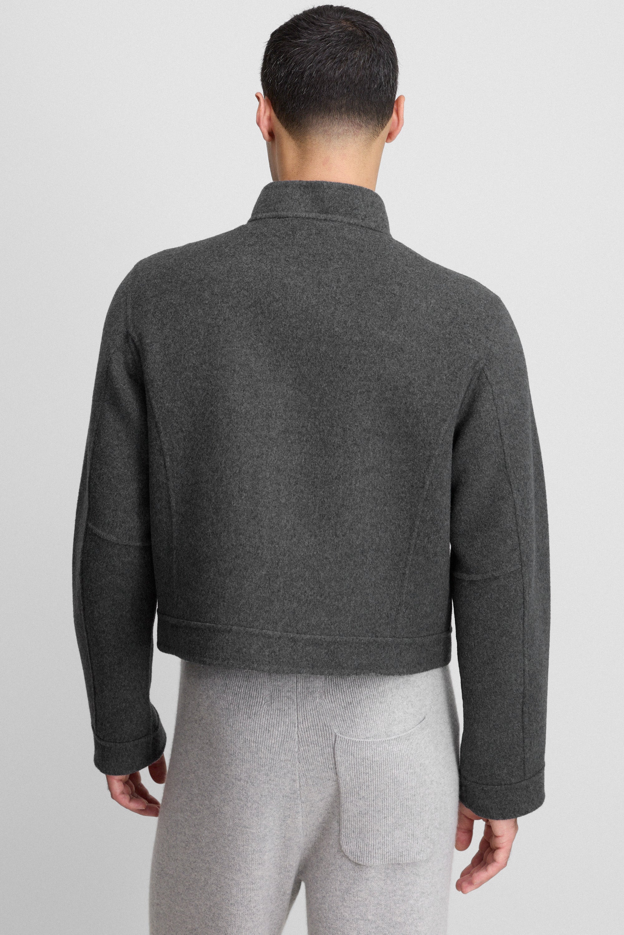 inspiriert von den linien und der struktur klassischer motorradjacken, ist motor eine luxuriöse kurze kaschmirjacke aus festem, warmem kaschmir. mit gecroppter passform, reißverschluss und stehendem kragen. zwei dezente eingrifftaschen vorn runden den sportlich look ab. dieser kurzmantel aus wolle und kaschmir wurde mit viel liebe zum detail und größtenteils in handarbeit gefertigt. auch erhältlich in der kürzeren version mit gekürztem körper und ärmeln.