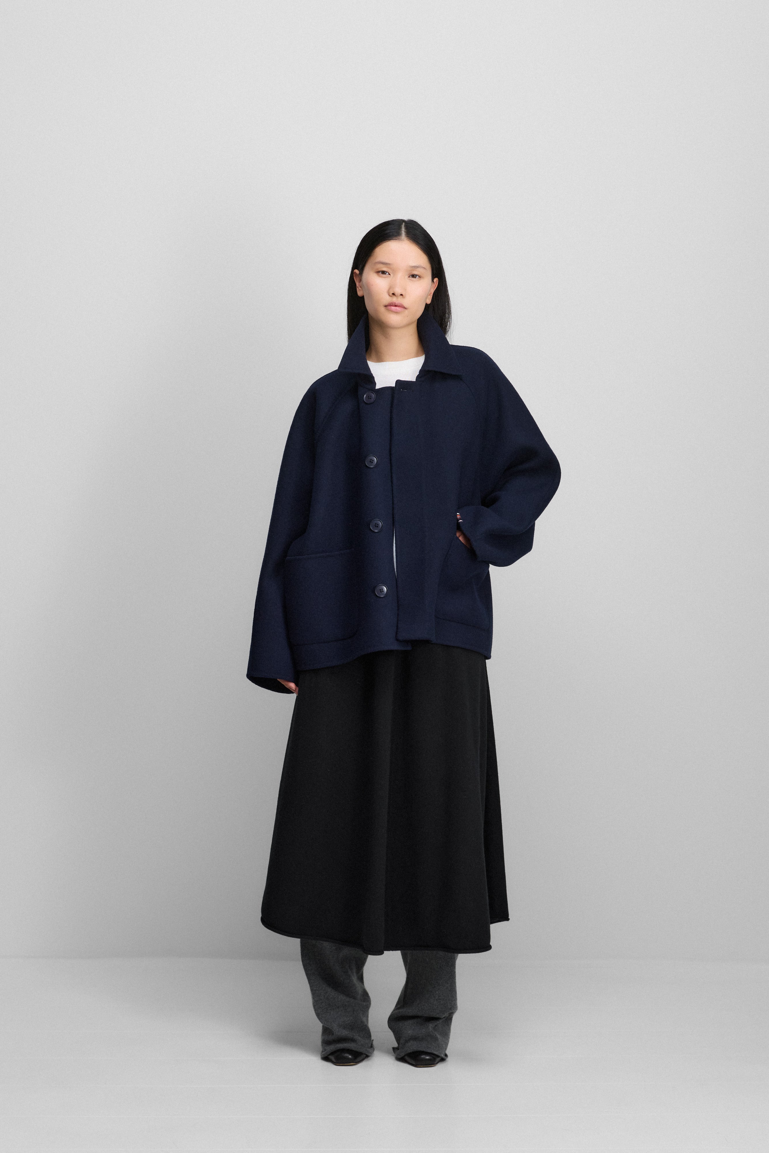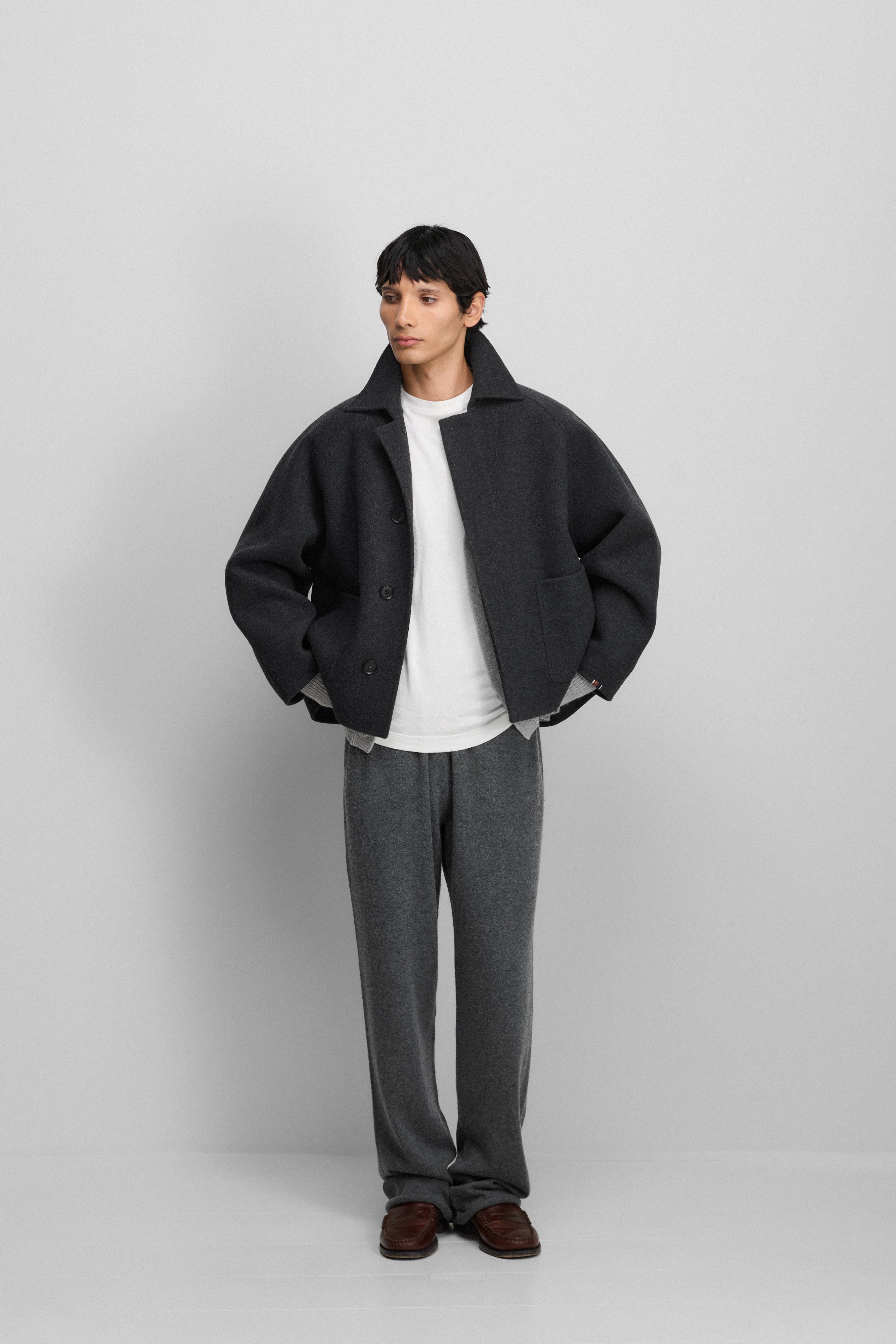 diese locker geschnittene, kurze kaschmirjacke mit verkürzten ärmeln ist aus weichem, double-face woll-kaschmir gefertigt. sie verbindet struktur mit komfort und reicht bis zur hüfte. der walker zeichnet sich durch oversized raglanärmel, dezente aufgesetzte taschen und einen verdeckten knopfverschluss aus, bei dem nur der oberste knopf sichtbar bleibt – details die die eleganz des kurzmantels unterstreichen. ein essentielles piece für mühelose lagenlooks das ganze jahr über. mit viel liebe zum detail gefertigt, ist dieser kaschmir-kurzmantel zum großen teil handgearbeitet.