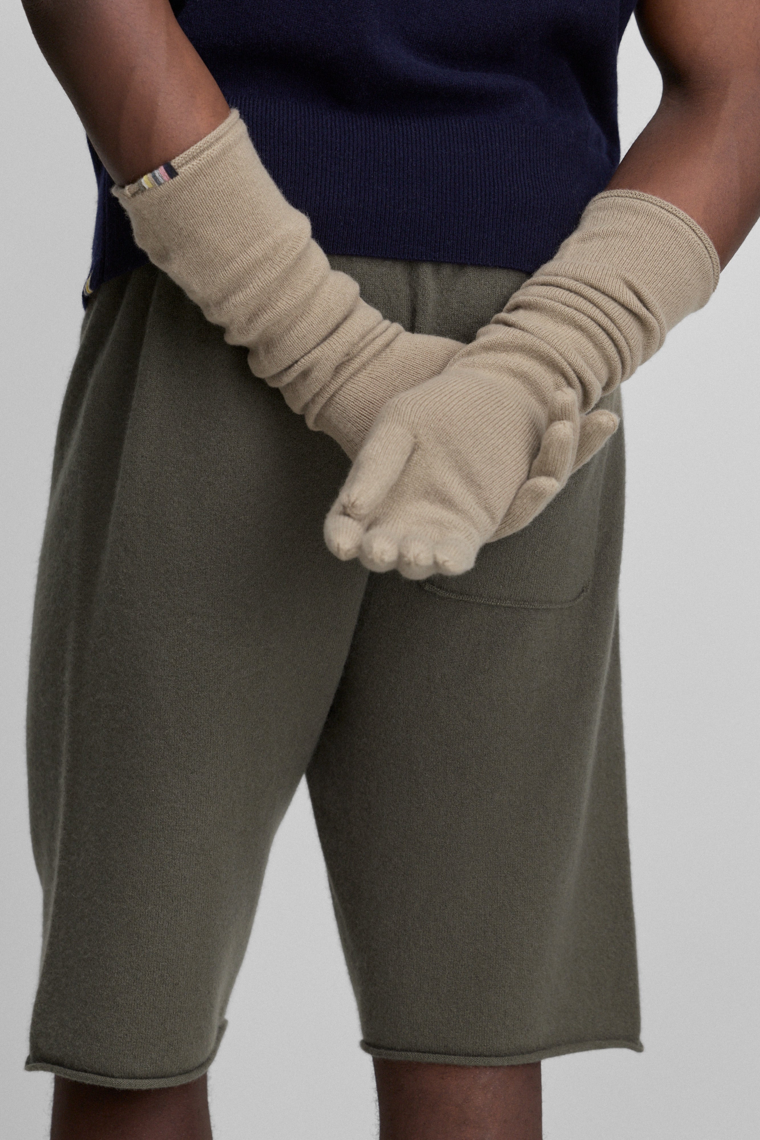 Extra lange kaschmir-handschuhe mit fünf fingern, die sie in den kalten monaten warm halten. schmal geschnitten und mit rollendem saum am Bündchen. dieses edle accessoire wertet jedes outfit auf.