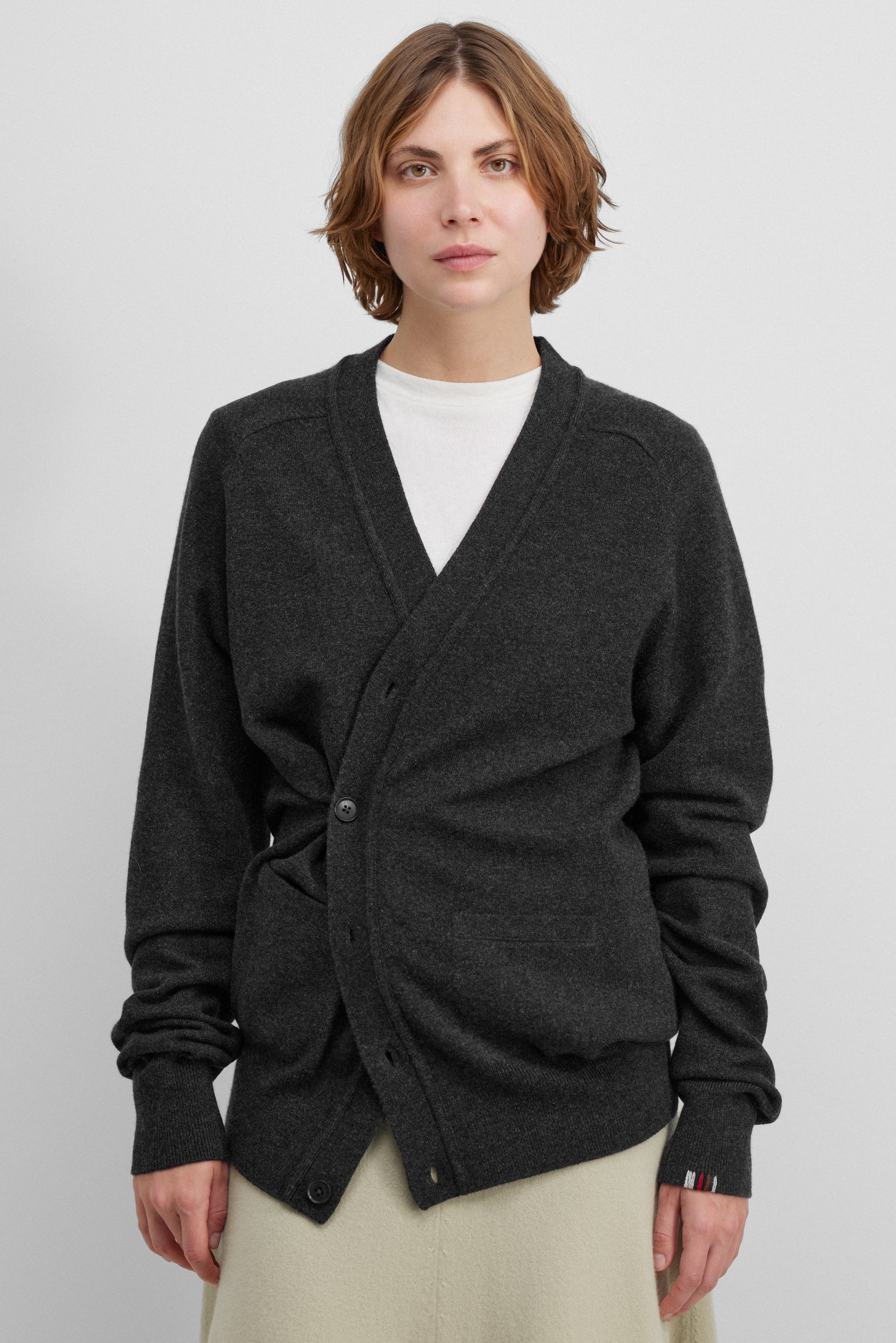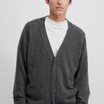 gemütliche kaschmir-strickjacke mit v-ausschnitt, sechs knöpfen und zwei aufgesetzten taschen. Rippstrick an Bündchen und Saum. Innen Strickkordel zum enger Schließen. zusätzlicher Knopf auf der linken Seite, mit dem sie den cardigan drapieren können. die knöpfe sind aus langlebigem corozo – ein vollkommen natürliches, chemikalienfreies material, das aus dem samen einer palme gewonnen wird.