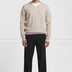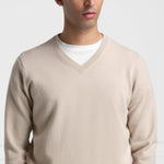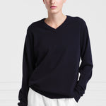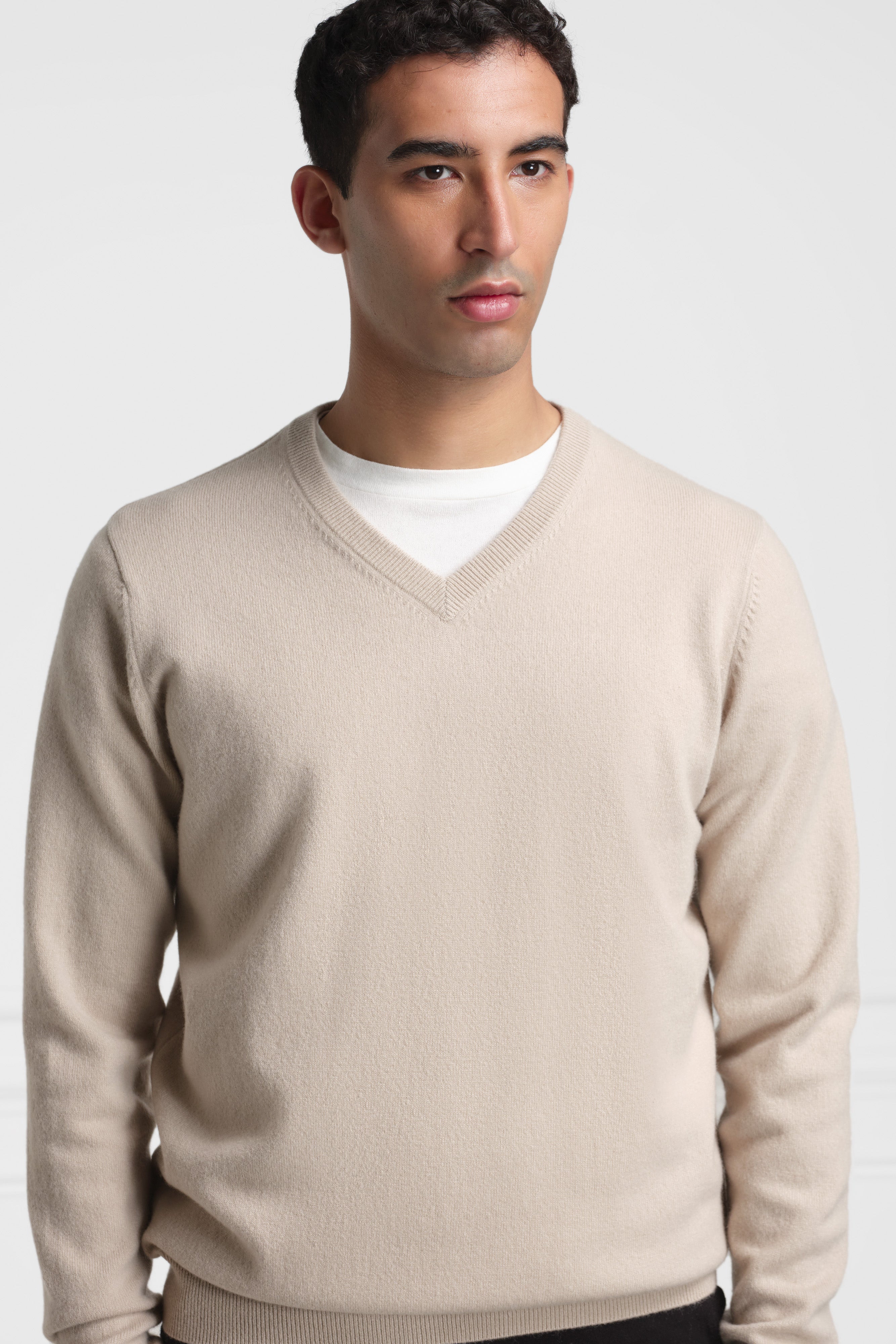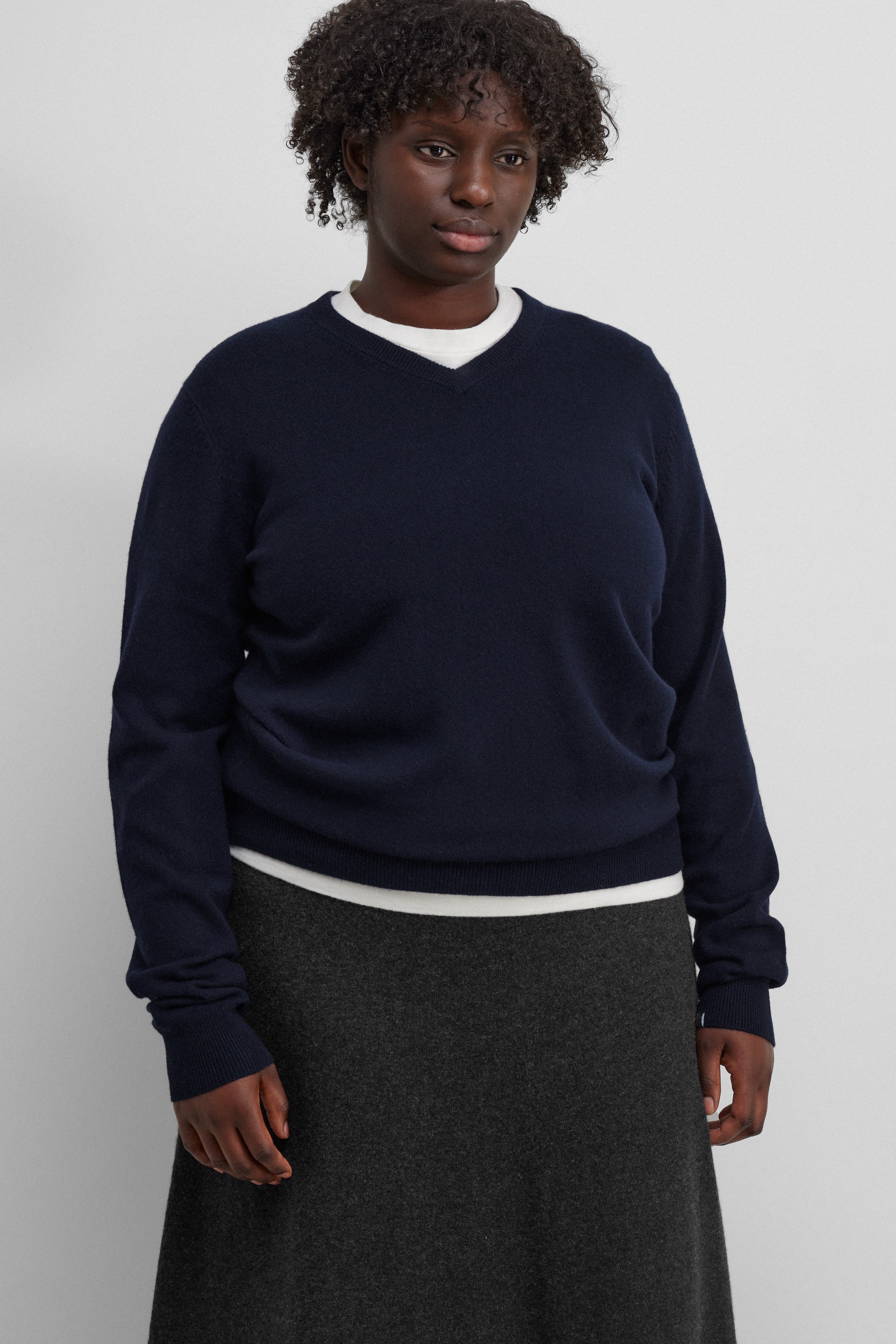 ein zeitloser mod-klassiker: der be real ist ein traditioneller kaschmirpullover mit v-ausschnitt. er hat eine komfortable passform und rippstrick an bündchen und saum.