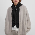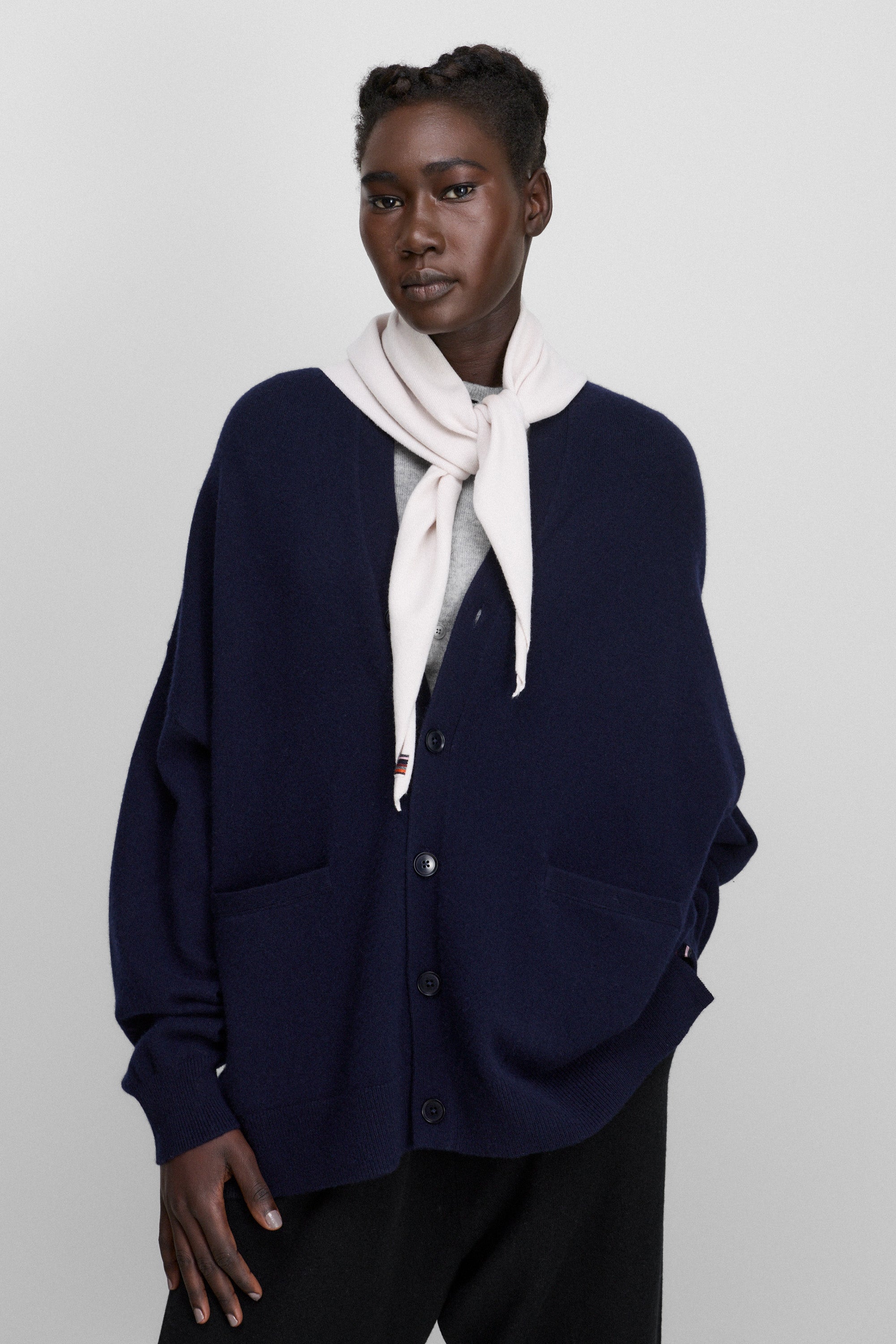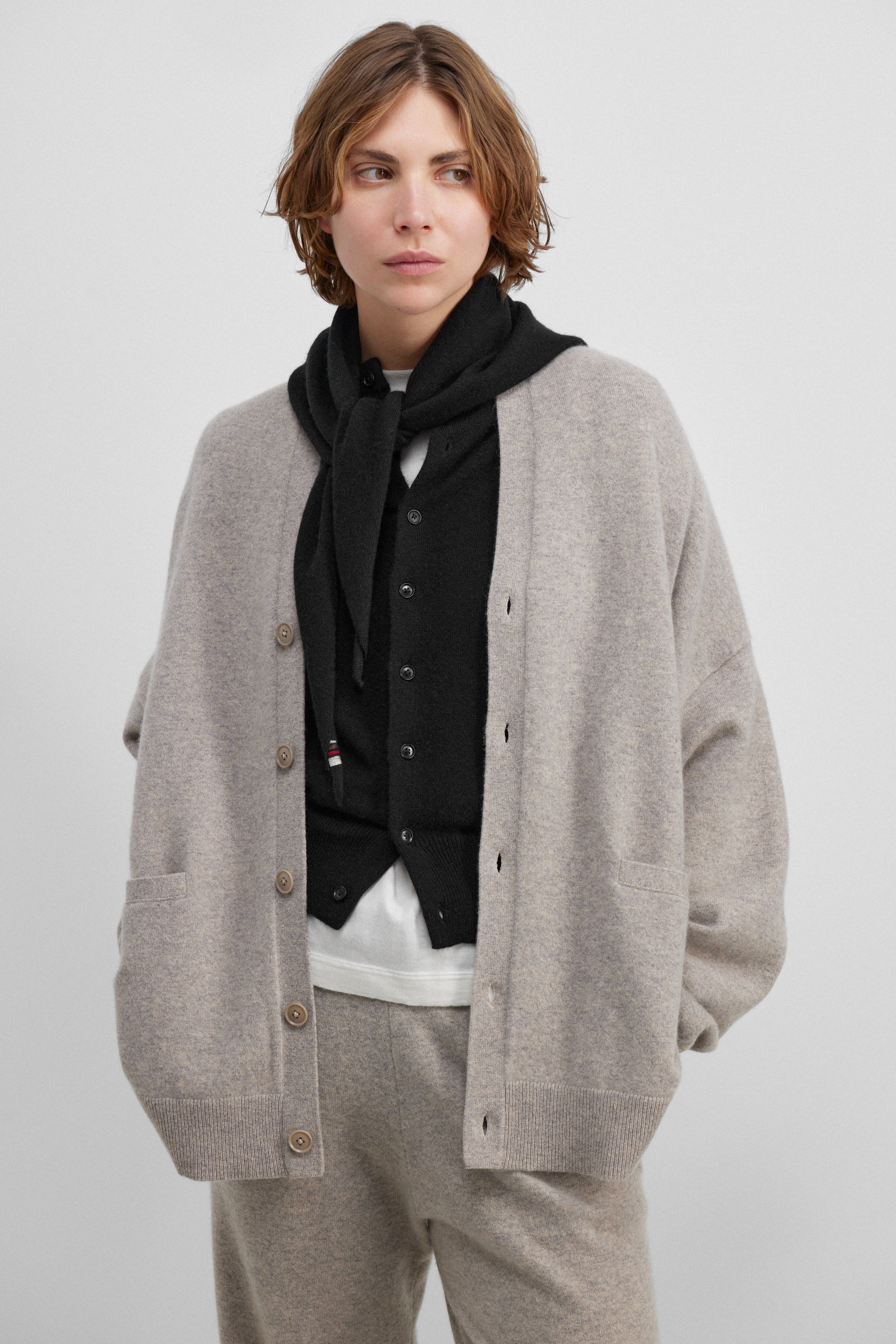 Gemütliche, locker sitzende kaschmirstrickjacke mit 5 Knöpfen vorne, 2 aufgesetzten Taschen auf der Taille und einer auf der Brust. der tokio hat einen zusätzlichen Knopf auf der linken Seite, der es ihnen erlaubt mit dem look des cardigans zu spielen. die knöpfe sind aus langlebigem corozo – ein vollkommen natürliches, chemikalienfreies material, das aus dem samen einer palme gewonnen wird.