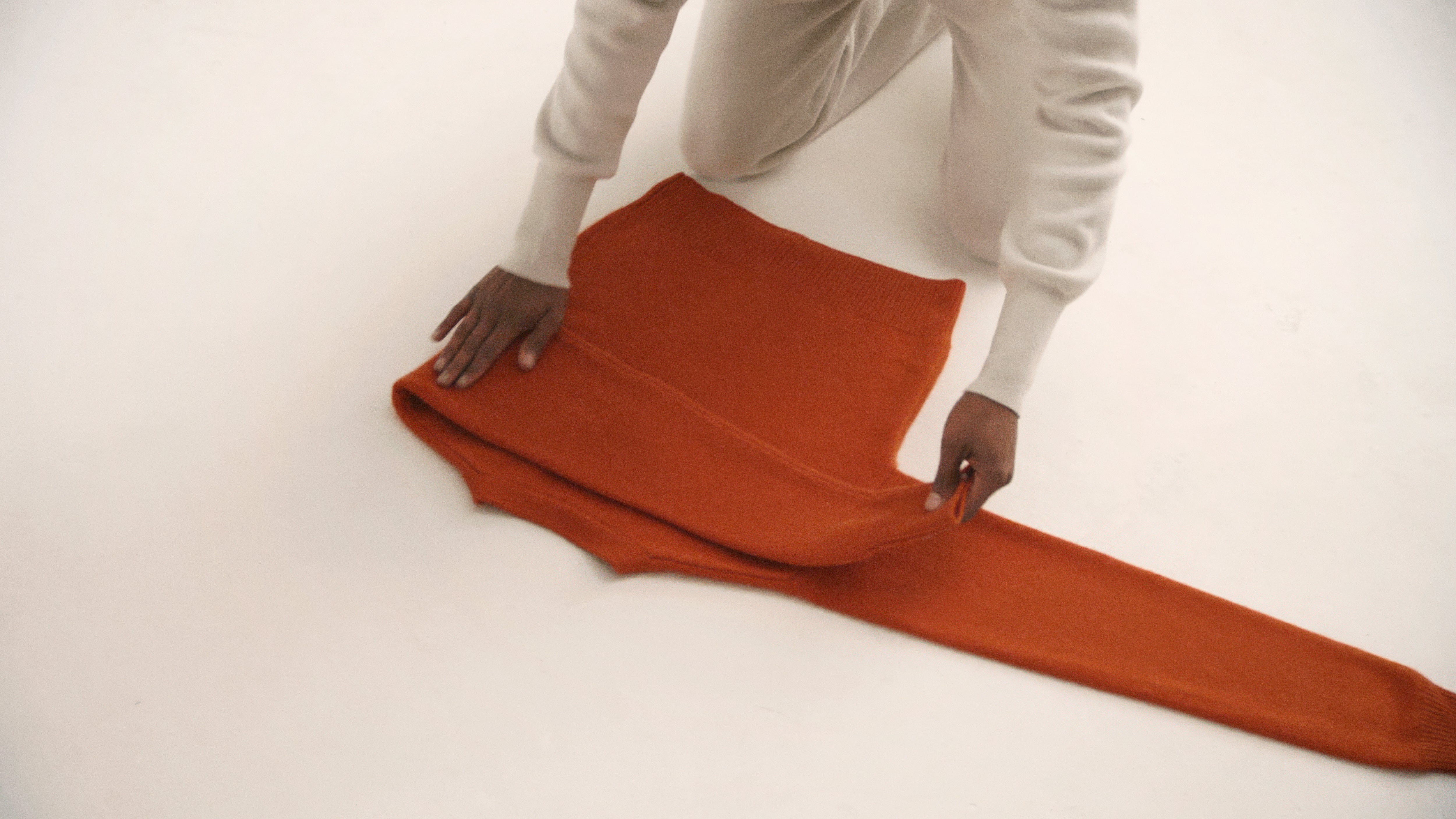 after saskia completed her first jumper, the crew hop, the sweater surprisingly fit almost every person who tried it on. this was the beginning of the extreme cashmere concept to produce everything in a single size for everybody and every body.