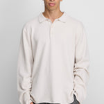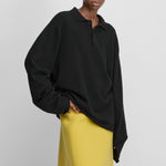 in cosy cashmere, the alligator is a modern take on a polo sweater. featuring extra-long sleeves, this piece takes cues from classic sportswear – refreshed by raw-cut cuffs and hem for a clean, contemporary finish. three corozo buttons round off the look.