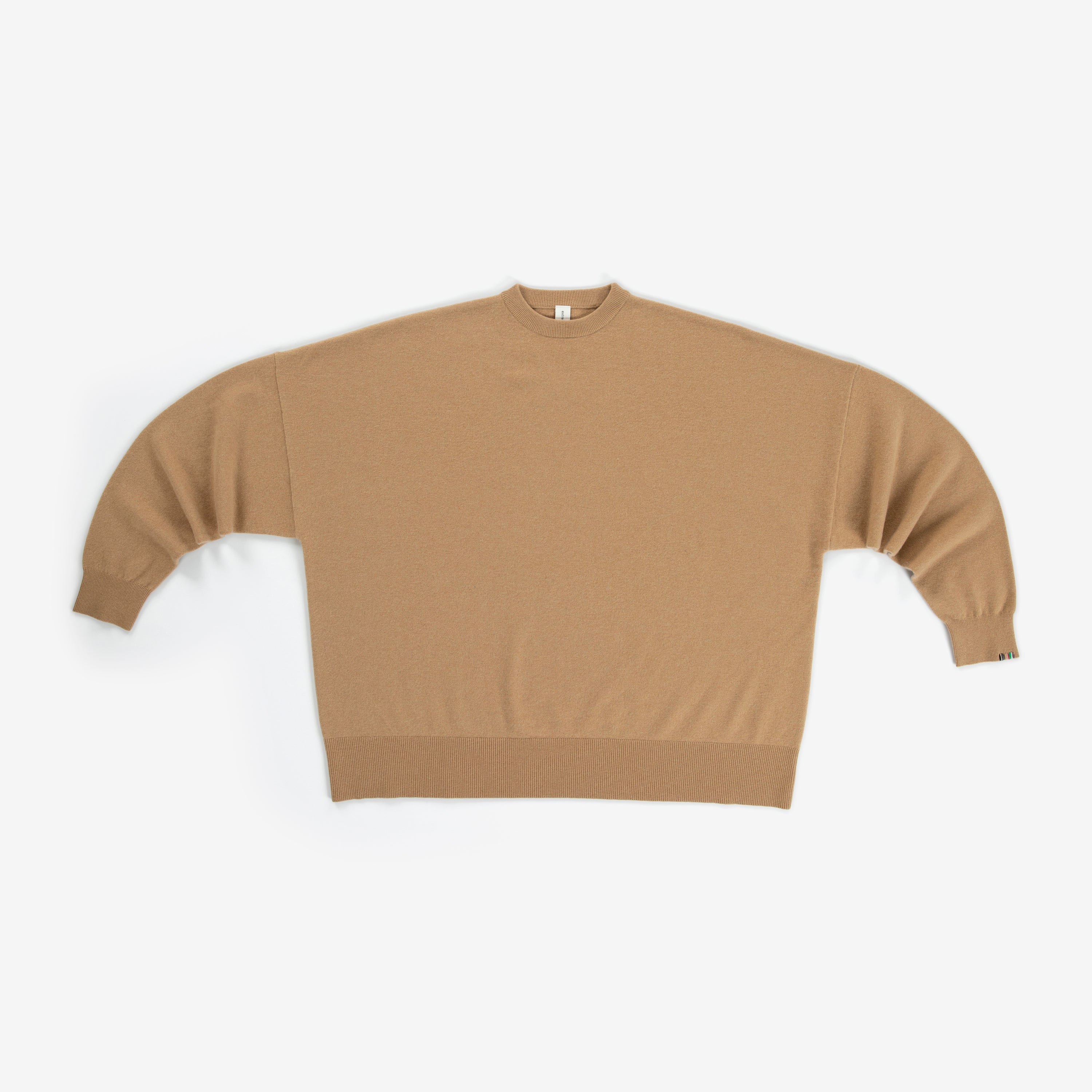 our favourite cashmere sweater juna truly looks different on every body. It’s an oversized crewneck cashmere sweater with extra long sleeves. this drop-shoulder jumper is rib-knitted at the neck, hem and cuffs.